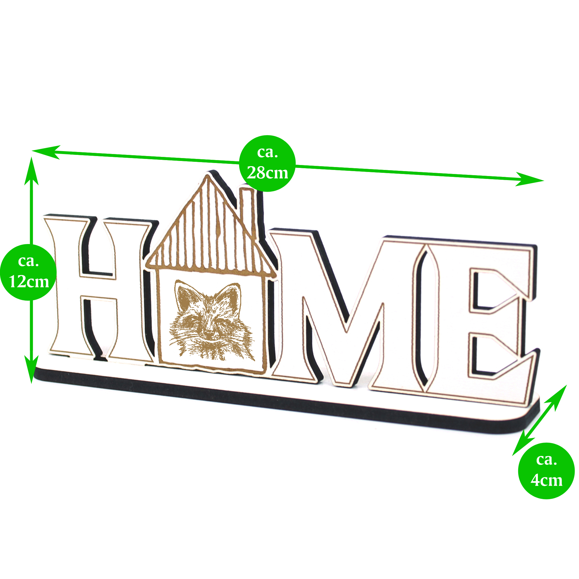 - HOLZAUFSTELLER: Die Wohndekoration ist stehend ca. 28 cm x 12 cm x 4 cm gross und wiegt ca. 70g. Der Holzschriftzug besteht aus HDF in weiß, einem sehr robusten und formstabilen Holz. Die Lasergravur wird mit hochpräzisen Industrielasern gefertigt. Die obere Schicht des Materials wird klein abgetragen und das untere Braun kommt zum Vorschein