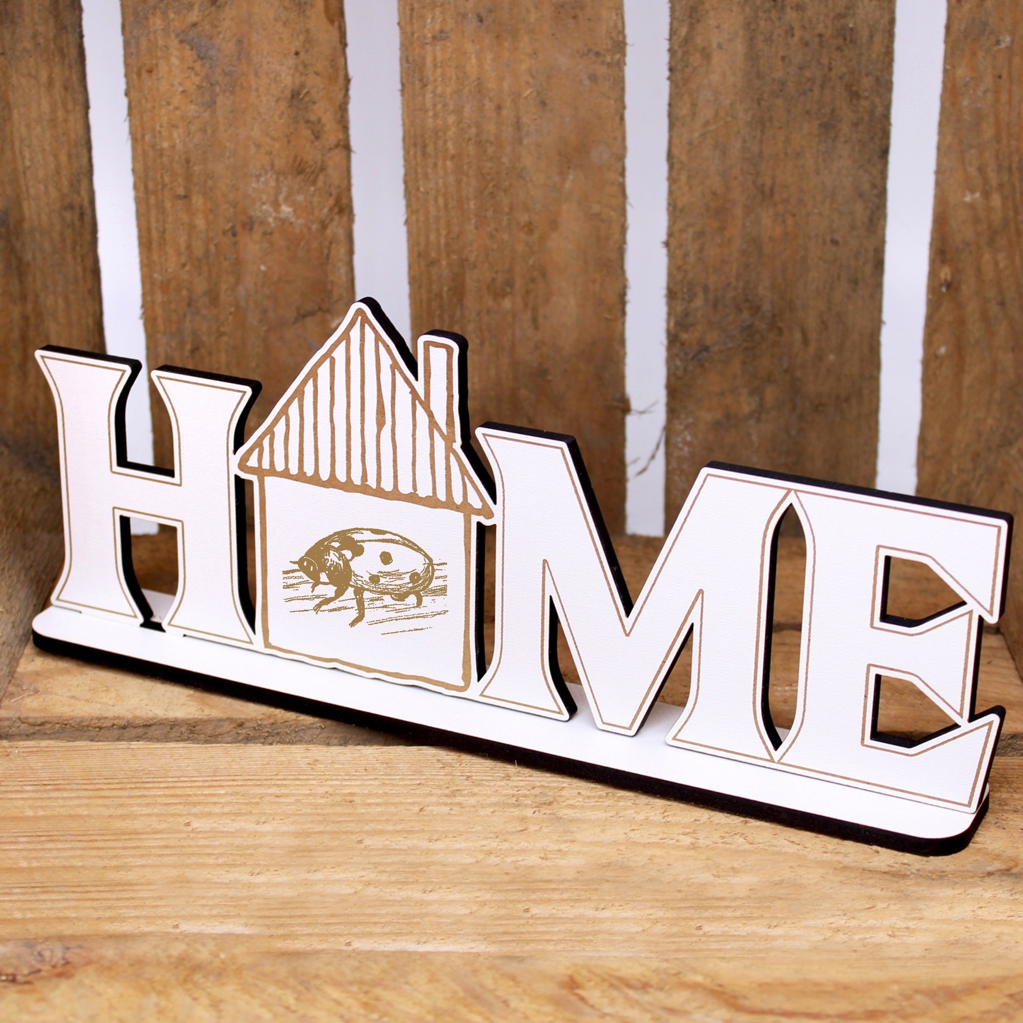 - STANDDEKO: Die Holzschrift können Sie aufs moderne Sideboard, der Wohnwand, dem Regal oder dem Fensterbrett als Fensterdeko aufstellen. Ein Artikel für die Einrichtung im gesamten Haus