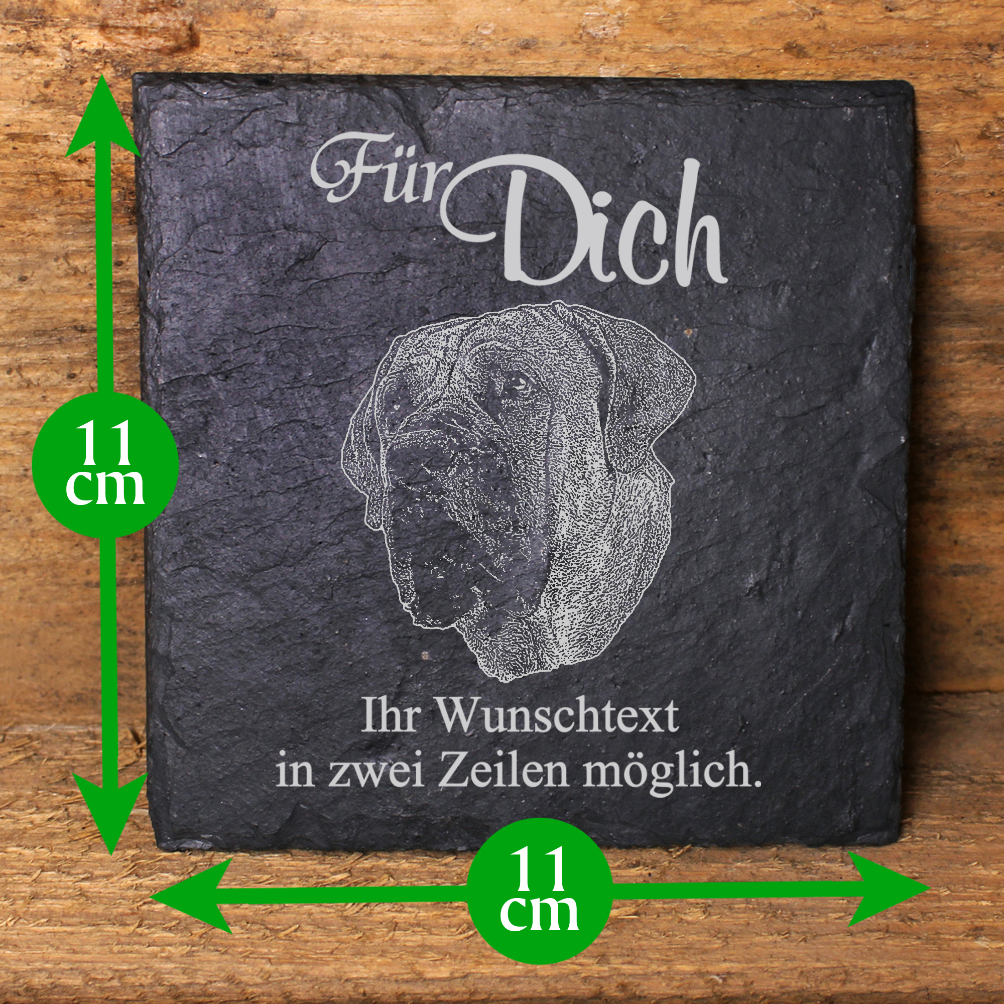 Produktinformationen "Deko Schiefer Untersetzer personalisiert Boerboel - Für Dich - 11x11cm"