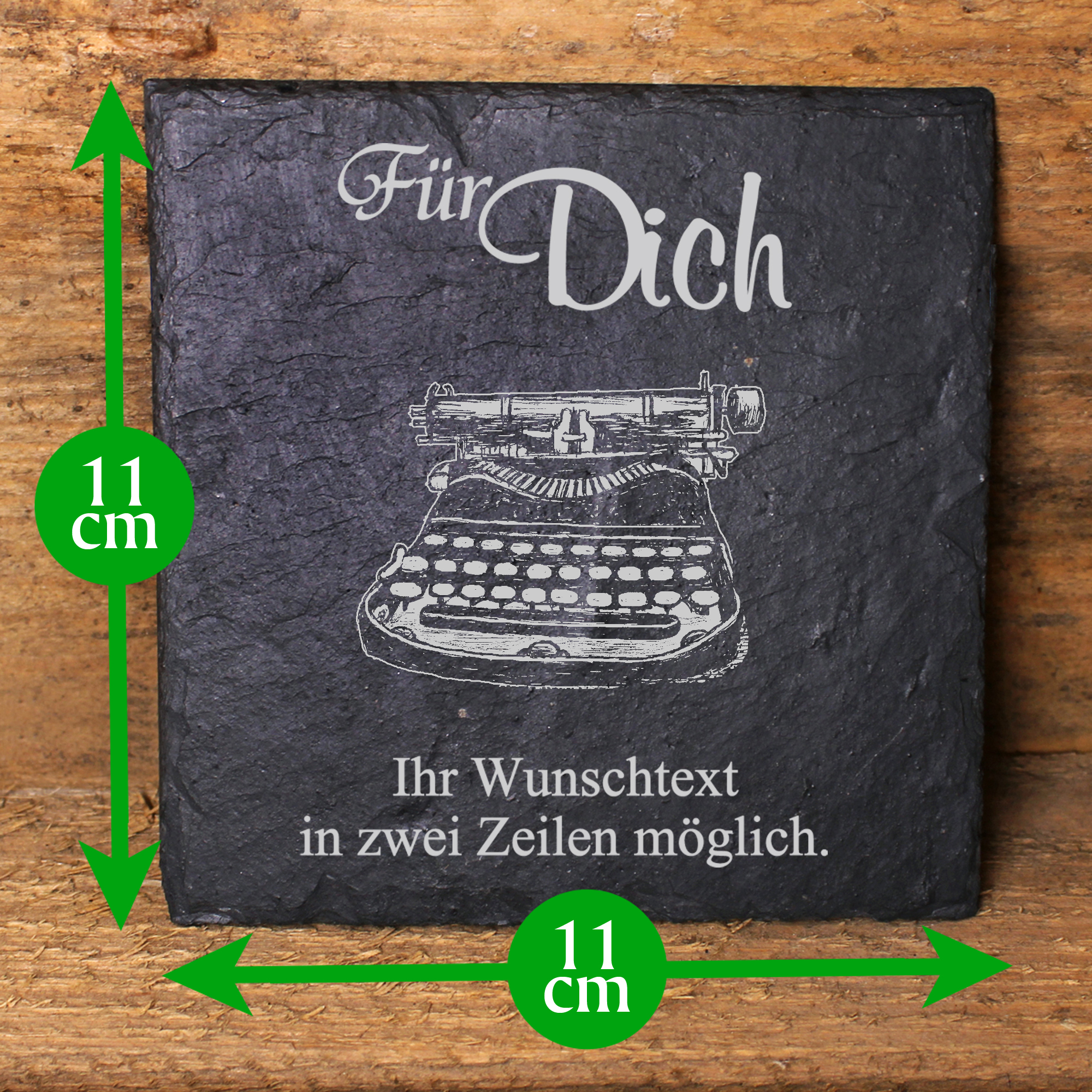Deko Schiefer Untersetzer personalisiert alte Schreibmaschine - Für Dich - 11x11cm