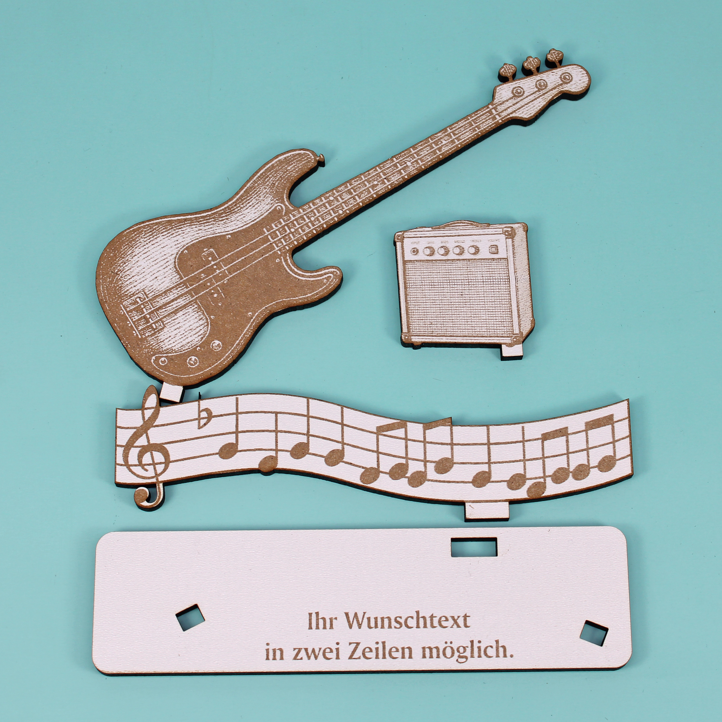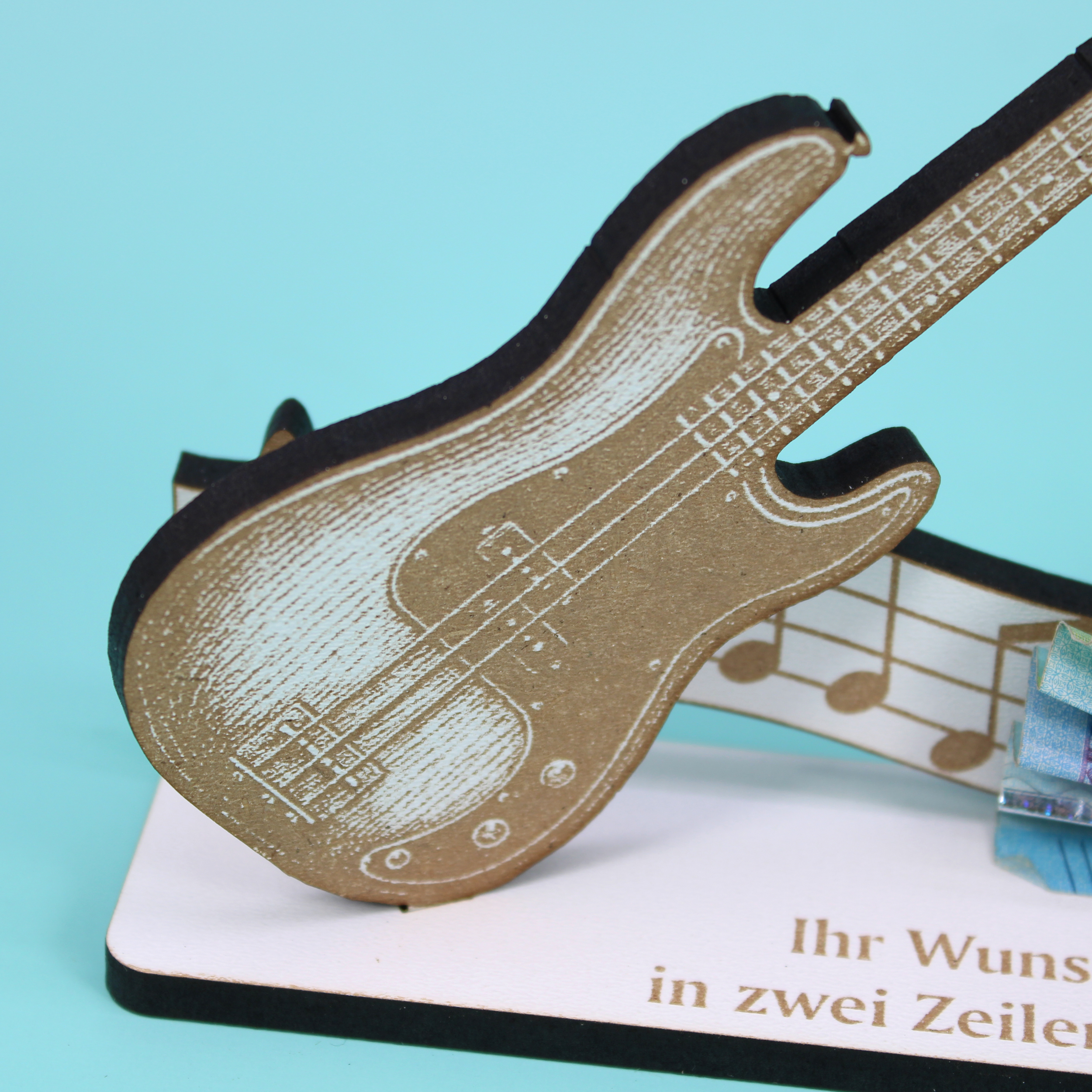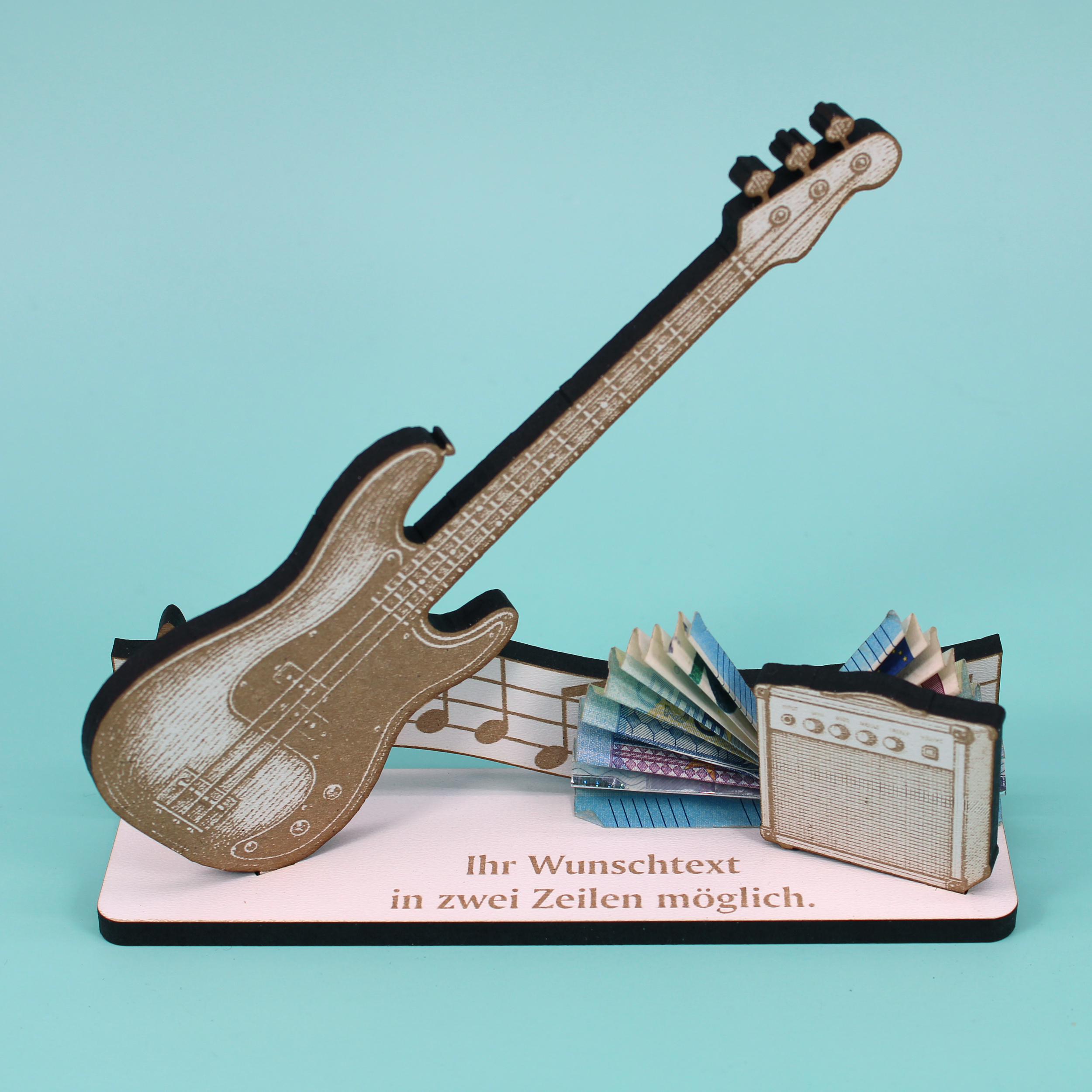 Dekoaufsteller Bassgitarre – Geschenk für Musiker mit Wunschtext - Bassist & Bassistin – Geldgeschenk