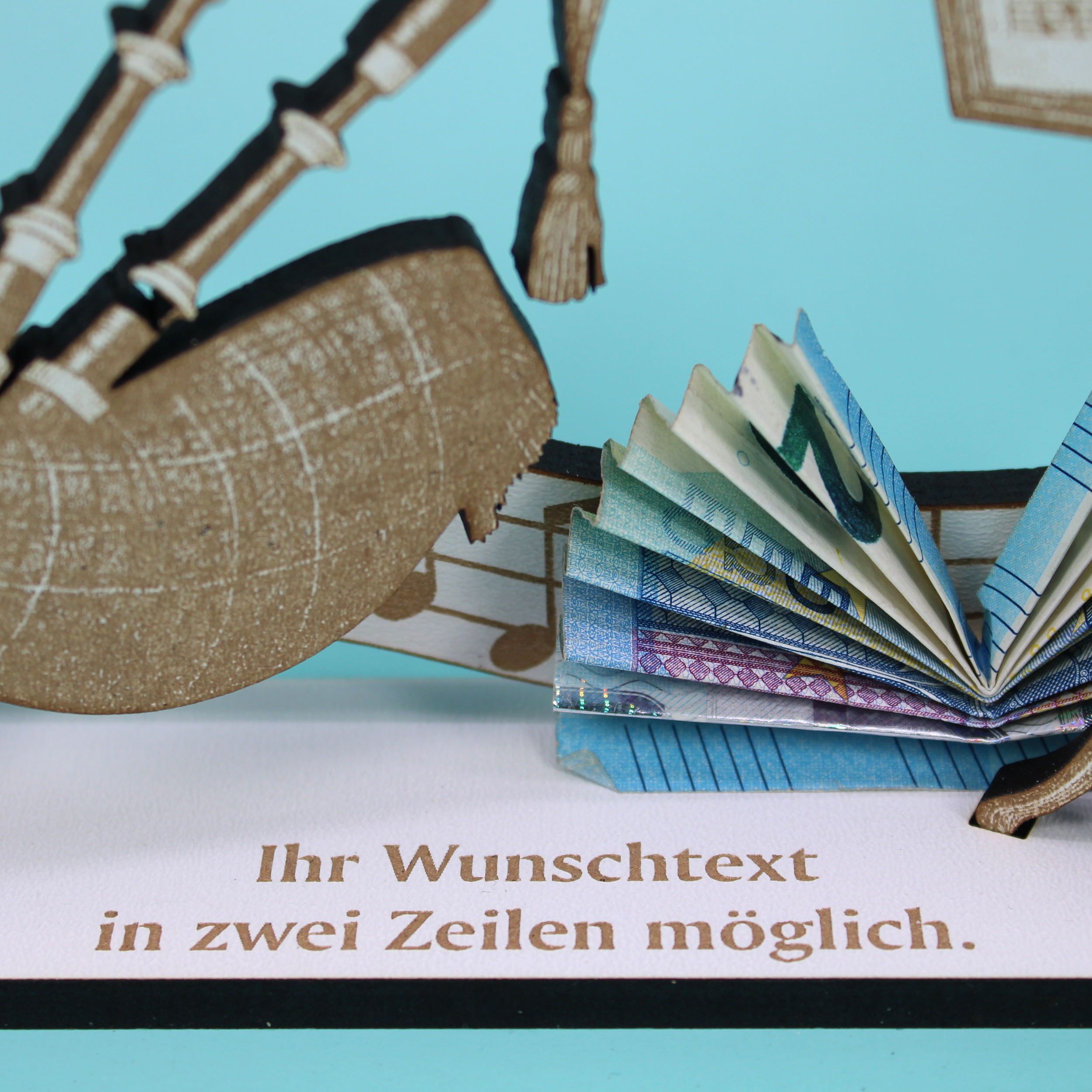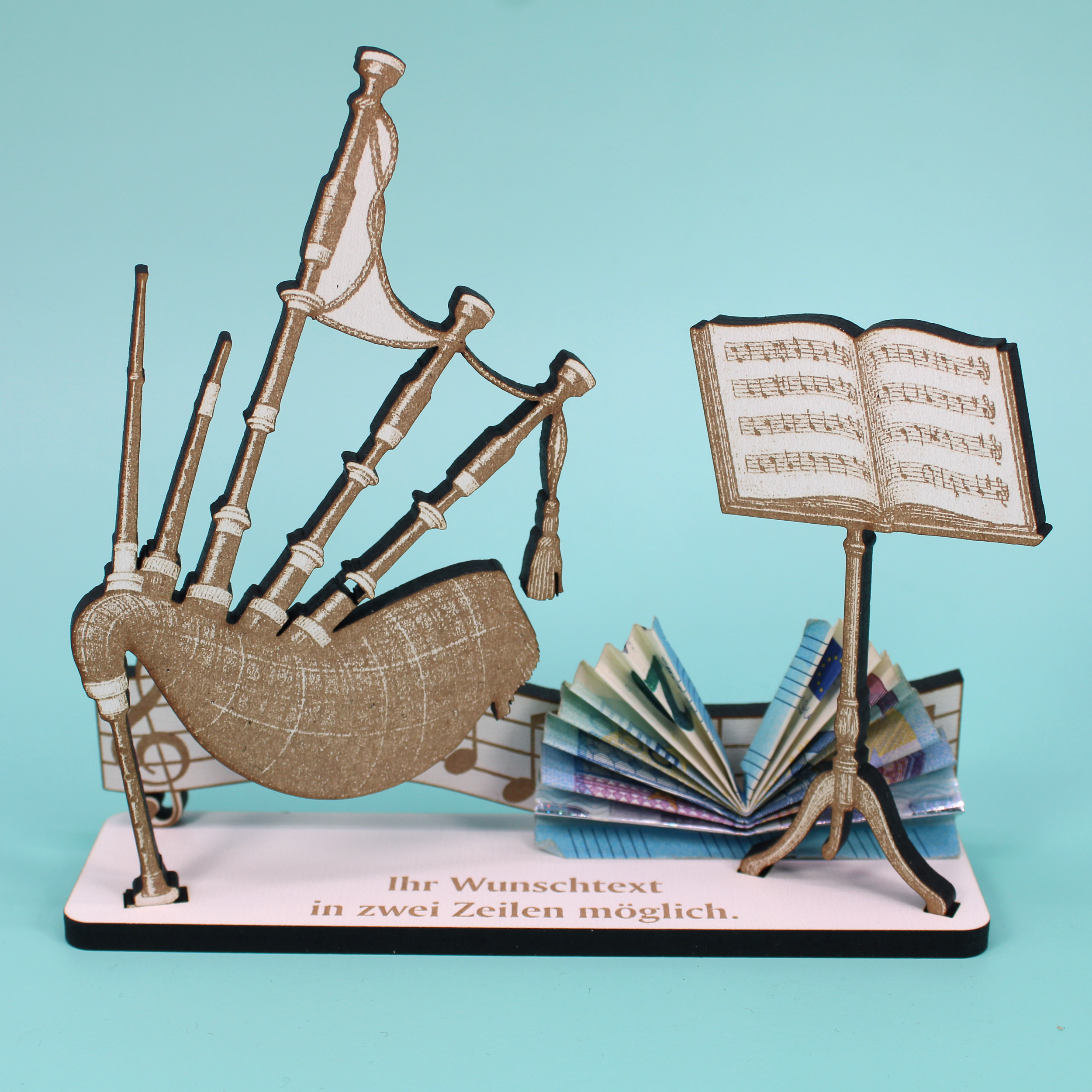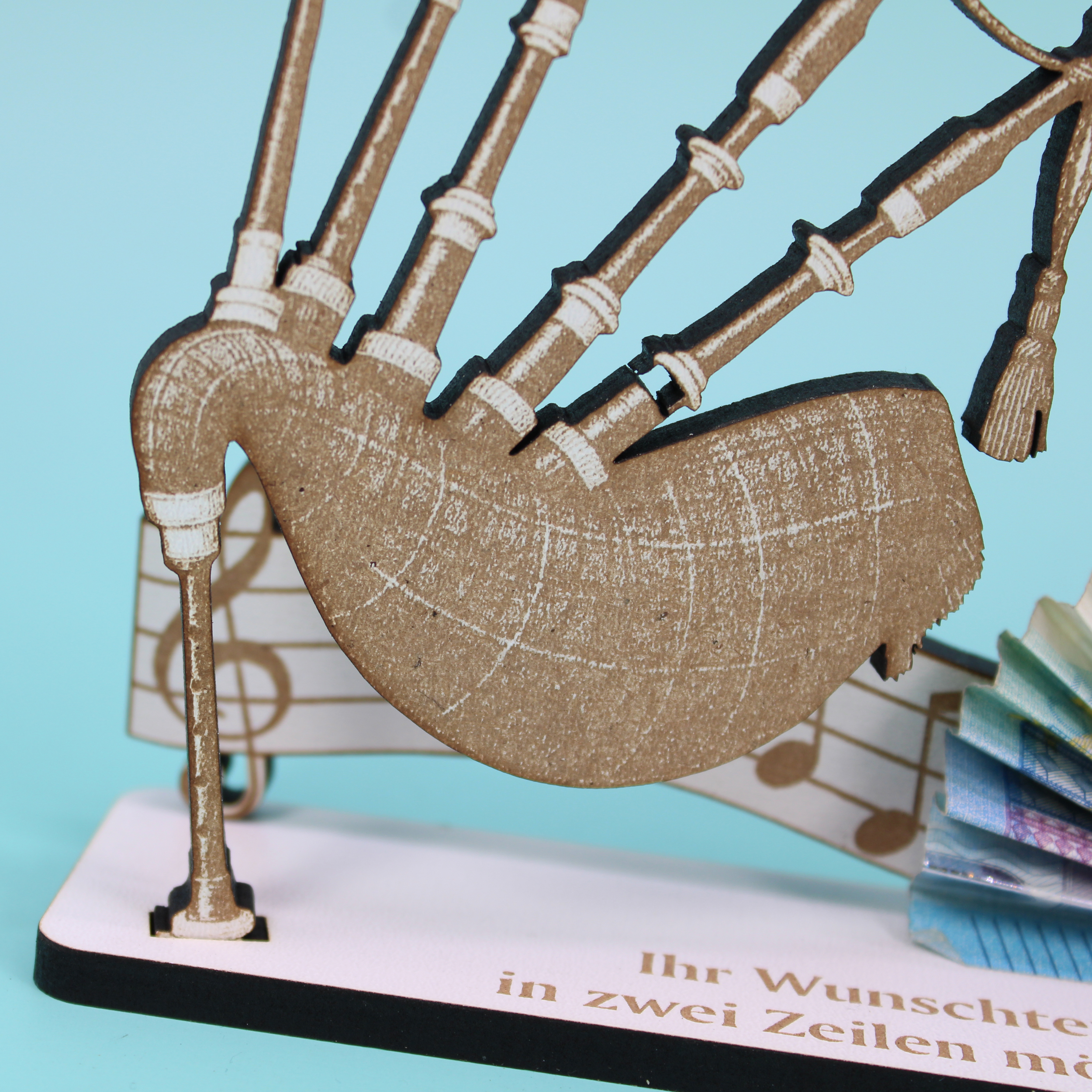 Dekoaufsteller Dudelsack – Geschenk für Musiker mit Wunschtext - Dudelsackspieler & Dudelsackspielerin – Geldgeschenk