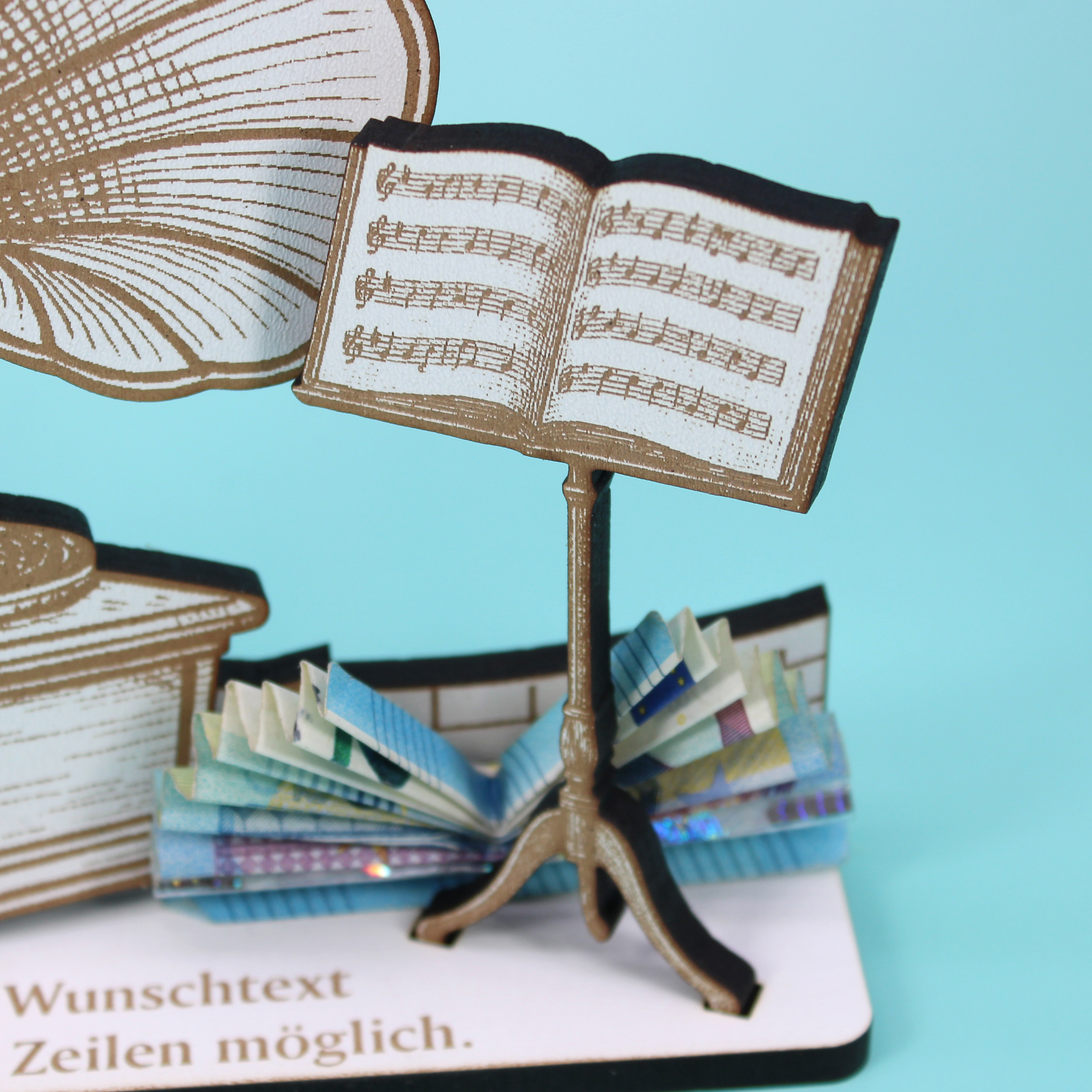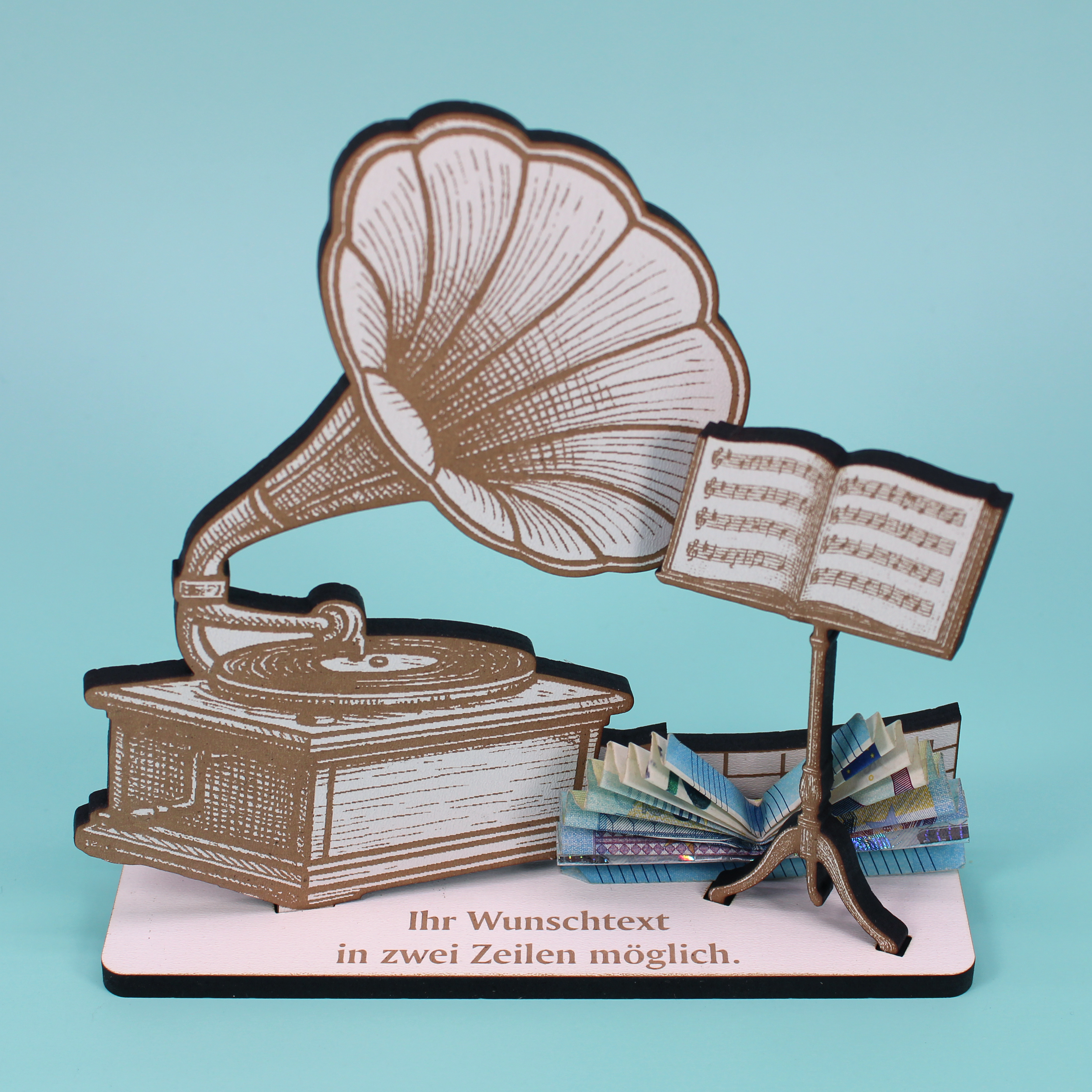 - Grammophon Geschenk Aufsteller – Plattenaufleger & Plattenauflegerin auf gepasst! Grammophone sind großer Bestandteil von Frühe Popmusik, Jazz & Klassik. Somit ist diese Geschenkidee & Geldgeschenk für Musiker und Hobbymusiker ideal.