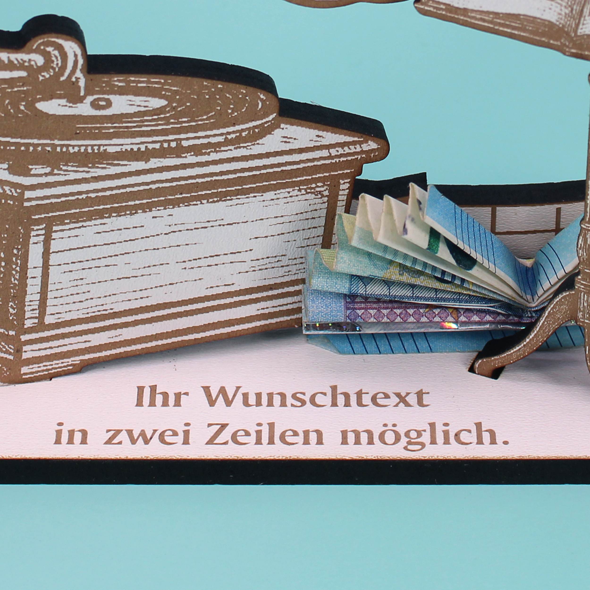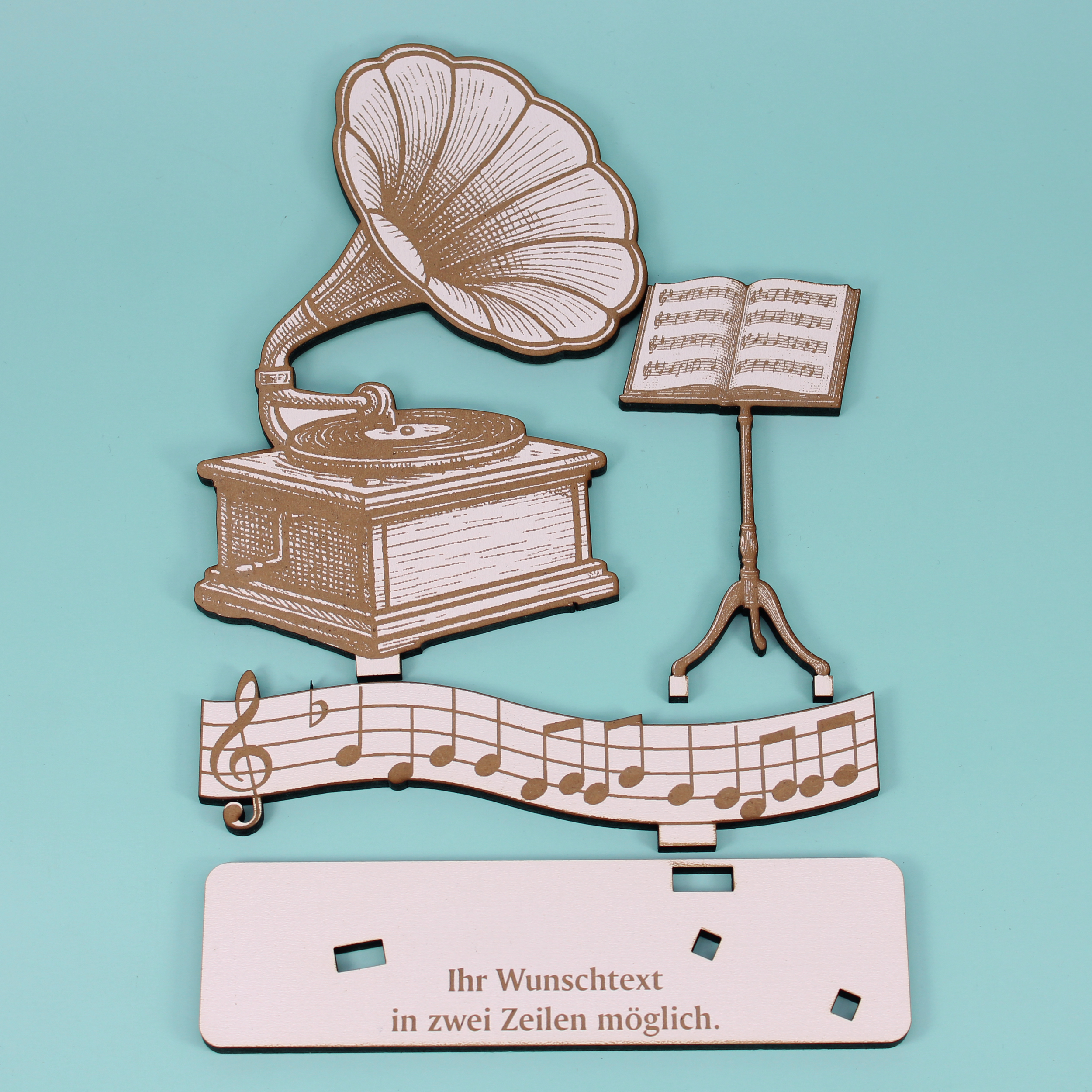 Dekoaufsteller Grammophon – Geschenk für Musiker mit Wunschtext - Plattenaufleger & Plattenauflegerin – Geldgeschenk