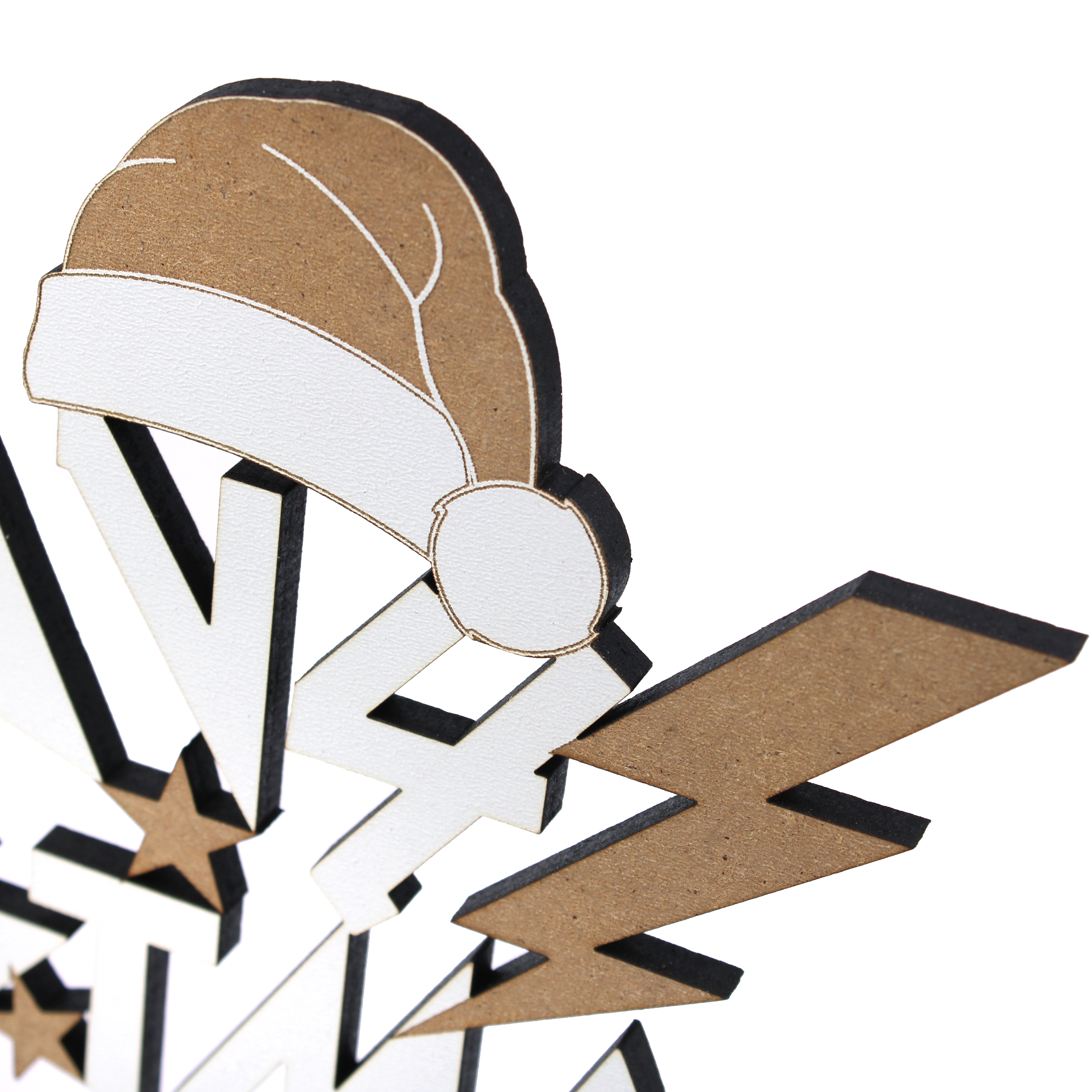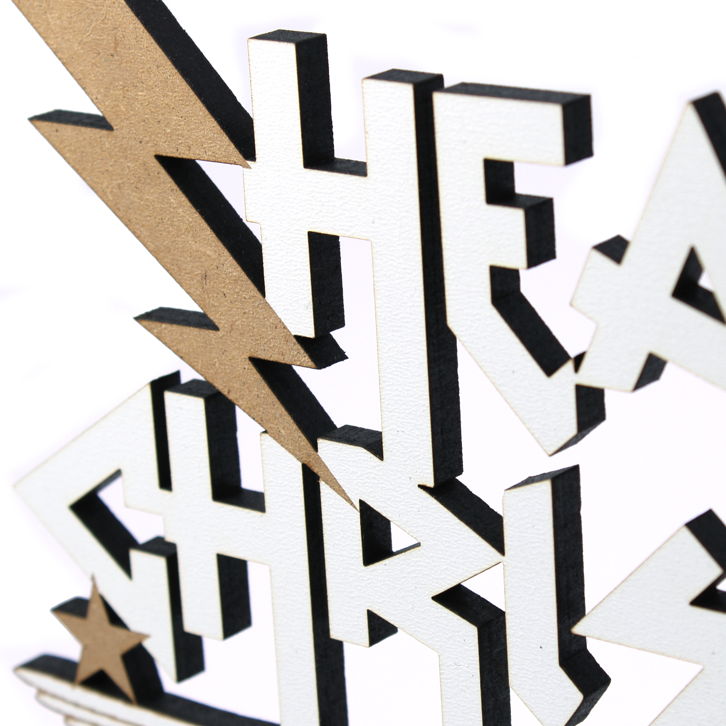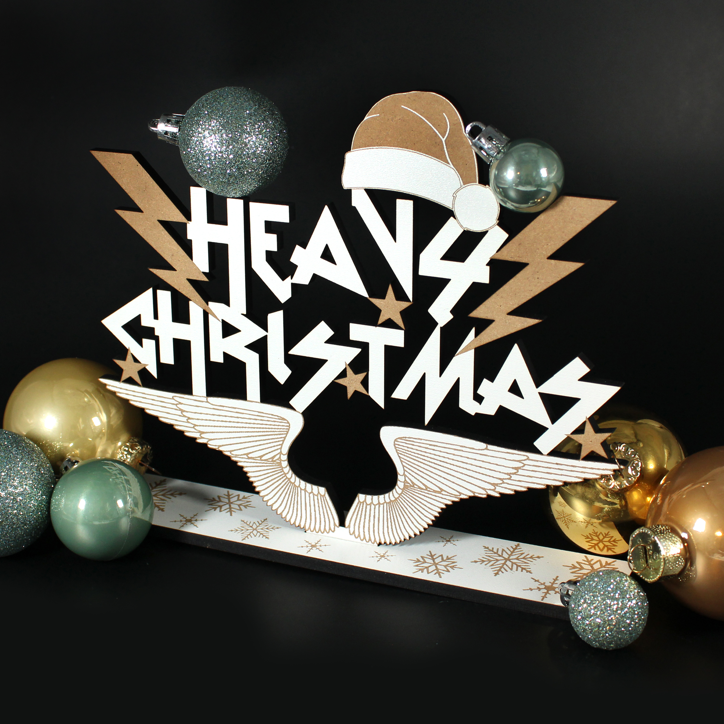 Der Dekoaufsteller „Heavy Christmas“ ist die perfekte Kombination aus Weihnachtsstimmung und Rock’n’Roll. Gefertigt aus hochwertigem, weiß beschichtetem HDF-Material, beeindruckt der Aufsteller mit seiner braunen Lasergravur.