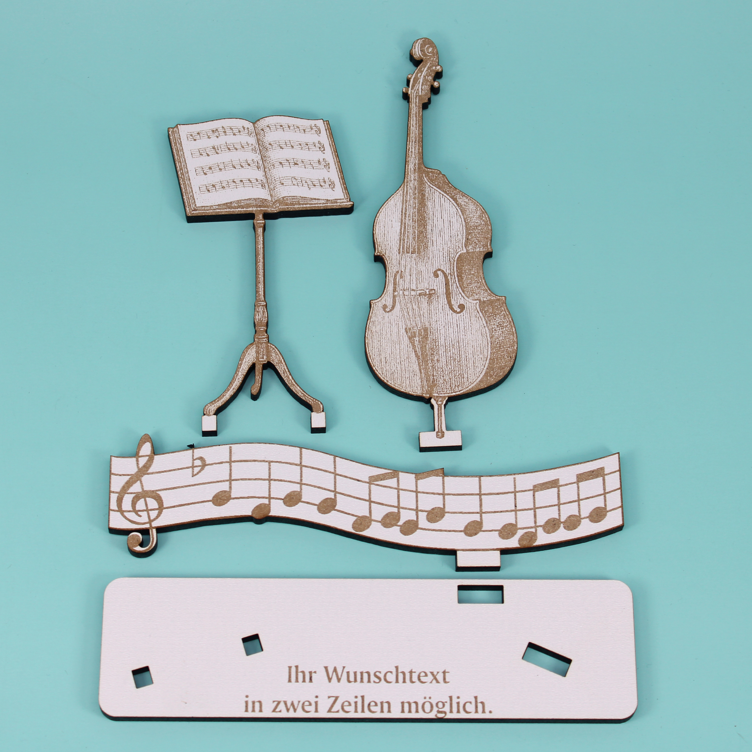 Besonders praktisch: Der Sockel ist personalisierbar. Dein Wunschtext (z. B. Name, Datum, Bandname, kurze Widmung) wird präzise eingraviert und macht den Aufsteller zum persönlichen Geschenk für Musiker, Hobbymusiker, Musiklehrer oder die Lieblingsband. So eignet sich das Stück hervorragend als Geldgeschenk (für Instrumenten-Anschaffungen, Unterricht, Konzerttrip) oder als Geschenk zum Geburtstag, Abschluss, Konzert oder Jubiläum.