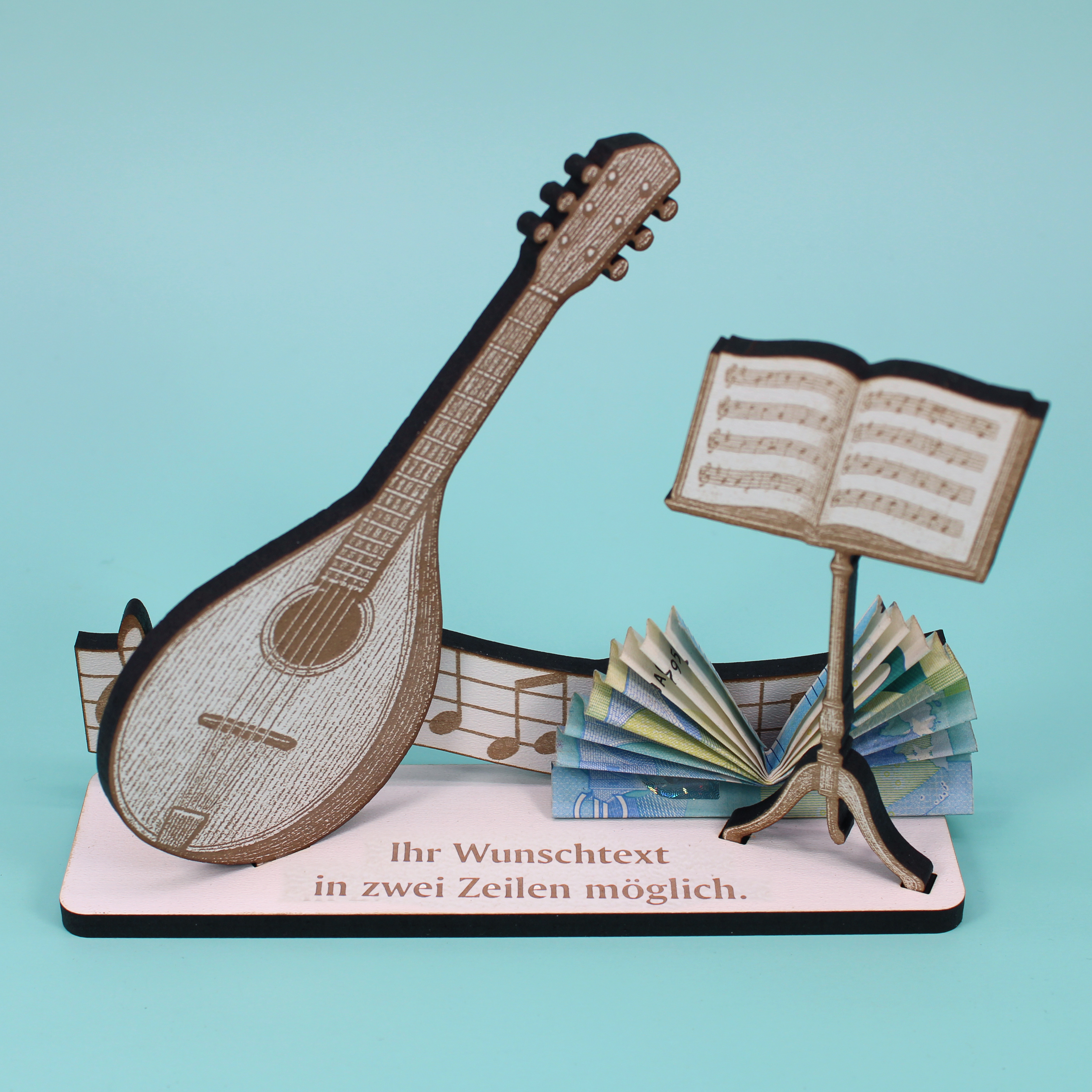 Dekoaufsteller Mandoline – Geschenk für Musiker mit Wunschtext - Mandolinist & Mandolinistin – Geldgeschenk