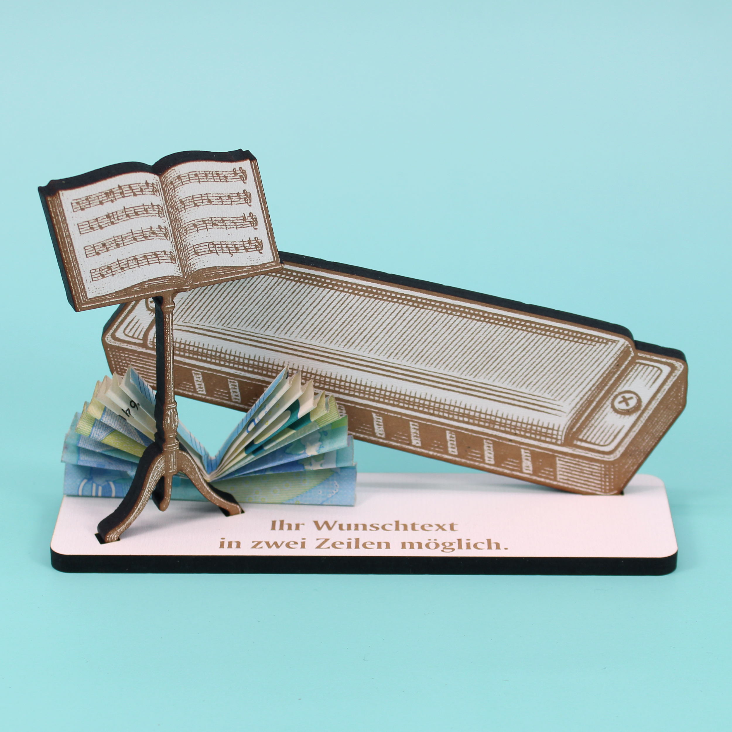 Dekoaufsteller Mundharmonika – Geschenk für Musiker mit Wunschtext - Mundharmonikaspieler & Mundharmonikaspielerin – Geldgeschenk