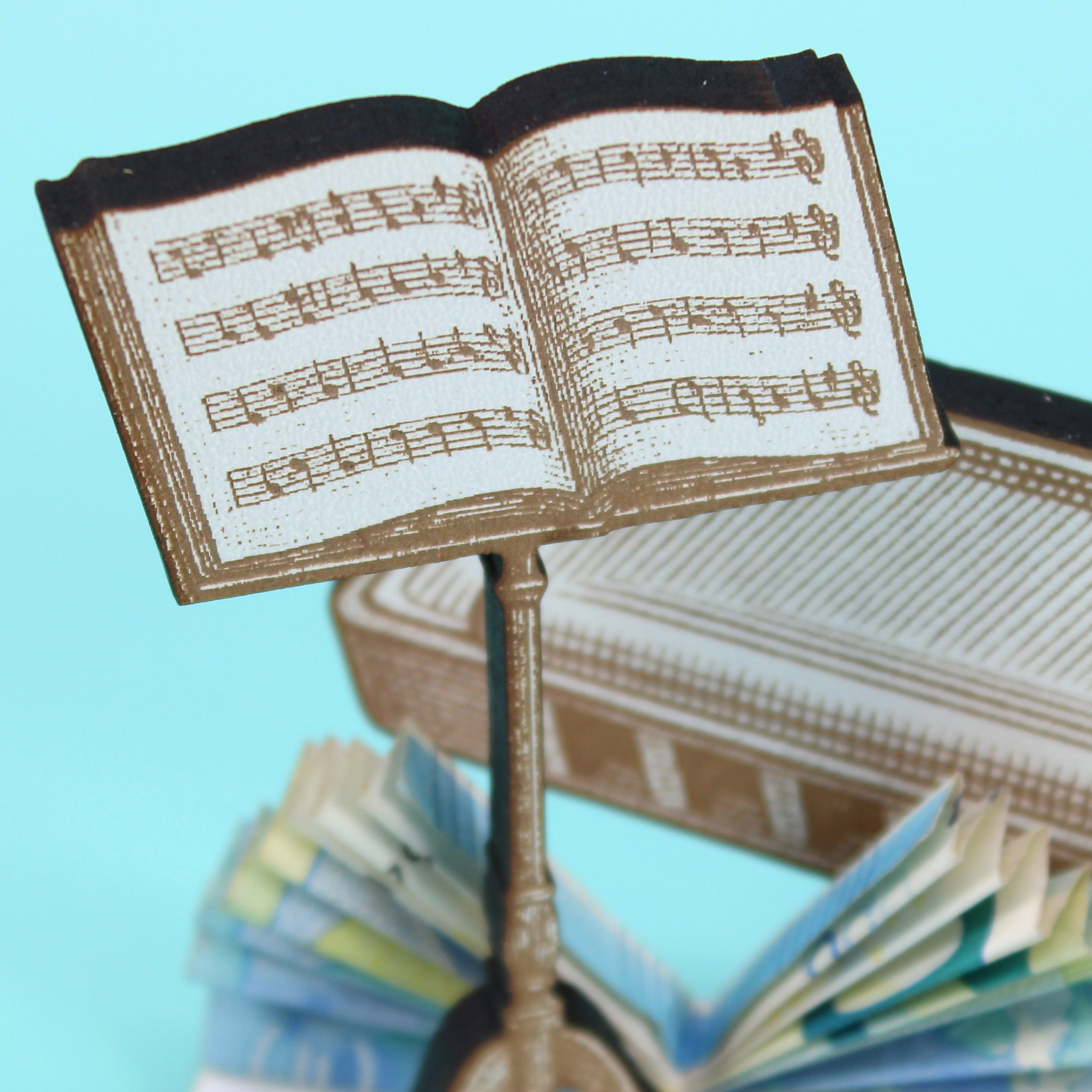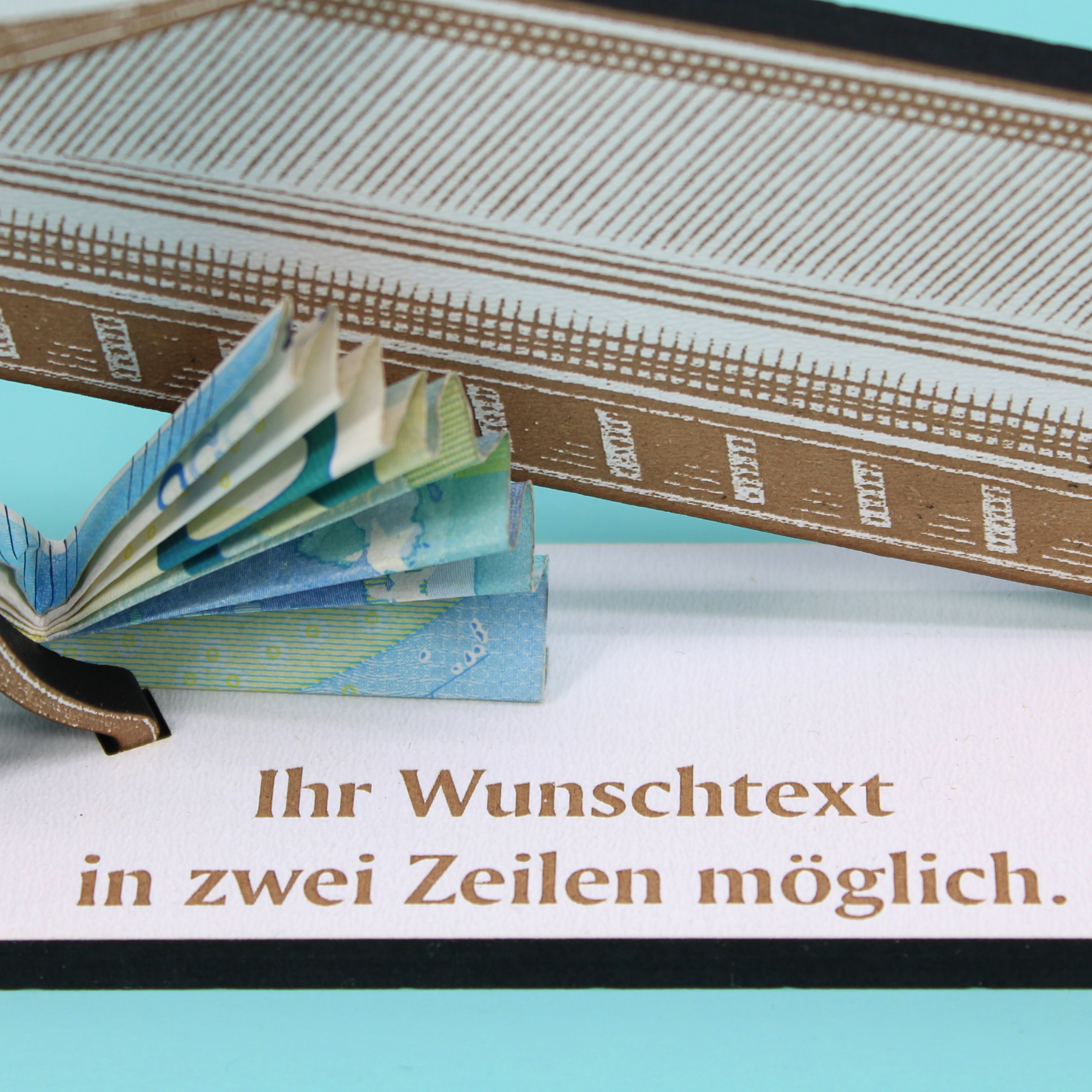 Freistehend platziert auf Regal, Sideboard, Schreibtisch oder Fensterbank wird er zum Blickfang – solo oder kombiniert mit Vinyls, Noten, Plektren, Drumsticks oder Kopfhörerständer. Ideal, um Geldscheine, Gutscheine oder Karten dekorativ beizulegen und so ein wertiges Geldgeschenk mit persönlicher Note zu überreichen.
