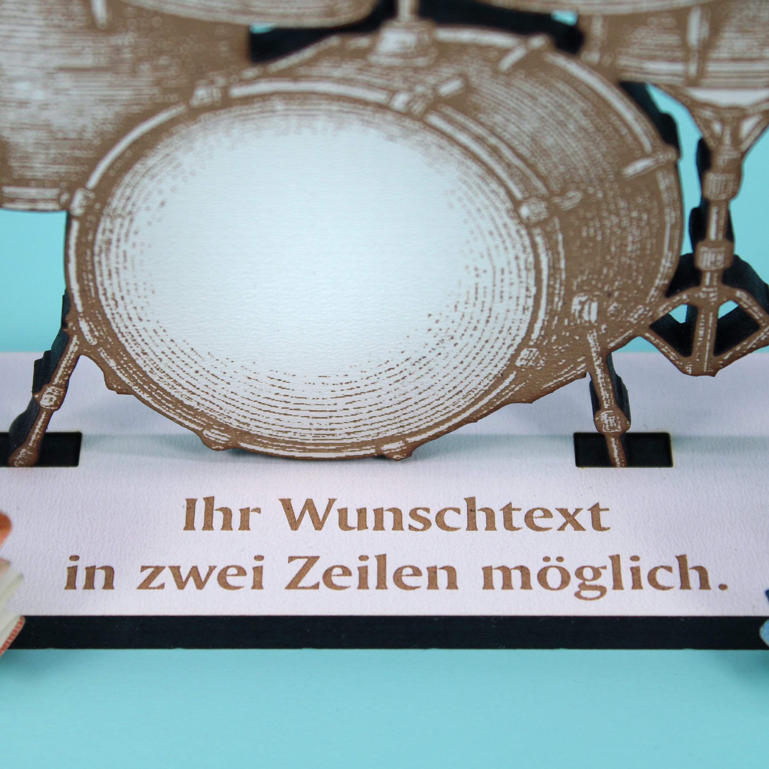 Dekoaufsteller Schlagzeug – Geschenk für Musiker mit Wunschtext - Schlagzeuger & Schlagzeugerin – Geldgeschenk