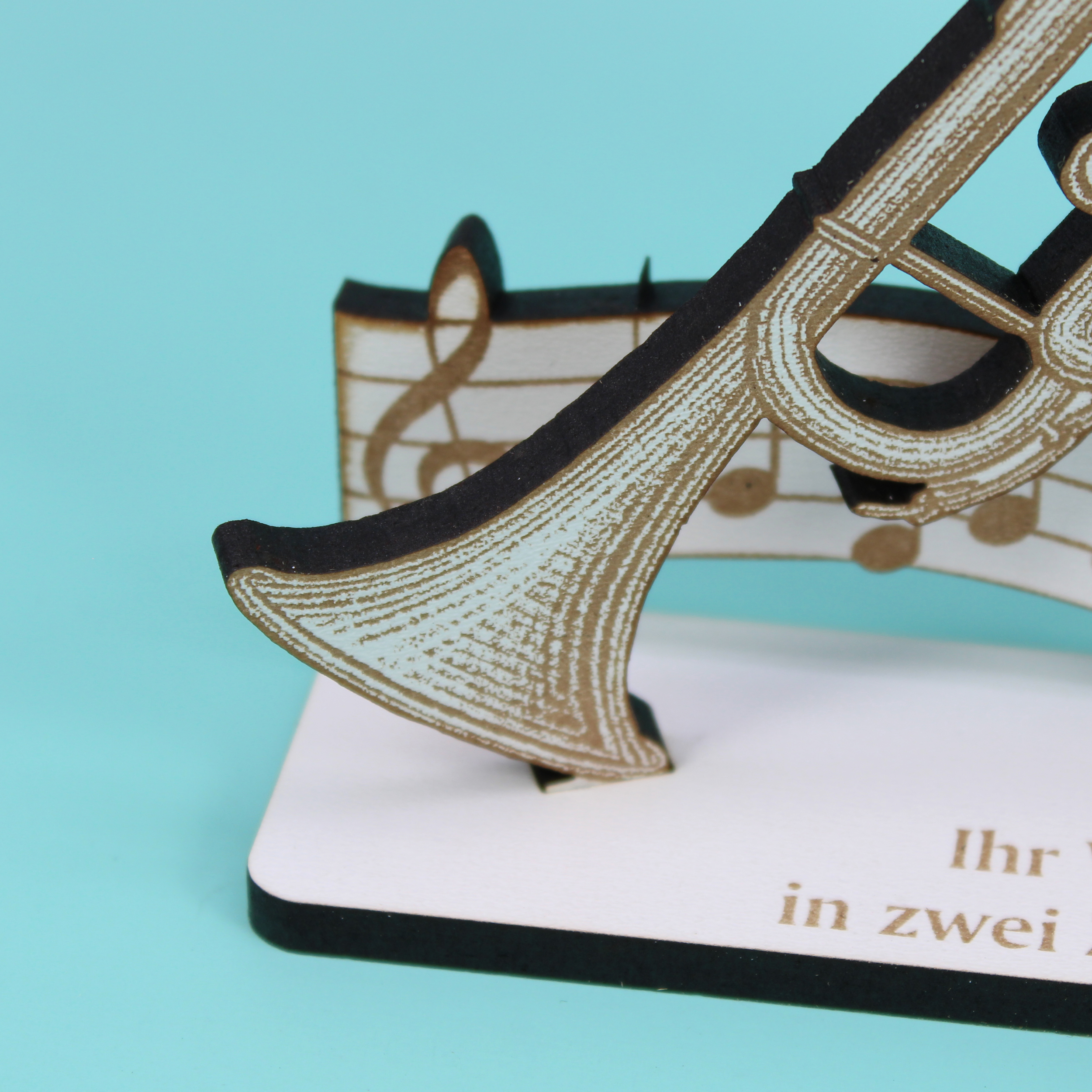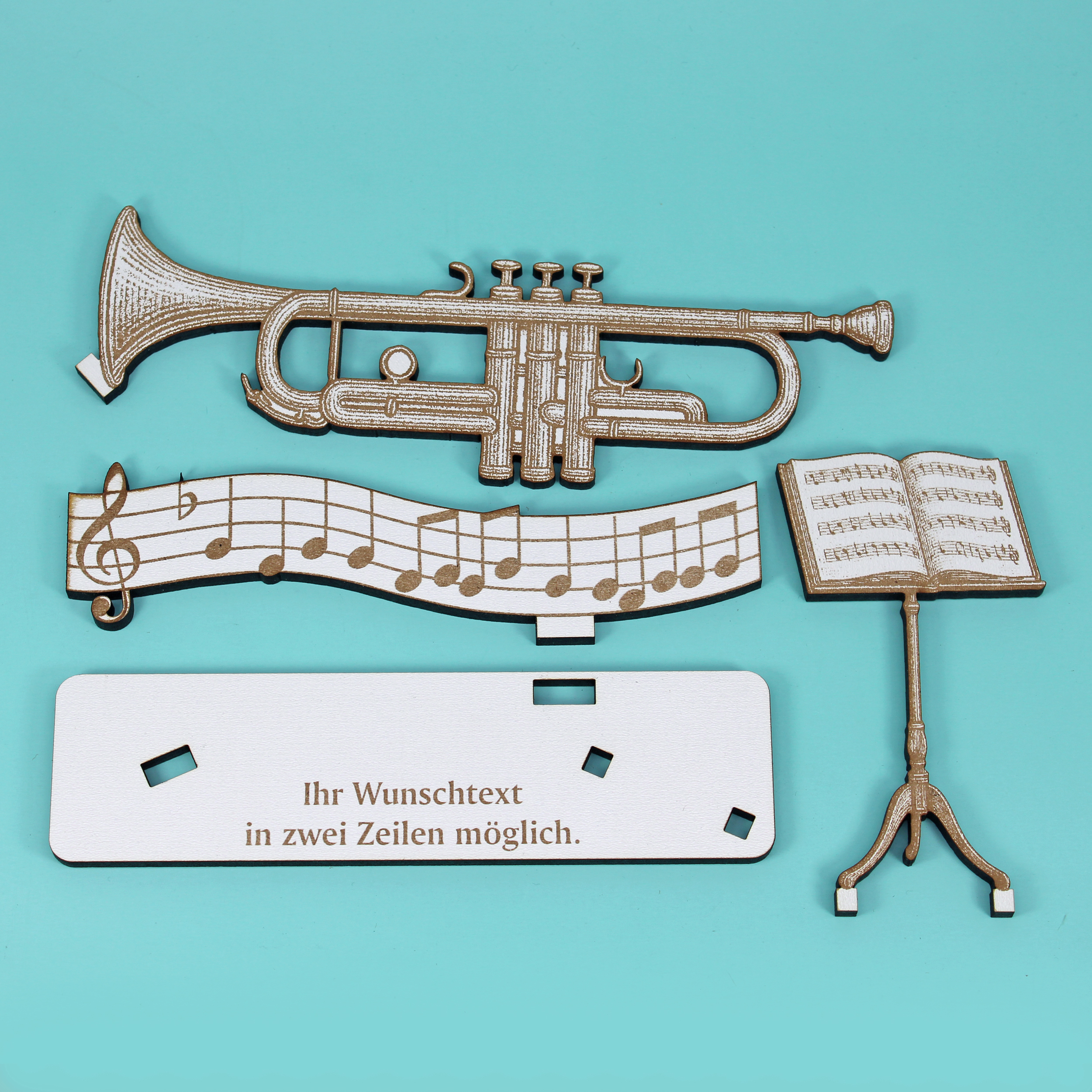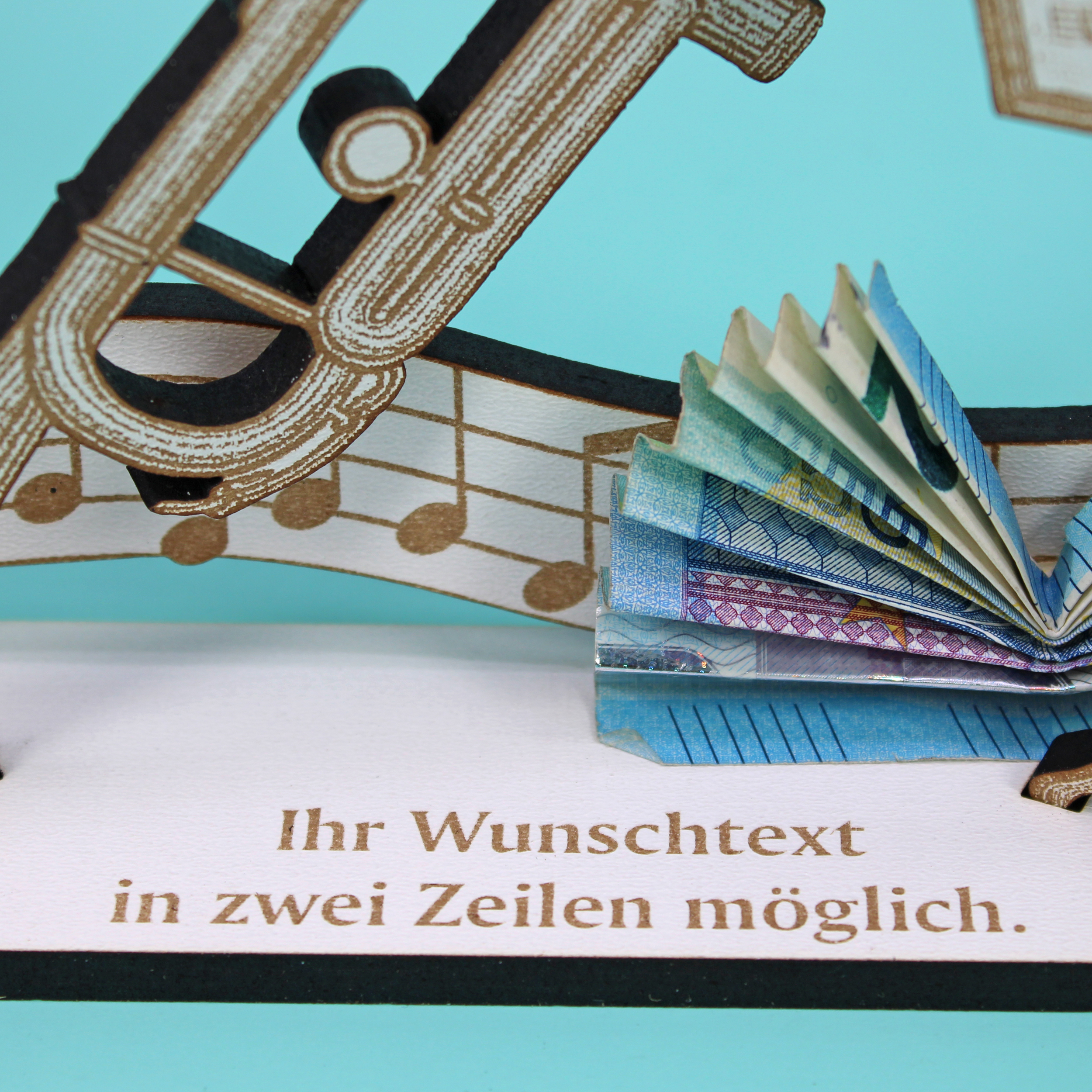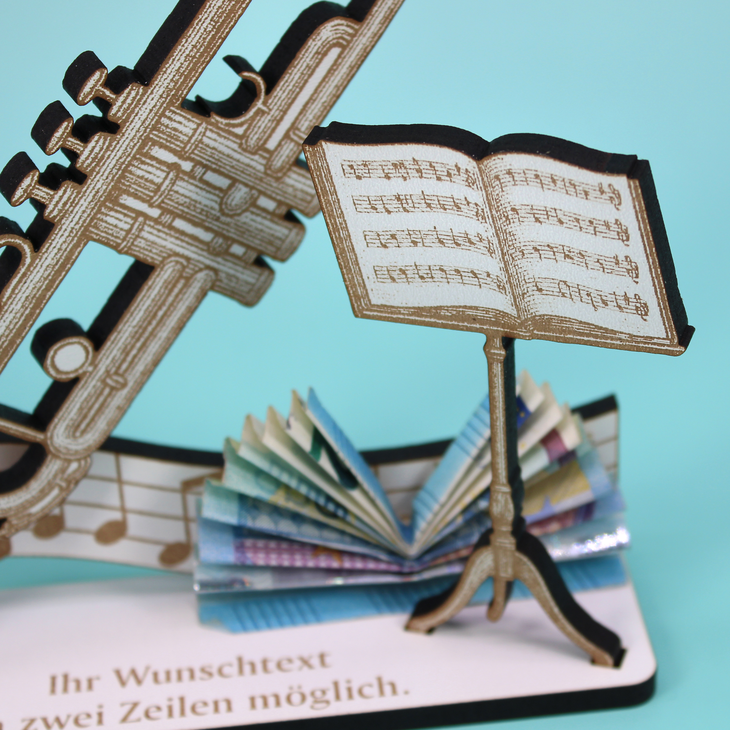 Dekoaufsteller Trompete – Geschenk für Musiker mit Wunschtext - Trompeter & Trompeterin – Geldgeschenk