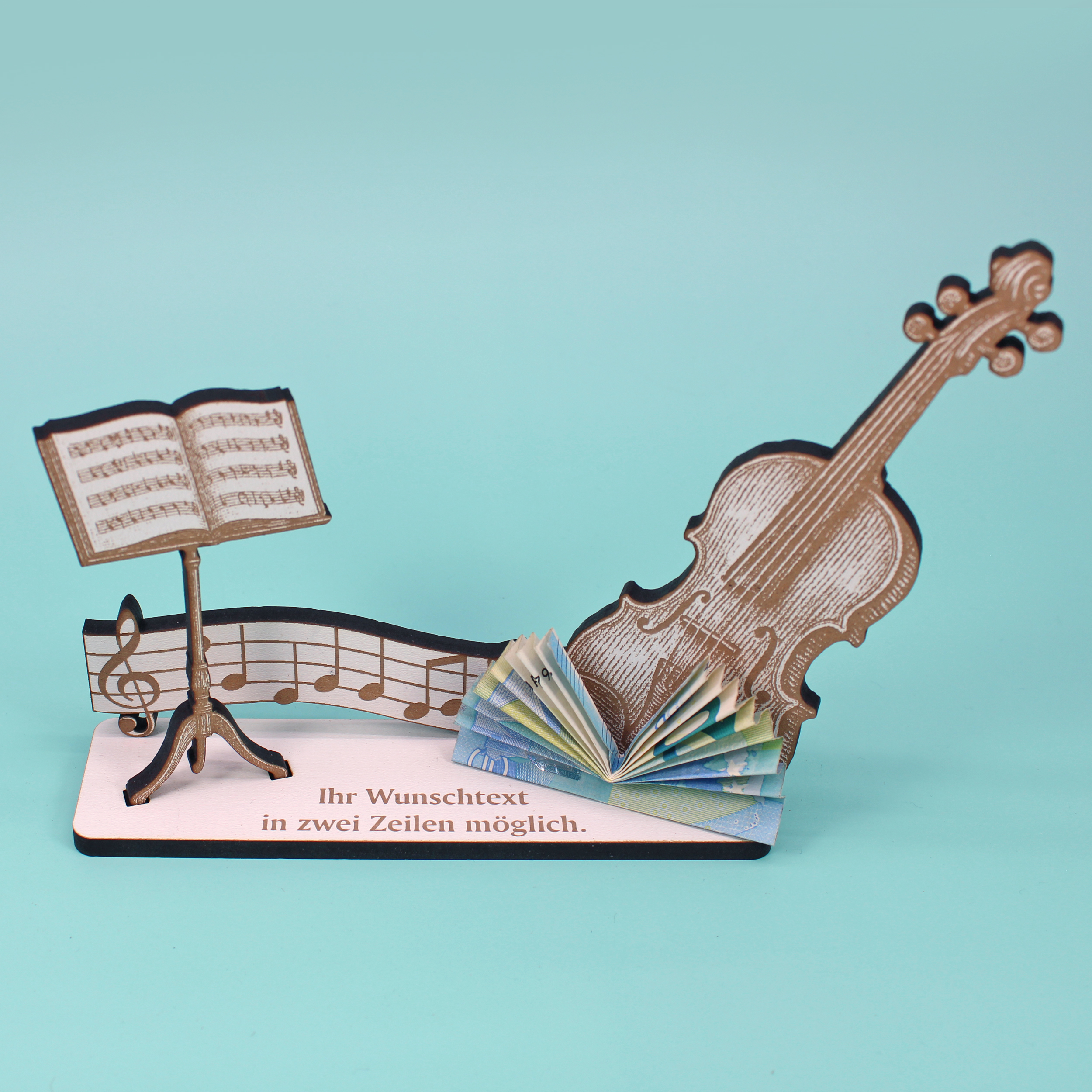 Dekoaufsteller Violine – Geschenk für Musiker mit Wunschtext - Violinist & Violinistin – Geldgeschenk