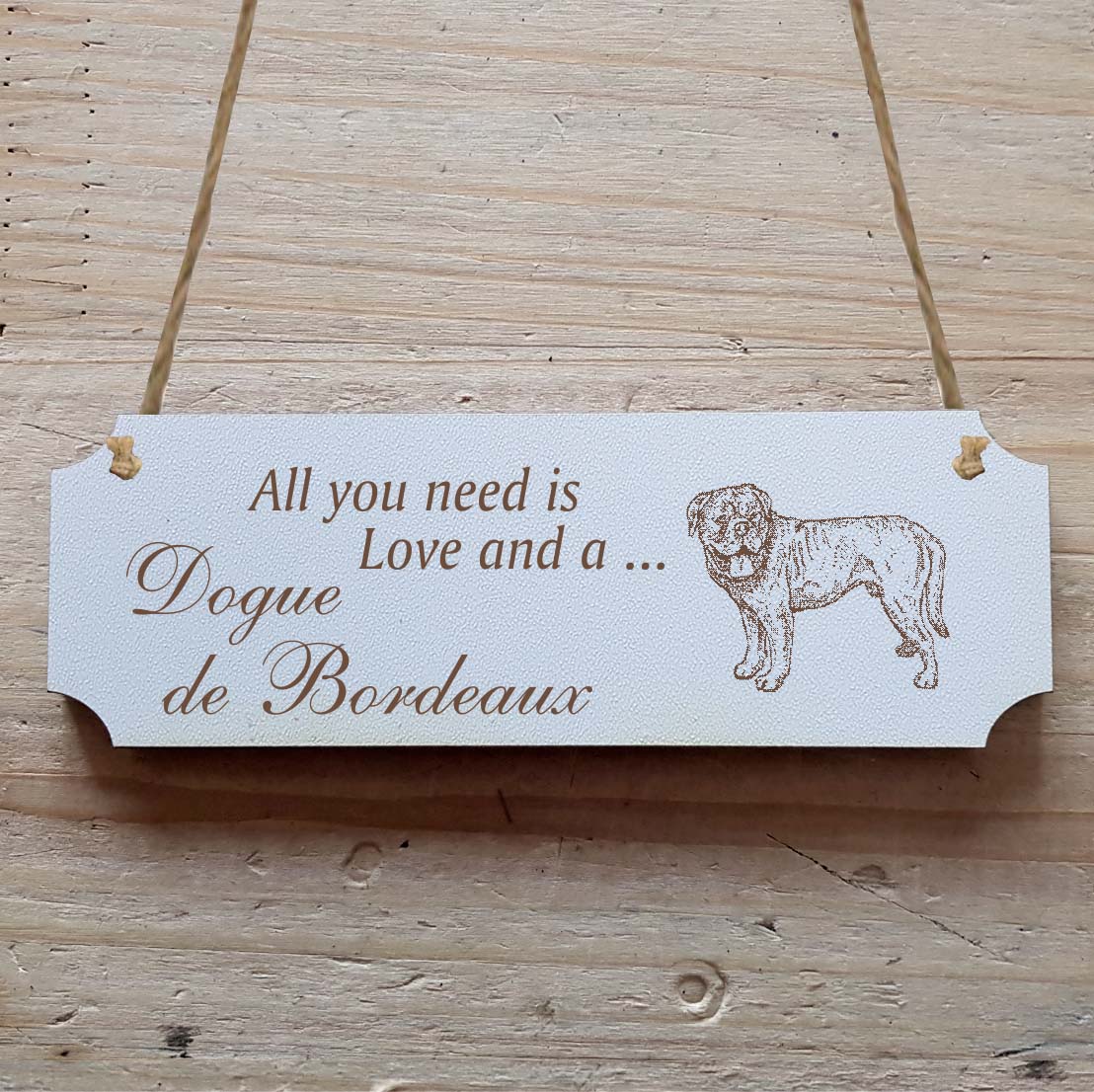 Dekoschild « All you need is Love and a Dogue de Bordeaux » Bordeauxdogge