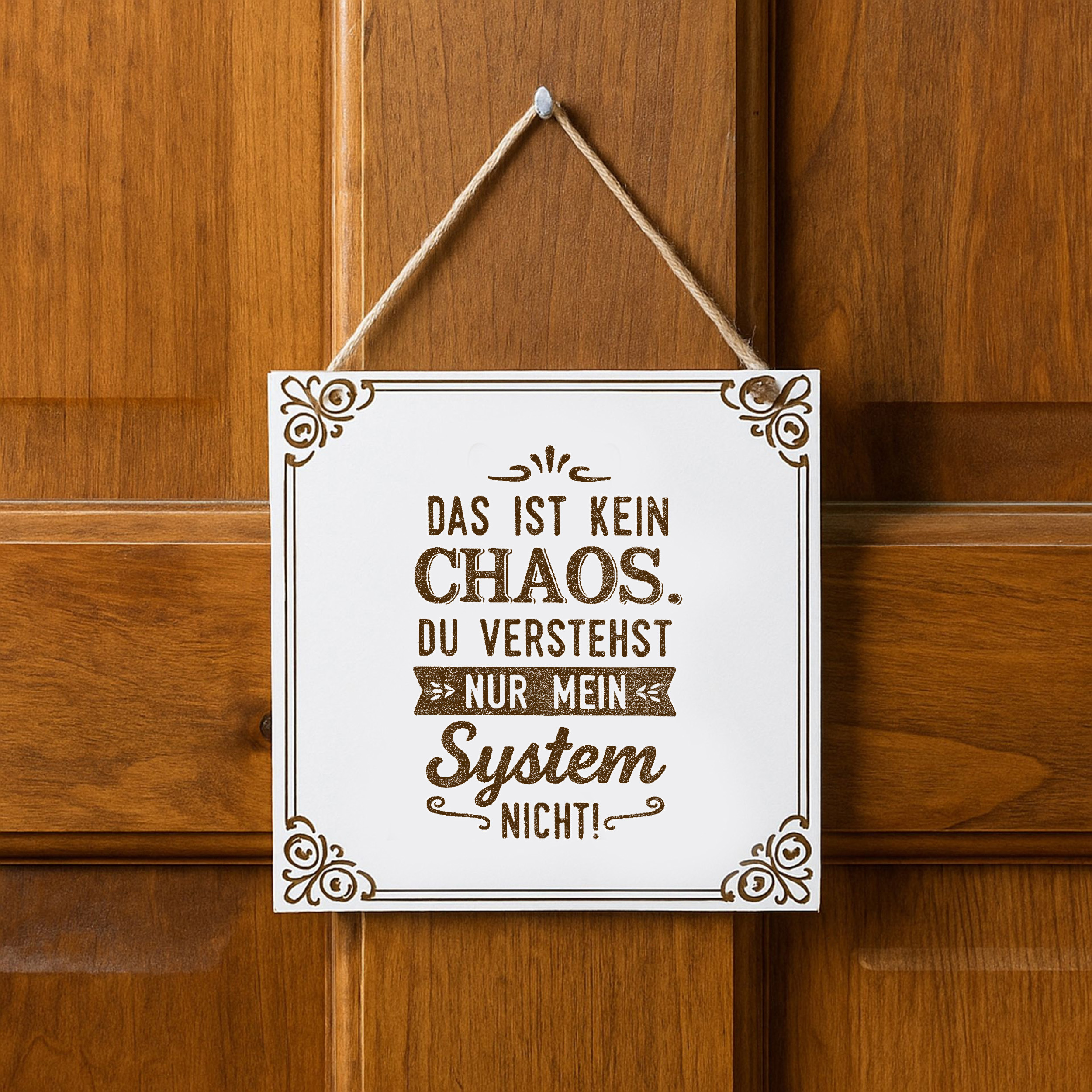Dekoschild Das ist kein Chaos 15×15 cm aus weißem HDF – Graviertes Spruchschild