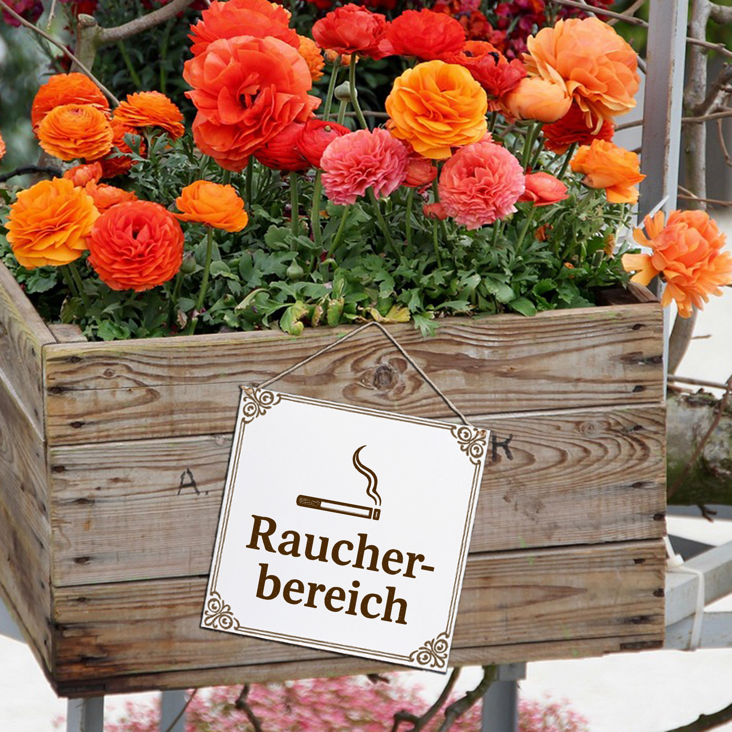 Dekoschild Raucherbereich 15×15 cm aus weißem HDF – Graviertes Spruchschild