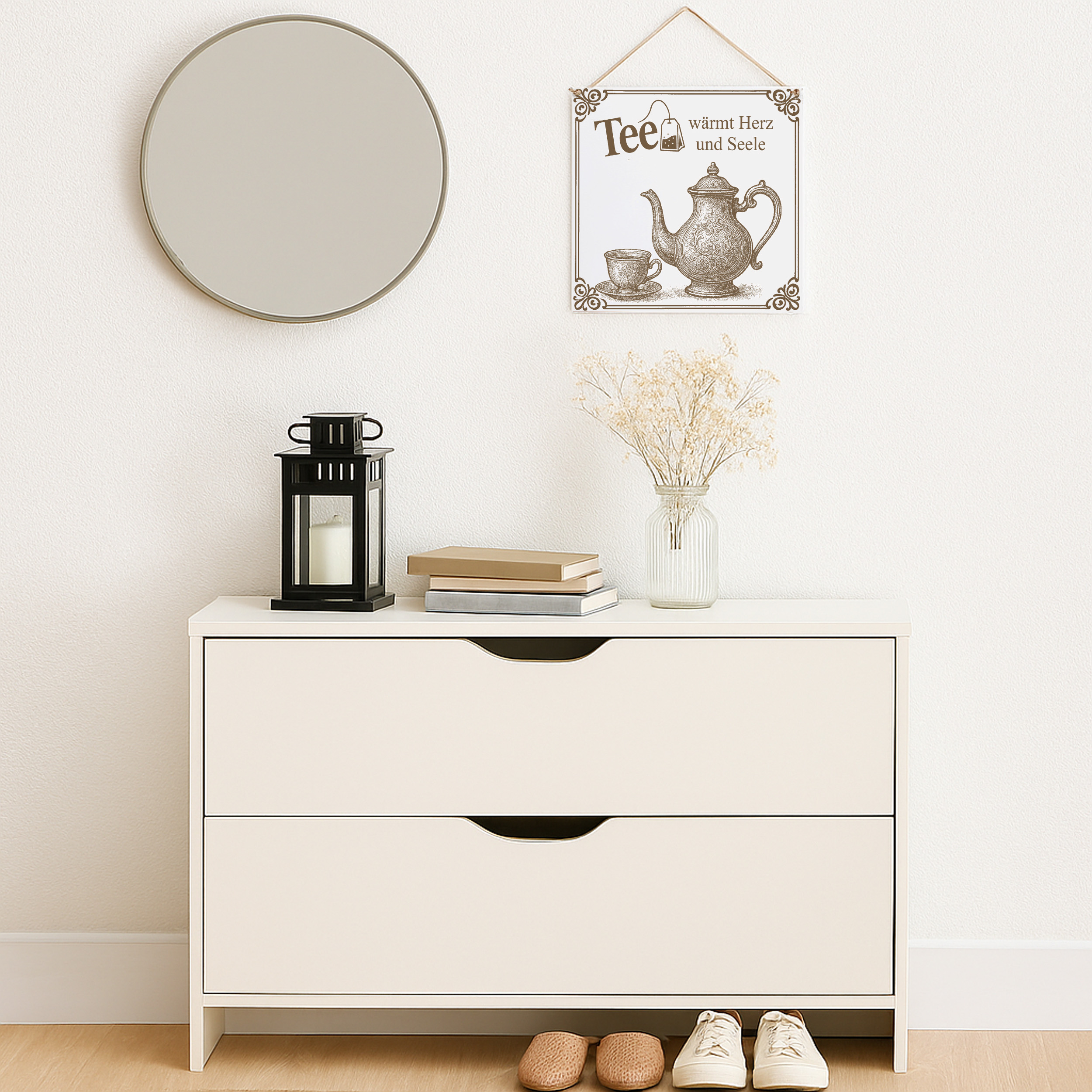 Gefertigt aus weißem HDF überzeugt das Schild mit Stabilität, geringem Gewicht und einem modernen Look. Die dauerhafte Gravur hebt die Botschaft klar hervor und wirkt edel sowie detailreich. Zwei vorgebohrte Löcher und das geknotete Juteband ermöglichen ein sofortiges Aufhängen ohne Aufwand.