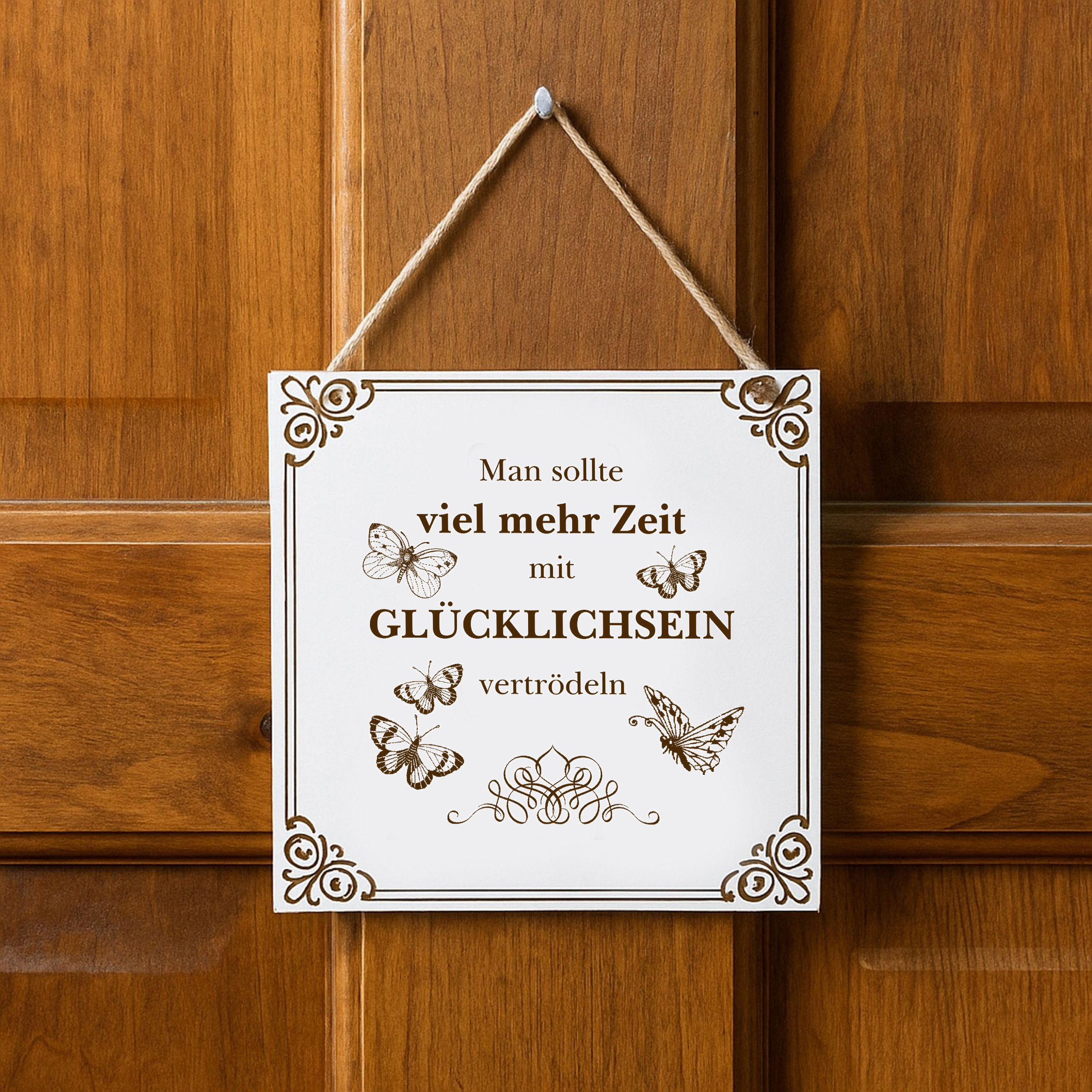 Dieses dekorative Schild im Format 15 × 15 cm verbindet Humor, Inspiration und stilvolles Design. Gravierte Sprüche machen es zu einem langlebigen Accessoire, das mehr ist als nur Dekoration: Es bringt Persönlichkeit und Emotionen in jeden Raum.