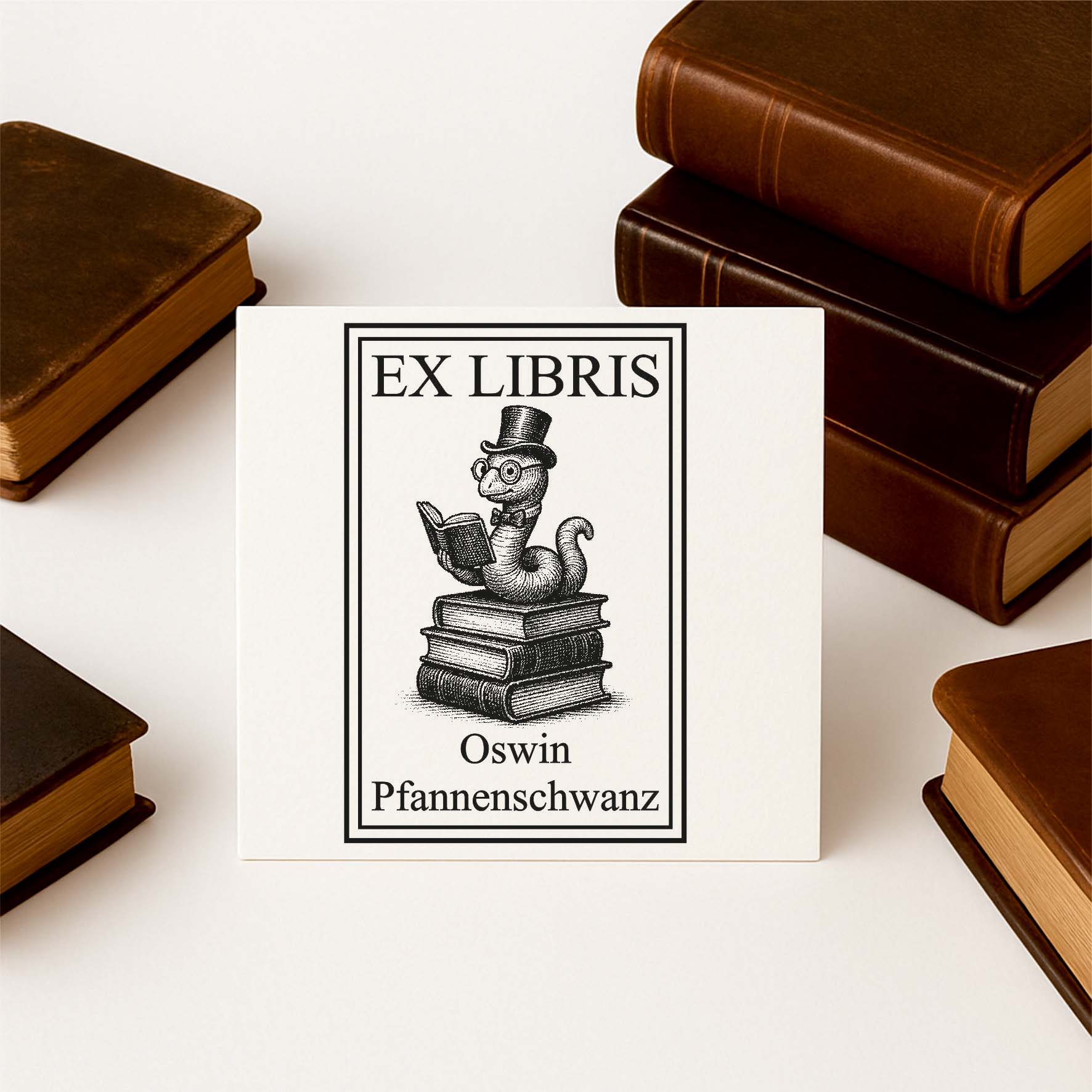 Verleihen Sie Ihrer Bibliothek eine persönliche Note mit diesem hochwertigen Ex Libris Stempel im edlen Vintage Style. Jeder Stempel wird individuell mit Ihrem Namen oder Wunschtext personalisiert und macht jedes Buch zu einem echten Unikat.