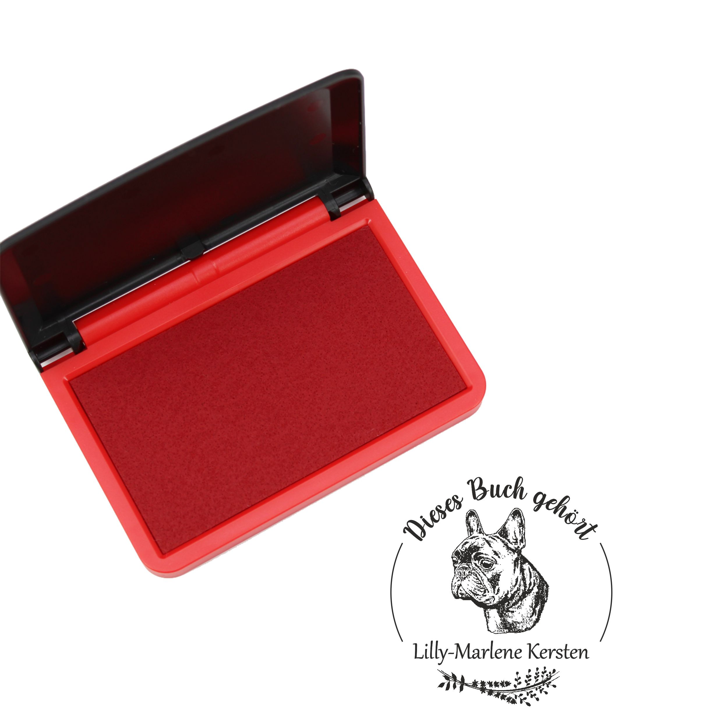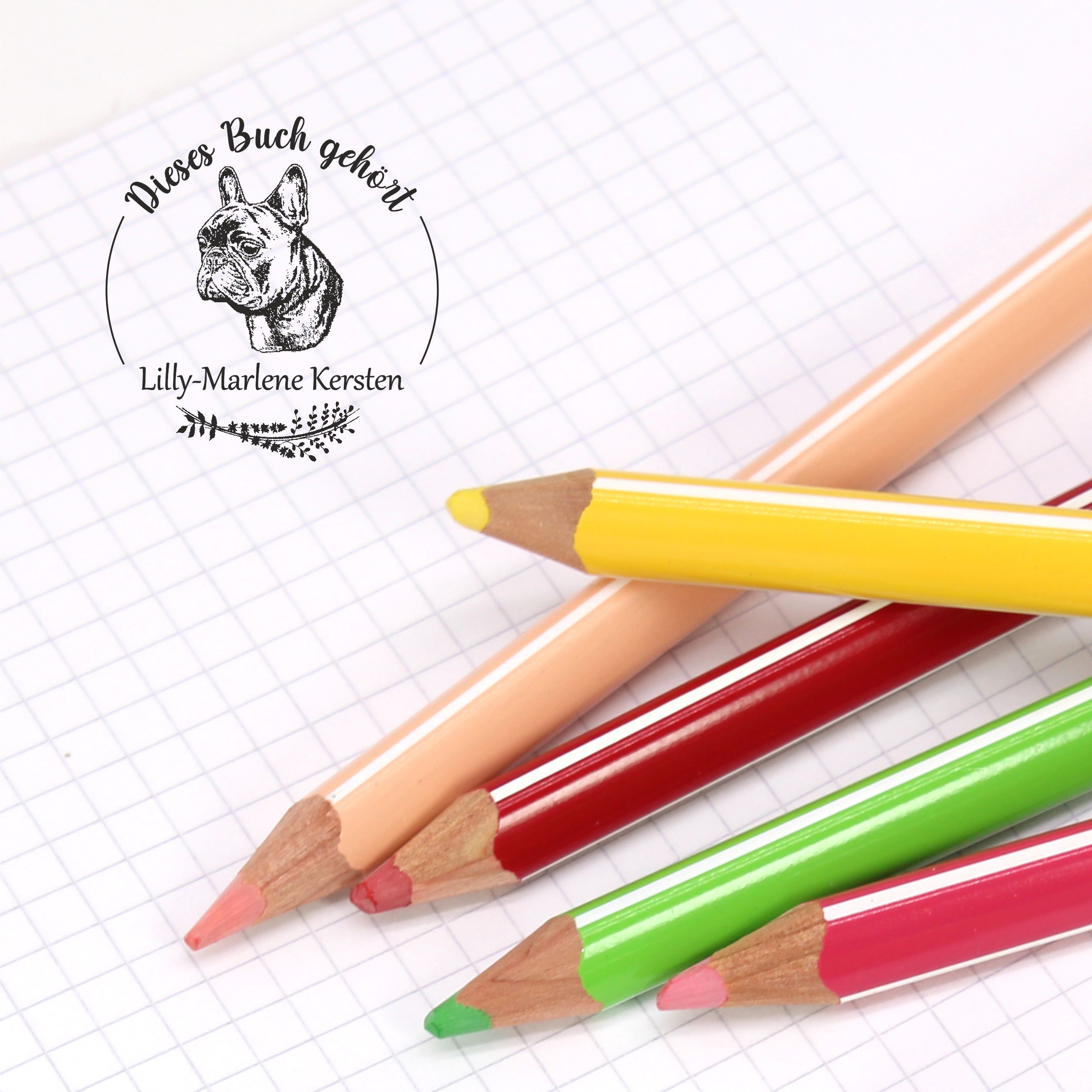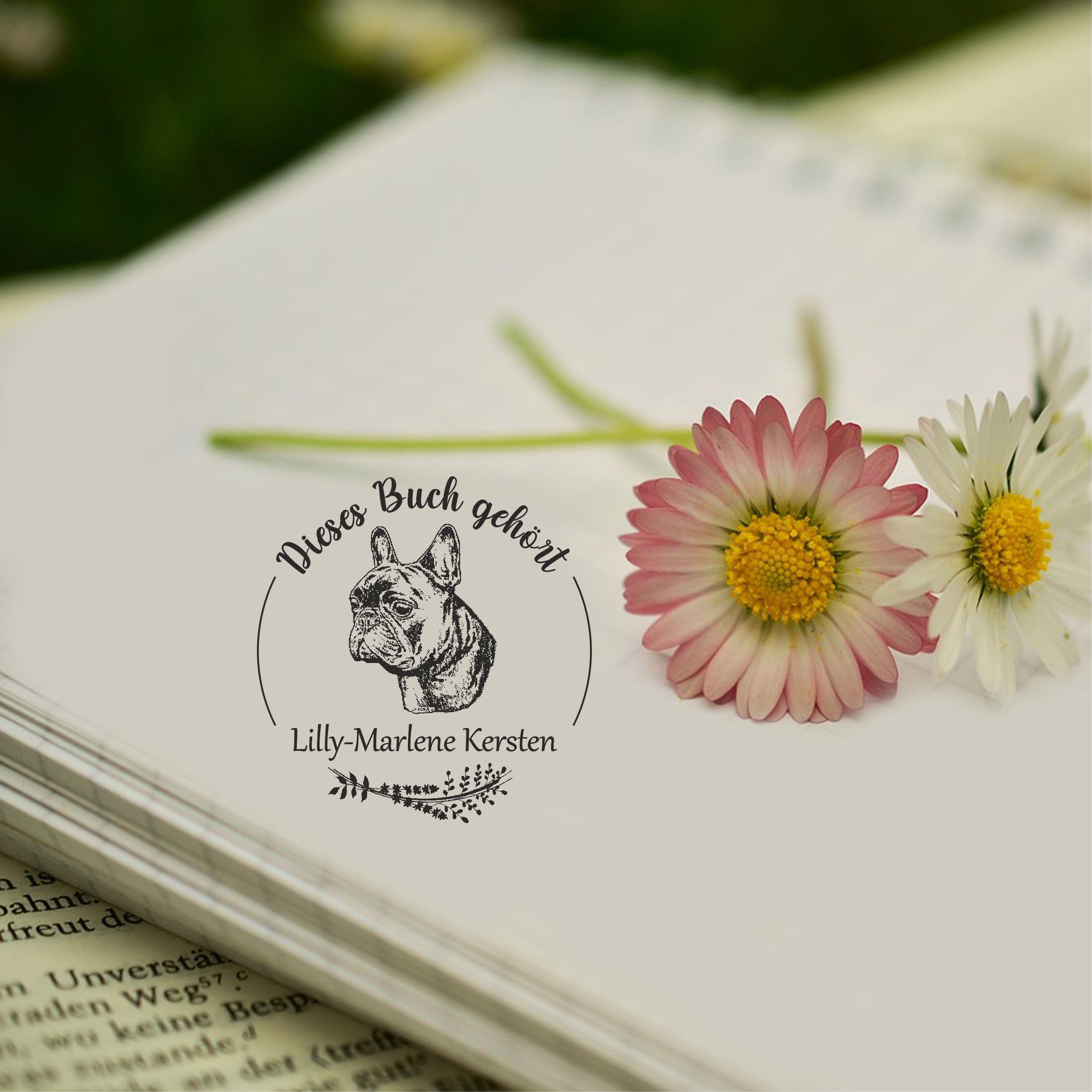 Ex Libris Stempel personalisiert mit Namen Motiv Französische Bulldogge - Bücherstempel individuell - für Kinder, Schule & Lehrer - Ø 38 mm