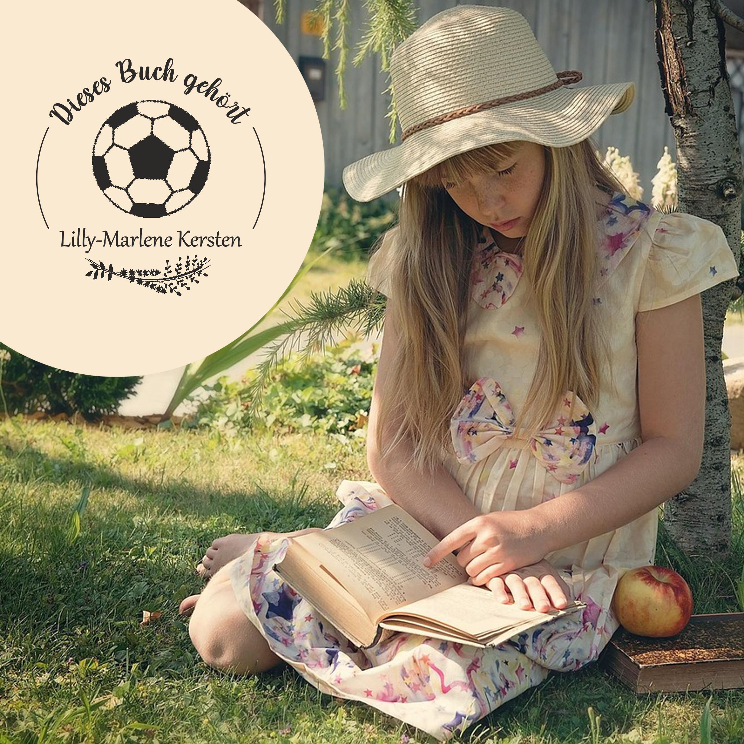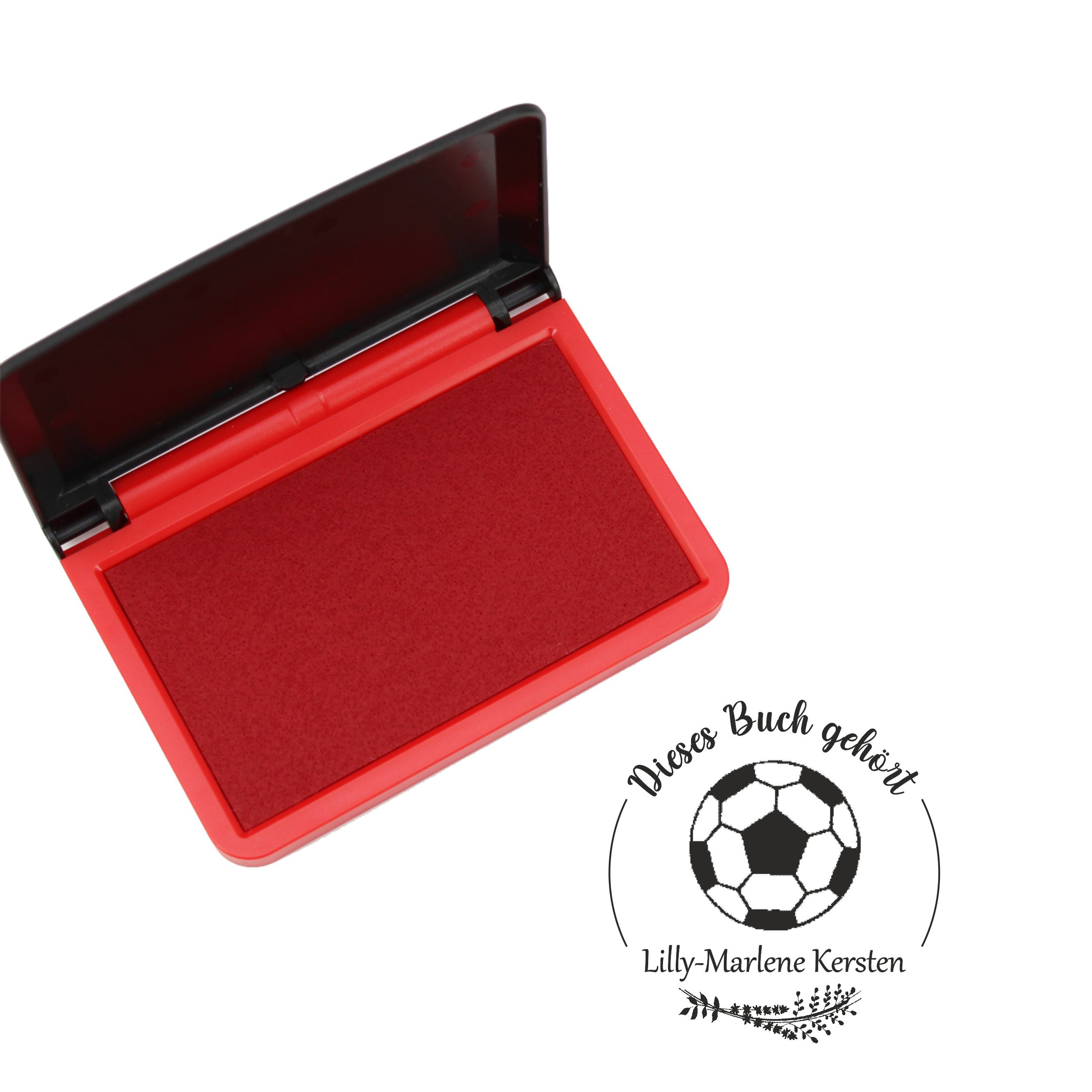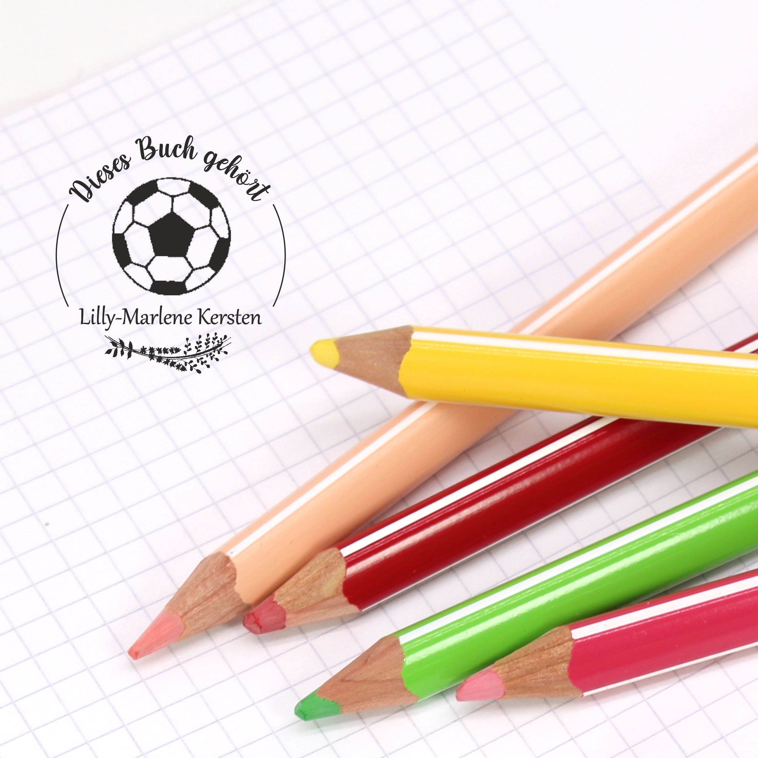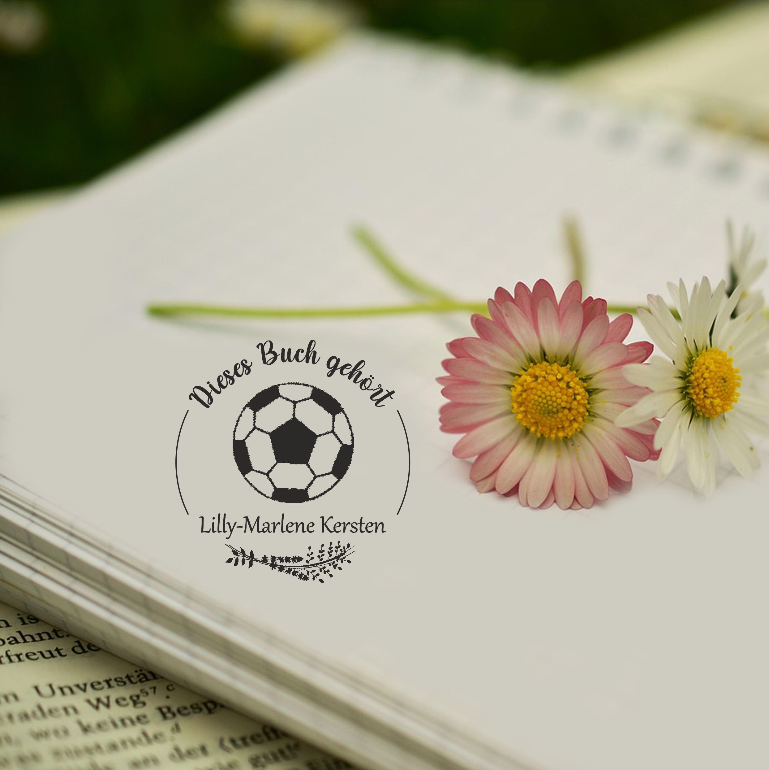 Ex Libris Stempel personalisiert mit Namen Motiv Fußball - Bücherstempel individuell - für Kinder, Schule & Lehrer - Ø 38 mm