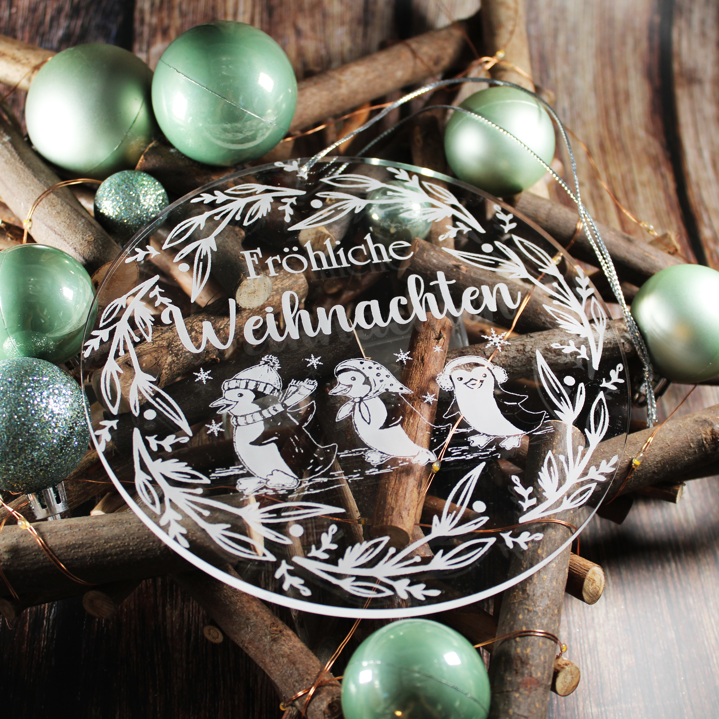 Fensteranhänger Fröhliche Weihnachten Pinguine Pinguin Weihnachten aus Acryl – Winterdeko Fensterdekoration