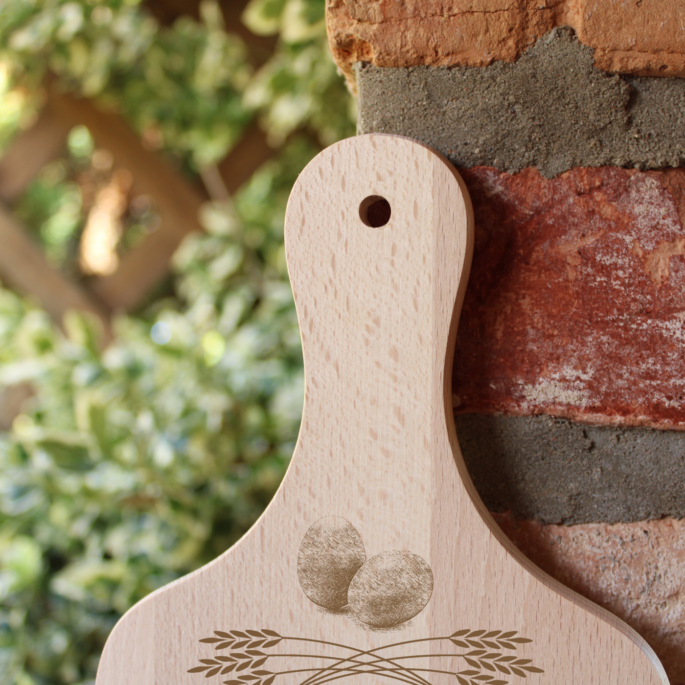 Gefertigt aus stabilem Naturholz, misst das Brett 33 cm in der Länge, 15 cm in der Breite und 1 cm in der Dicke – ideal als Frühstücksbrett, Schneidebrett oder kleine Servierplatte. Die präzise Lasergravur verleiht dem Brett eine hochwertige Optik und macht jedes Stück zu einem echten Unikat.