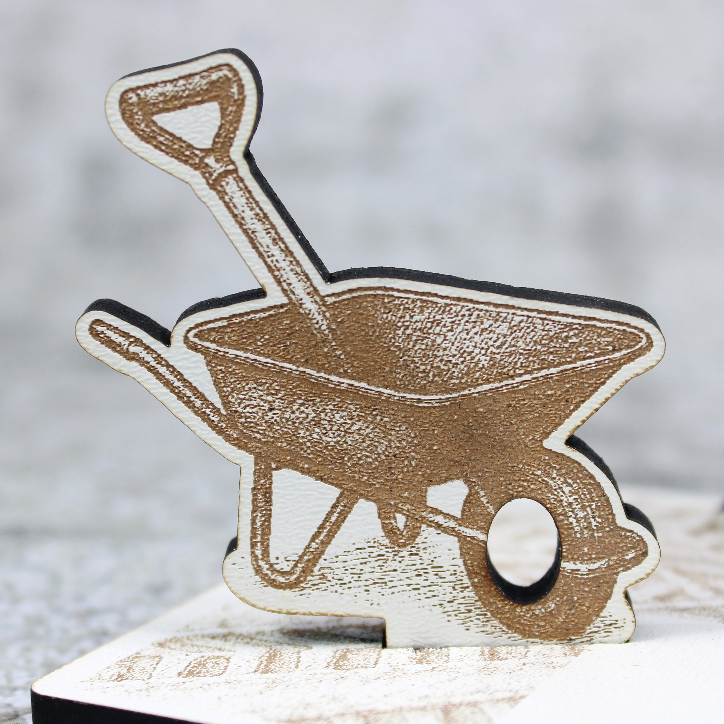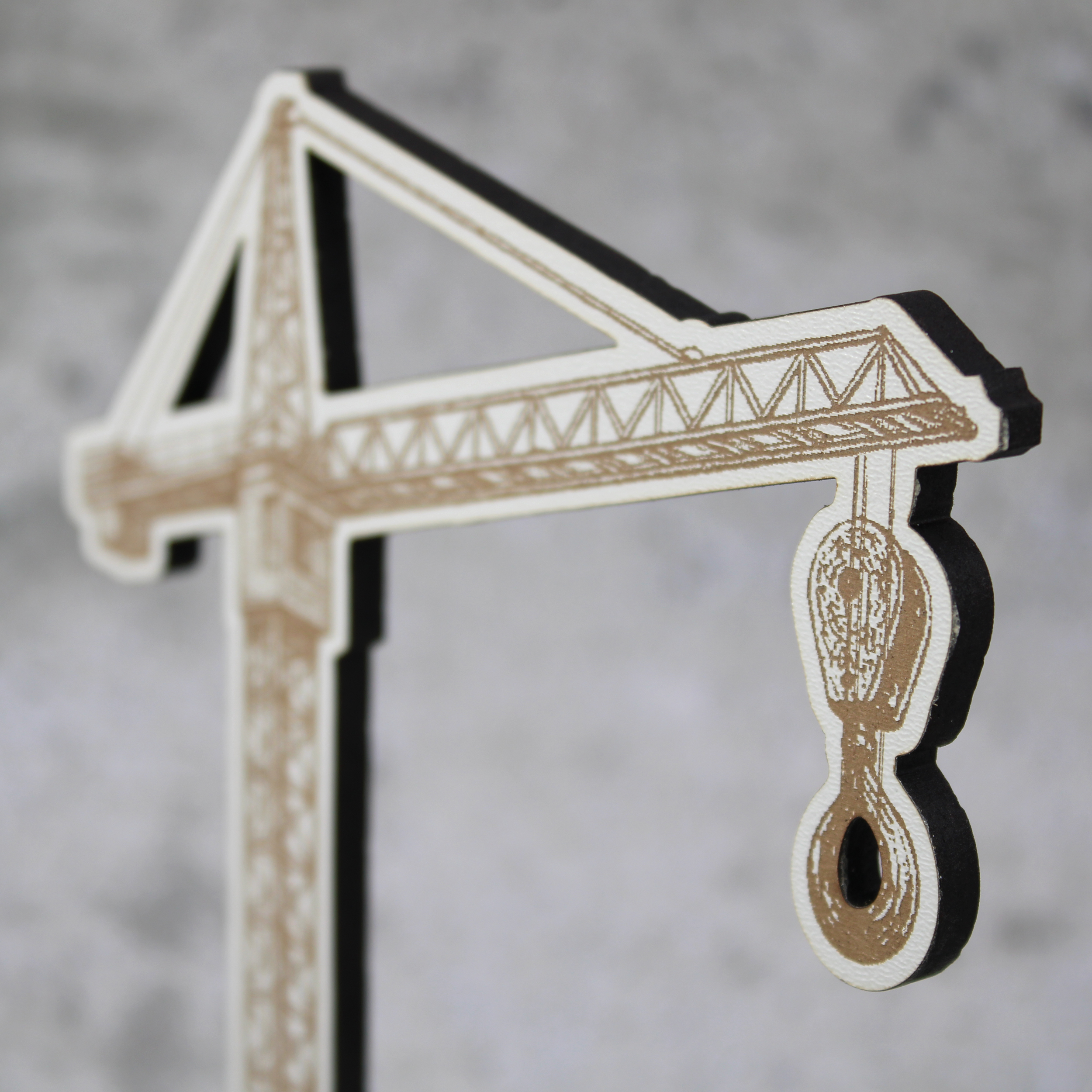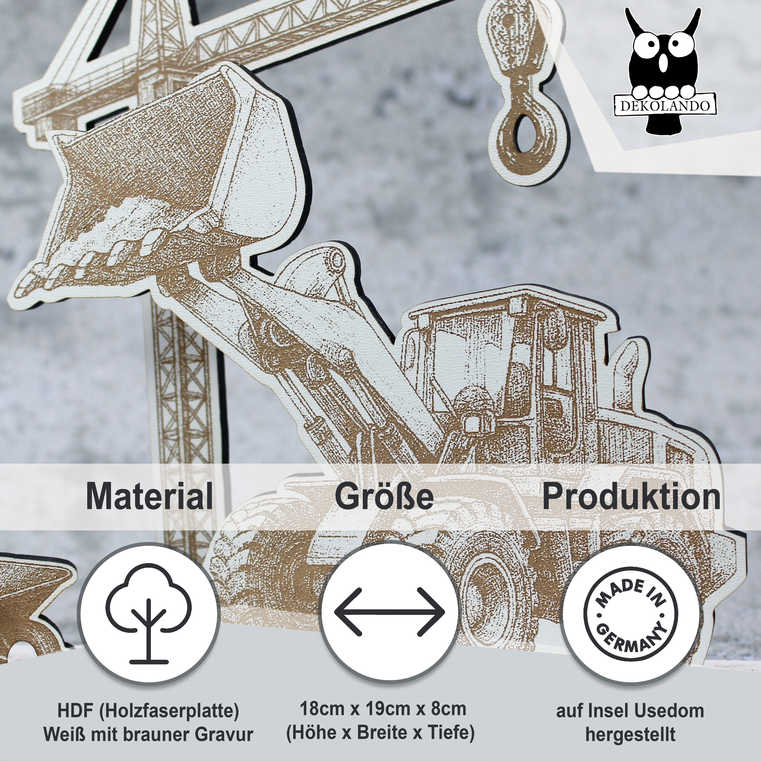Gefertigt aus weiß beschichtetem HDF mit brauner Lasergravur, überzeugt der Aufsteller durch feine Gravurdetails, klare Linien und eine hochwertige, kontrastreiche Optik. Die warmen Brauntöne harmonieren perfekt mit der weißen Oberfläche und unterstreichen den rustikalen Baustellen-Charme.