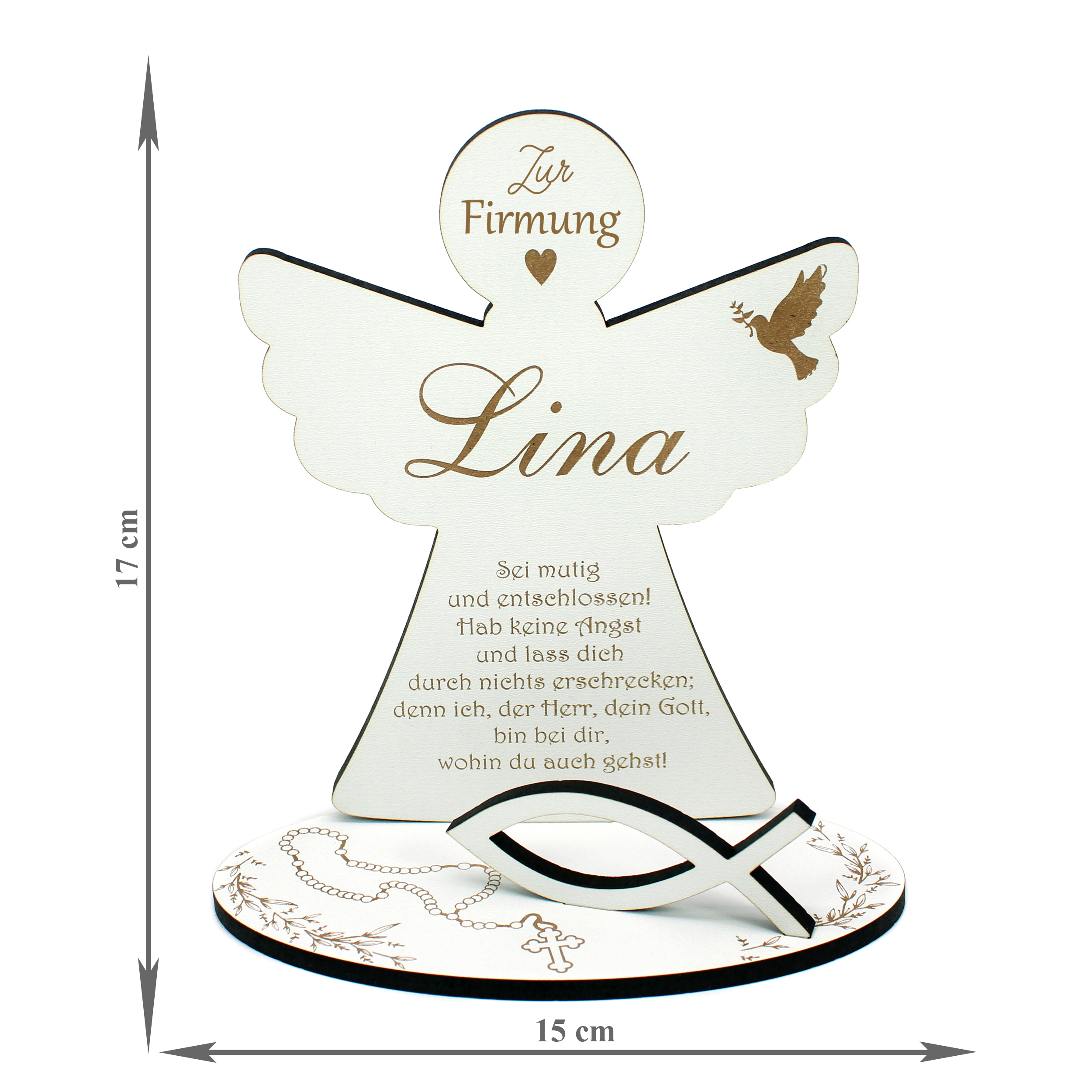 Geldgeschenk Firmung personalisiert mit Name - Engel mit Spruch & Christenfisch - Schild für Geld Gutschein 15x17 cm