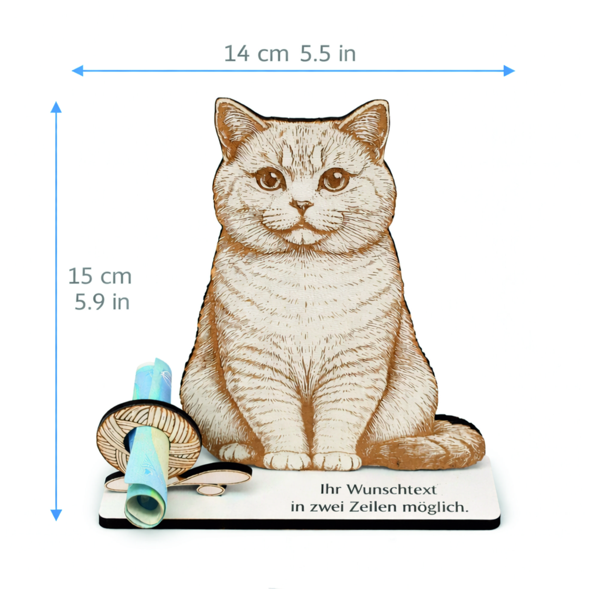 Produktinformationen "Geldgeschenk Katze Britisch Kurzhaar - personalisiert mit Wunschtext - Schild für Geld Gutschein - 14 x 15 cm"
