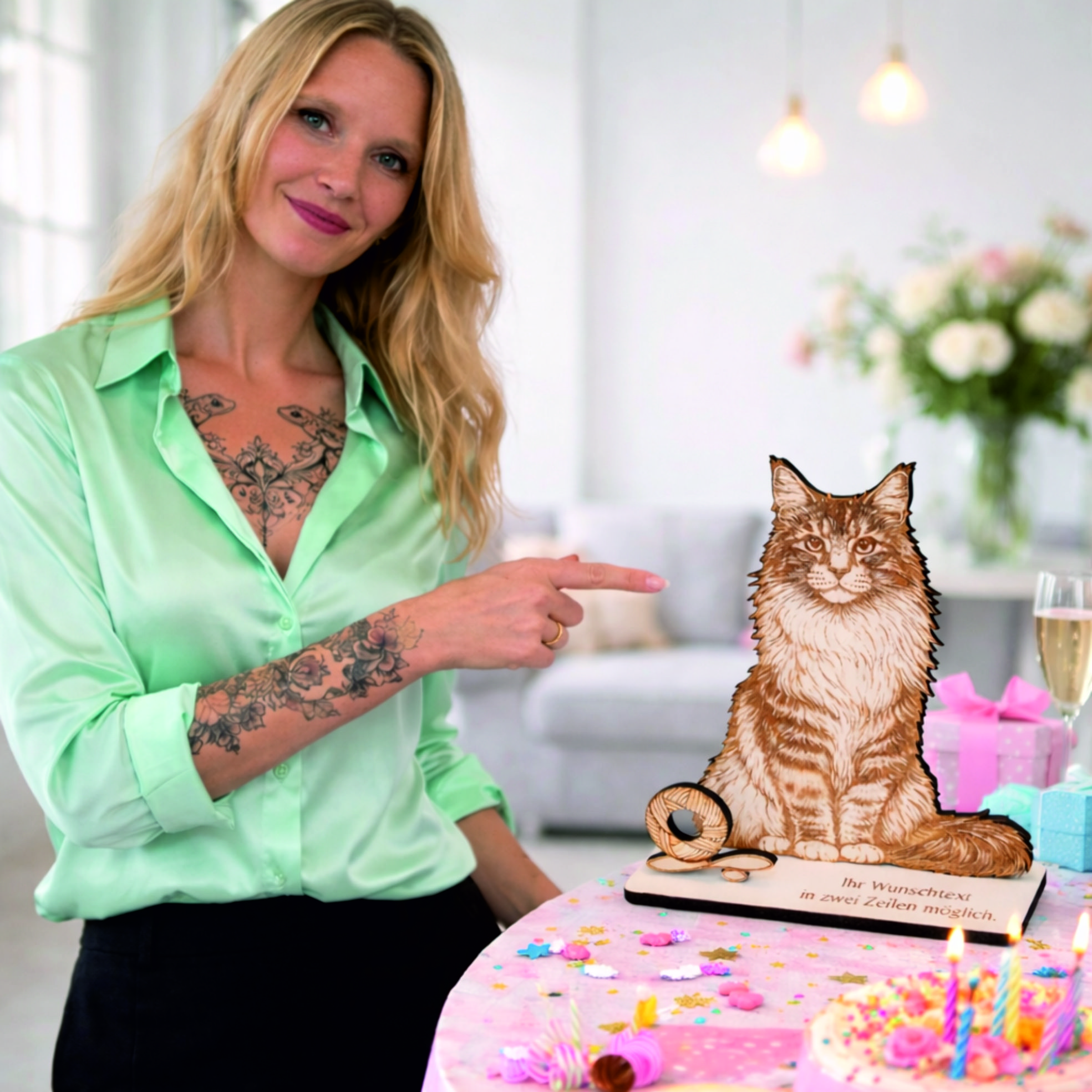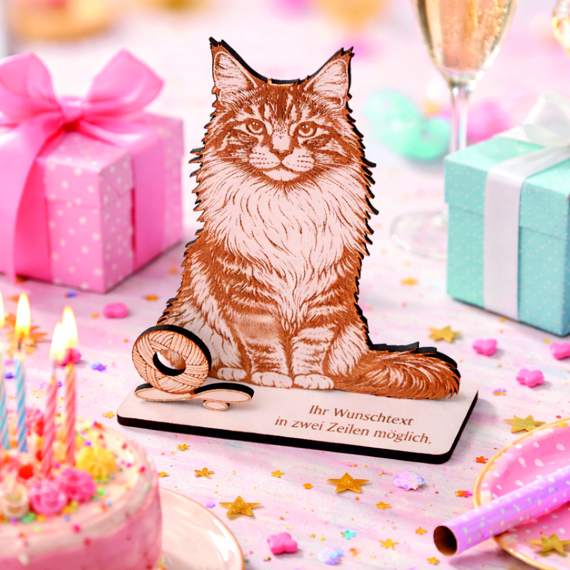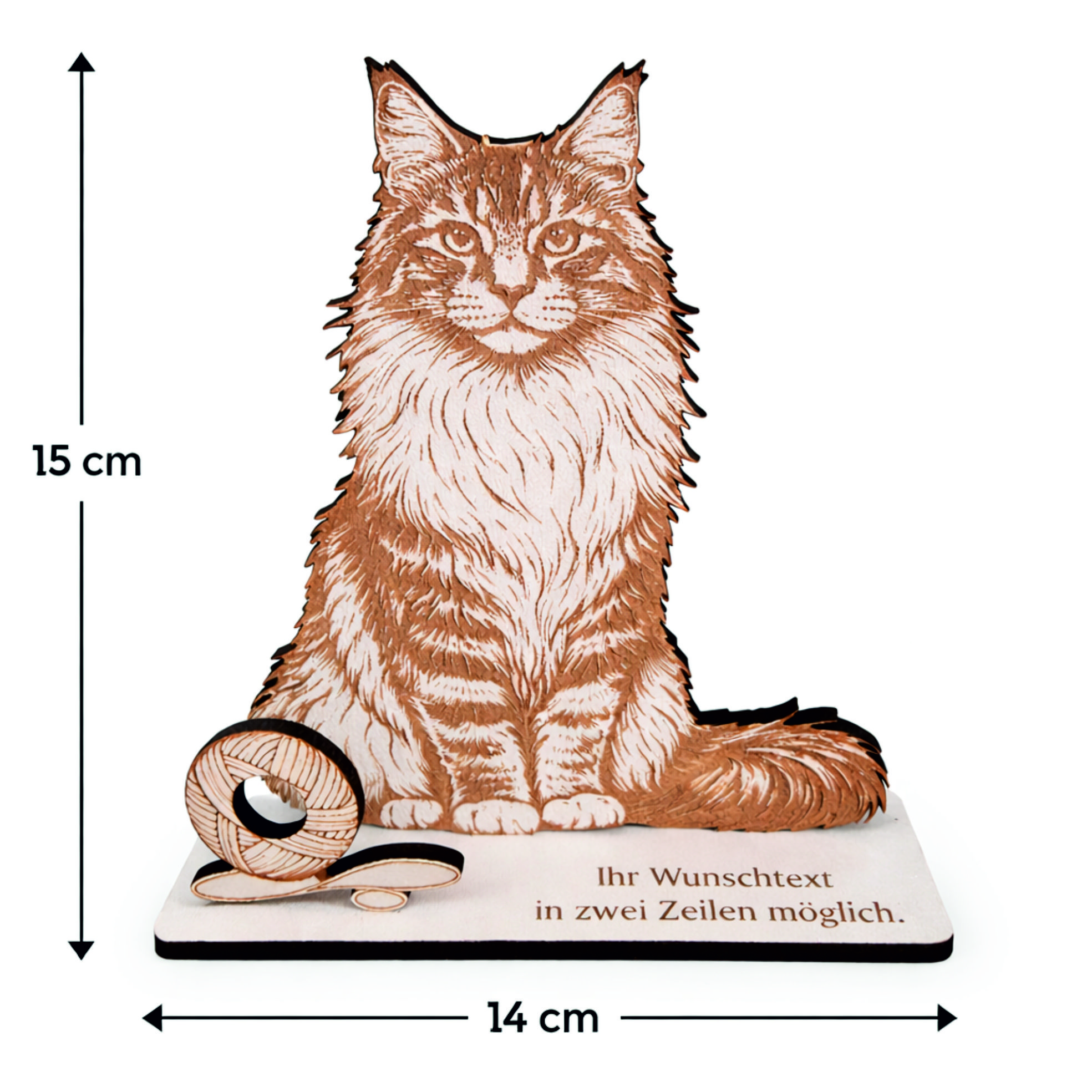 Geldgeschenk Maine-Coon-Katze - personalisiert mit Wunschtext - Schild für Geld Gutschein - 14 x 15 cm