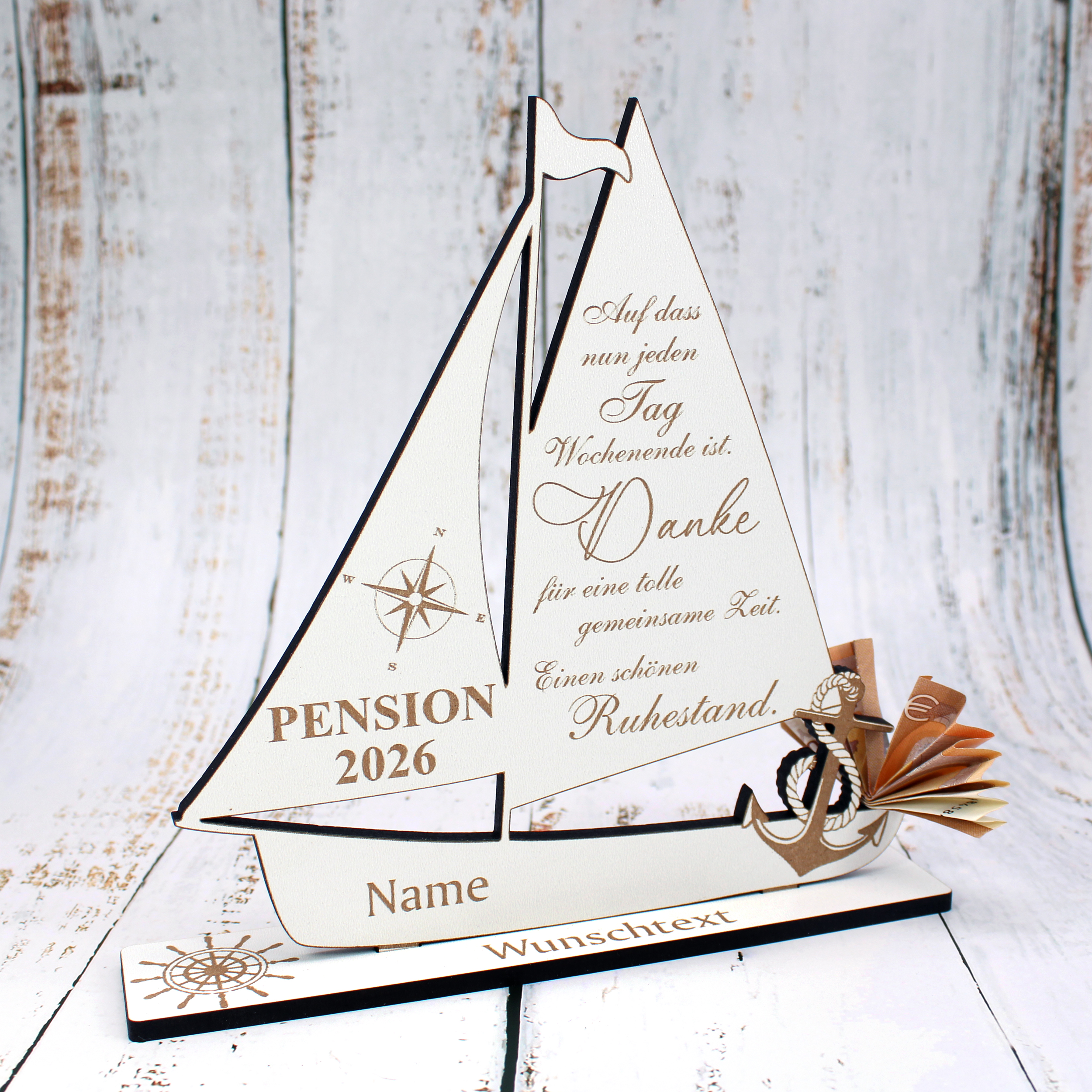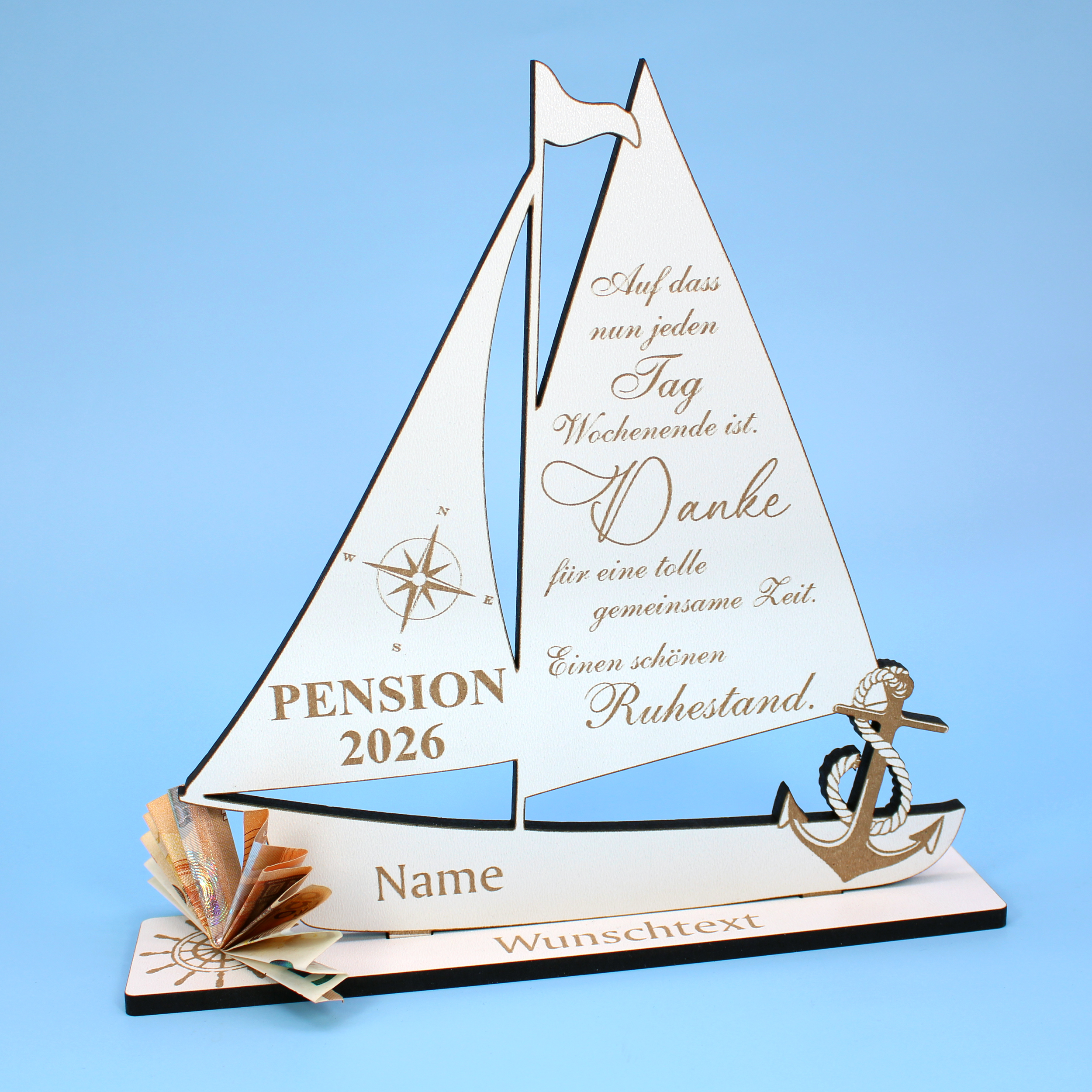 Originelles Geldgeschenk zur Pensionierung 2026: Dieses hochwertige Segelboot aus HDF ist ein schönes Geldgeschenk zur Pension, zum Ruhestand oder zur Verabschiedung in einen neuen Lebensabschnitt. Eine stilvolle Alternative zur klassischen Glückwunschkarte.