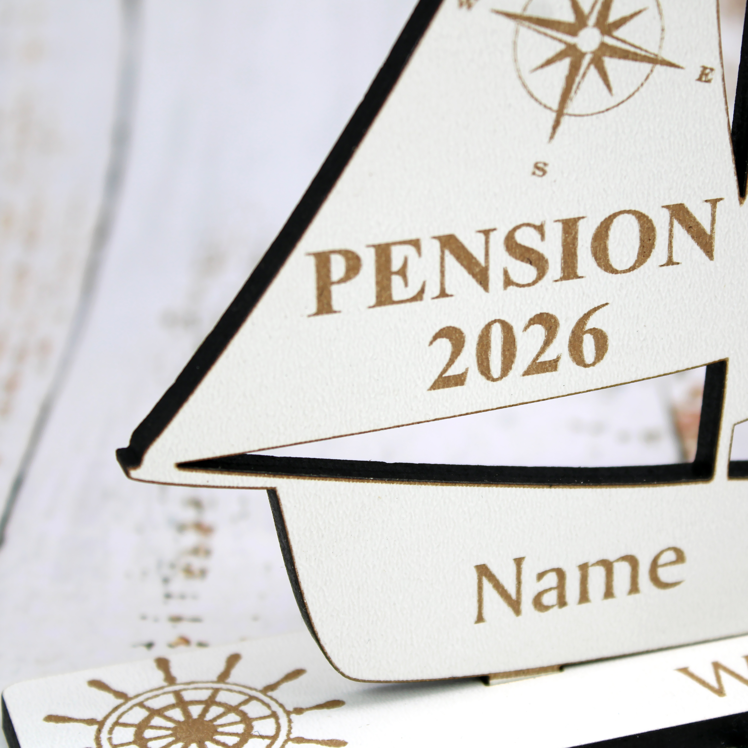 Das maritime Design symbolisiert Aufbruch, Freiheit und einen neuen Lebensabschnitt. Gefertigt aus hochwertigem HDF und präzise graviert entsteht ein langlebiges Erinnerungsstück, das auch nach der Feier einen schönen Platz findet.