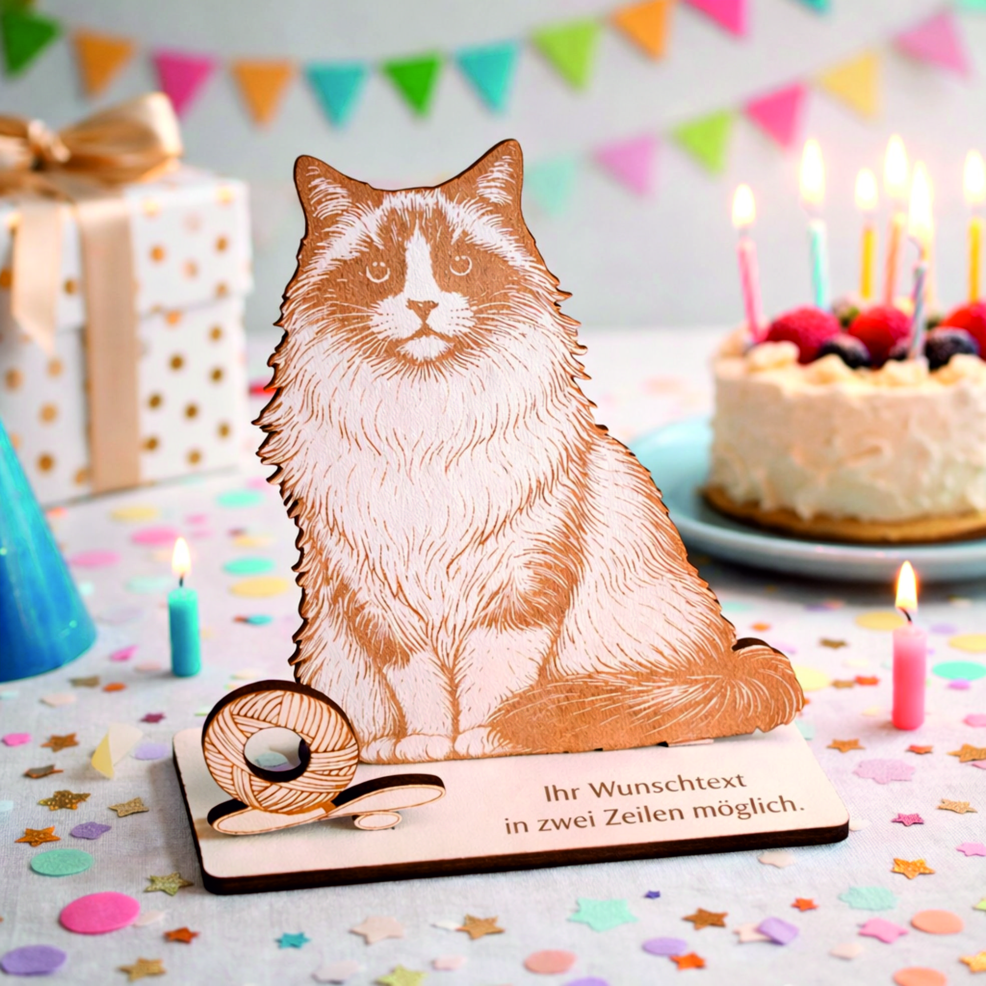 Geldgeschenk Ragdoll - personalisiert mit Wunschtext - Schild für Geld Gutschein - 14 x 15 cm
