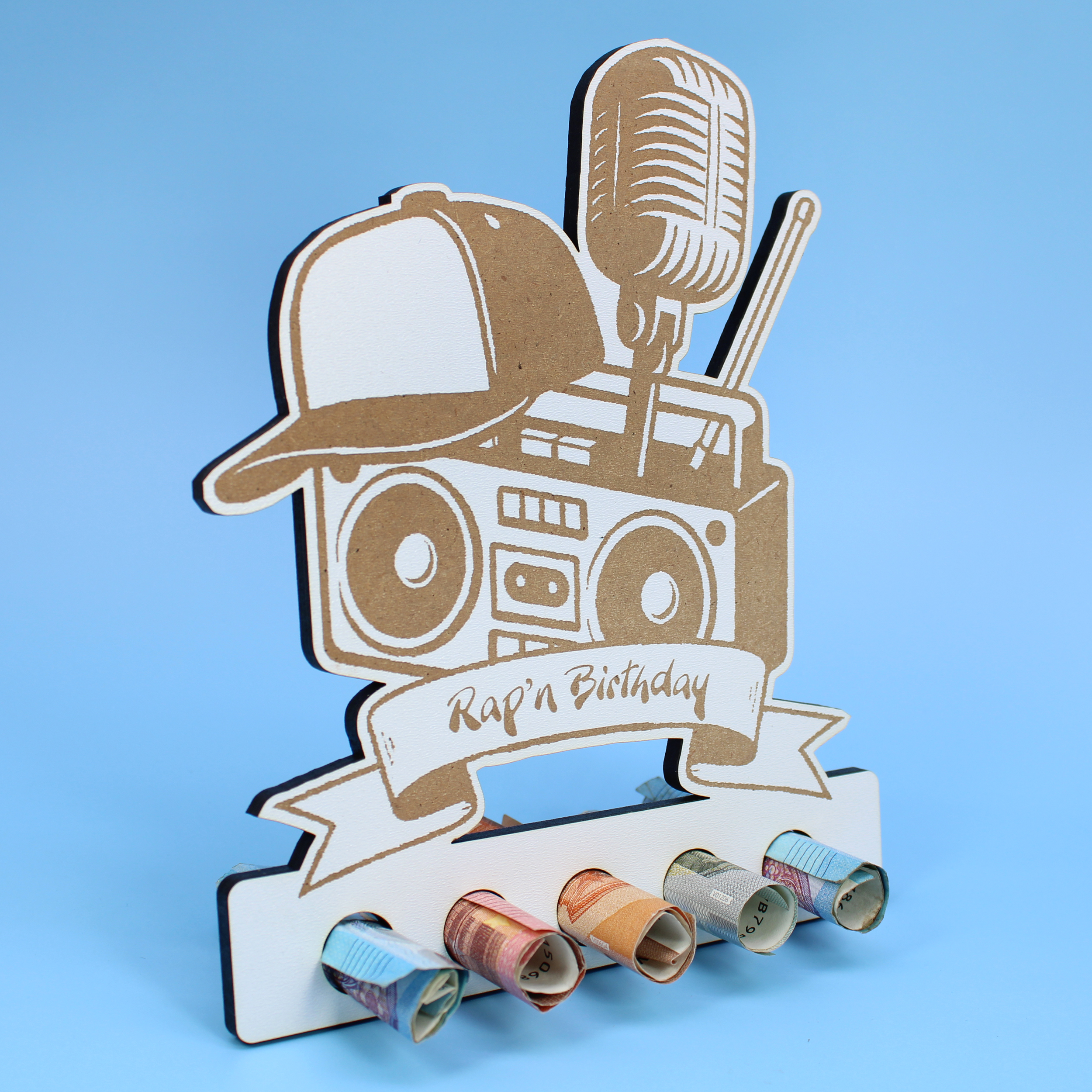 Geldgeschenk Rap Geburtstag - 15cm x 18cm - Rap’n Birthday - Mikrofon, Cap & Ghettoblaster