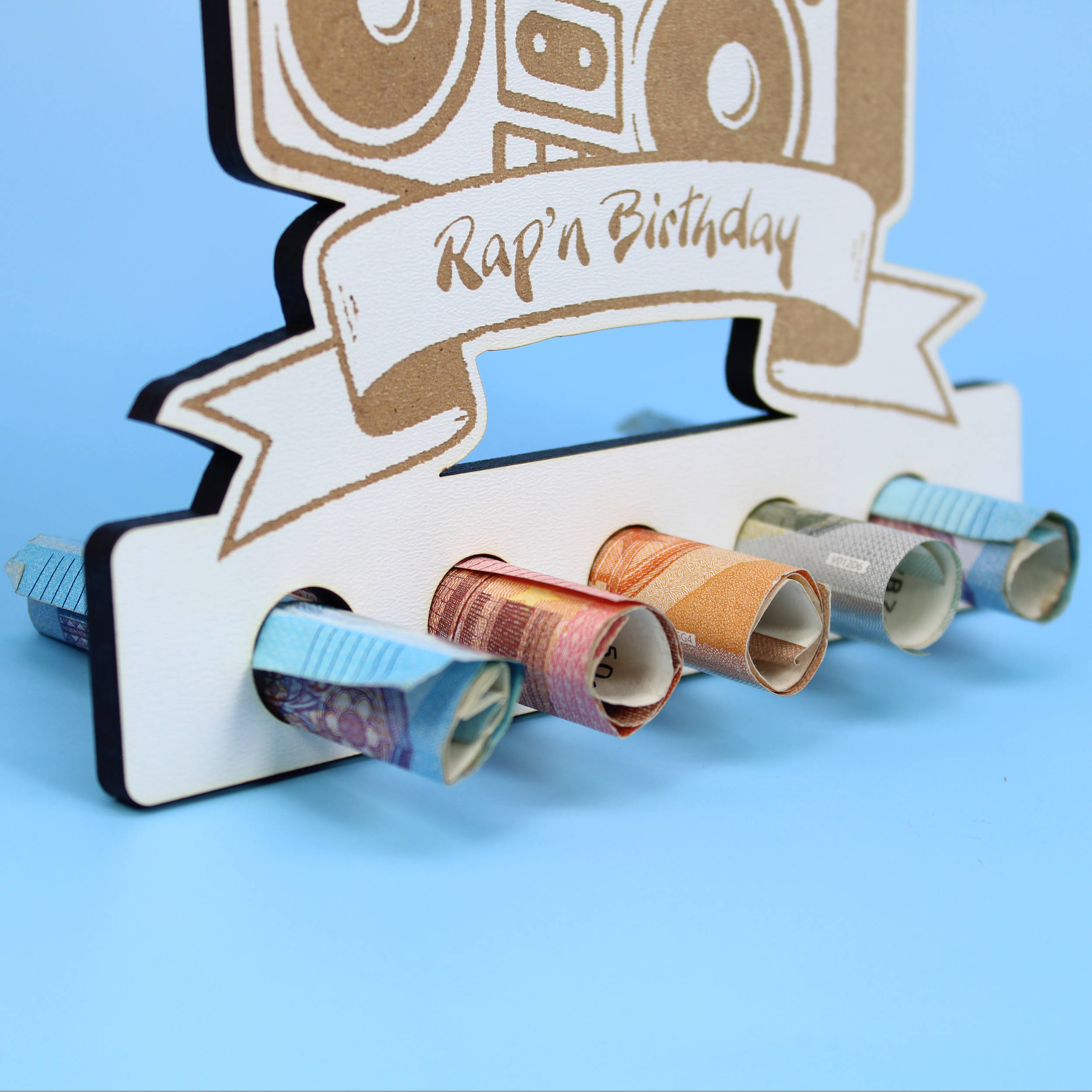 Das Geldgeschenk Rap’n Birthday ist das ideale Präsent für echte Hip-Hop Liebhaber. Egal ob Rapper, Beatboxer, Producer oder Fan – dieses stylische Geldgeschenk vereint urbane Kultur und musikalischen Spirit in einem coolen Design.
