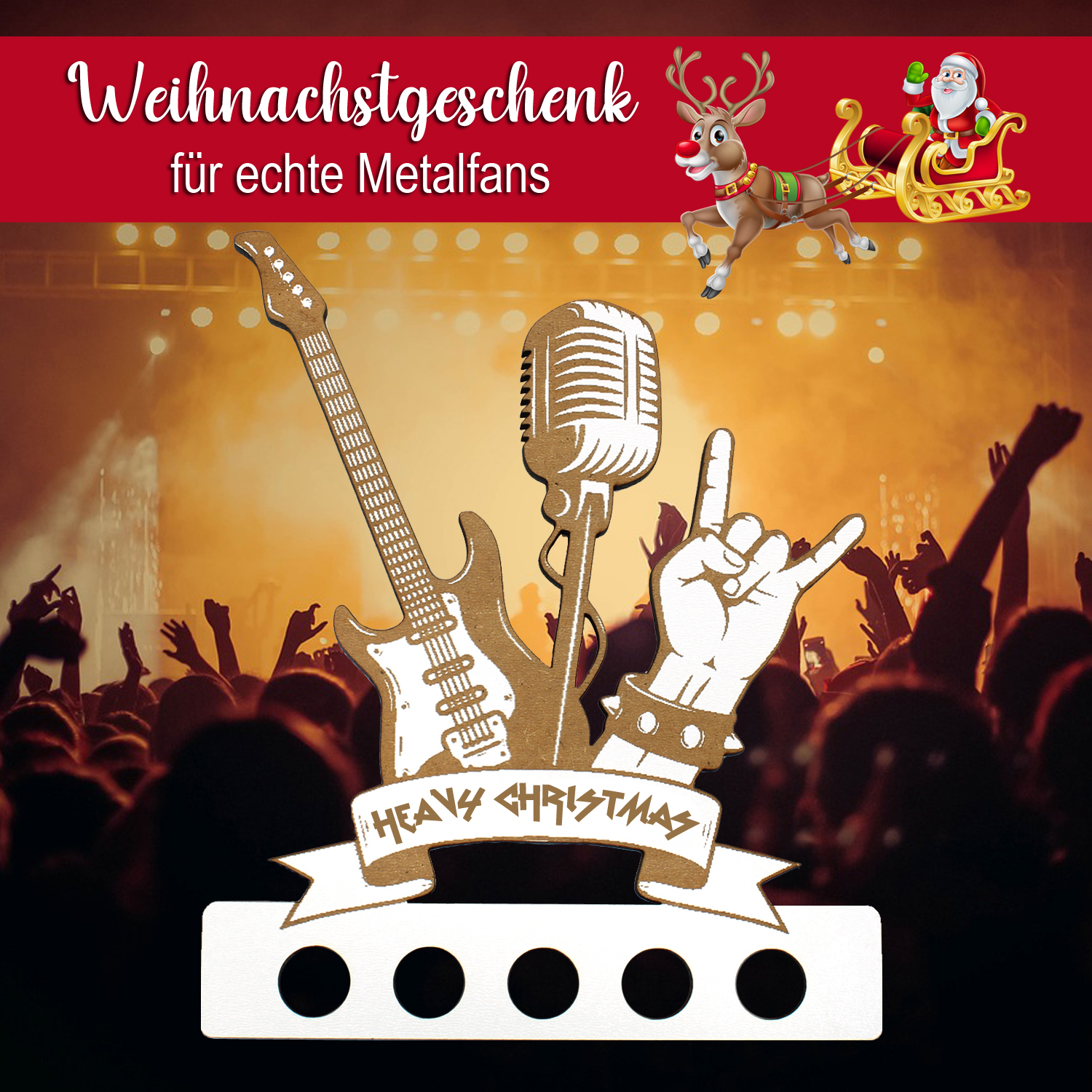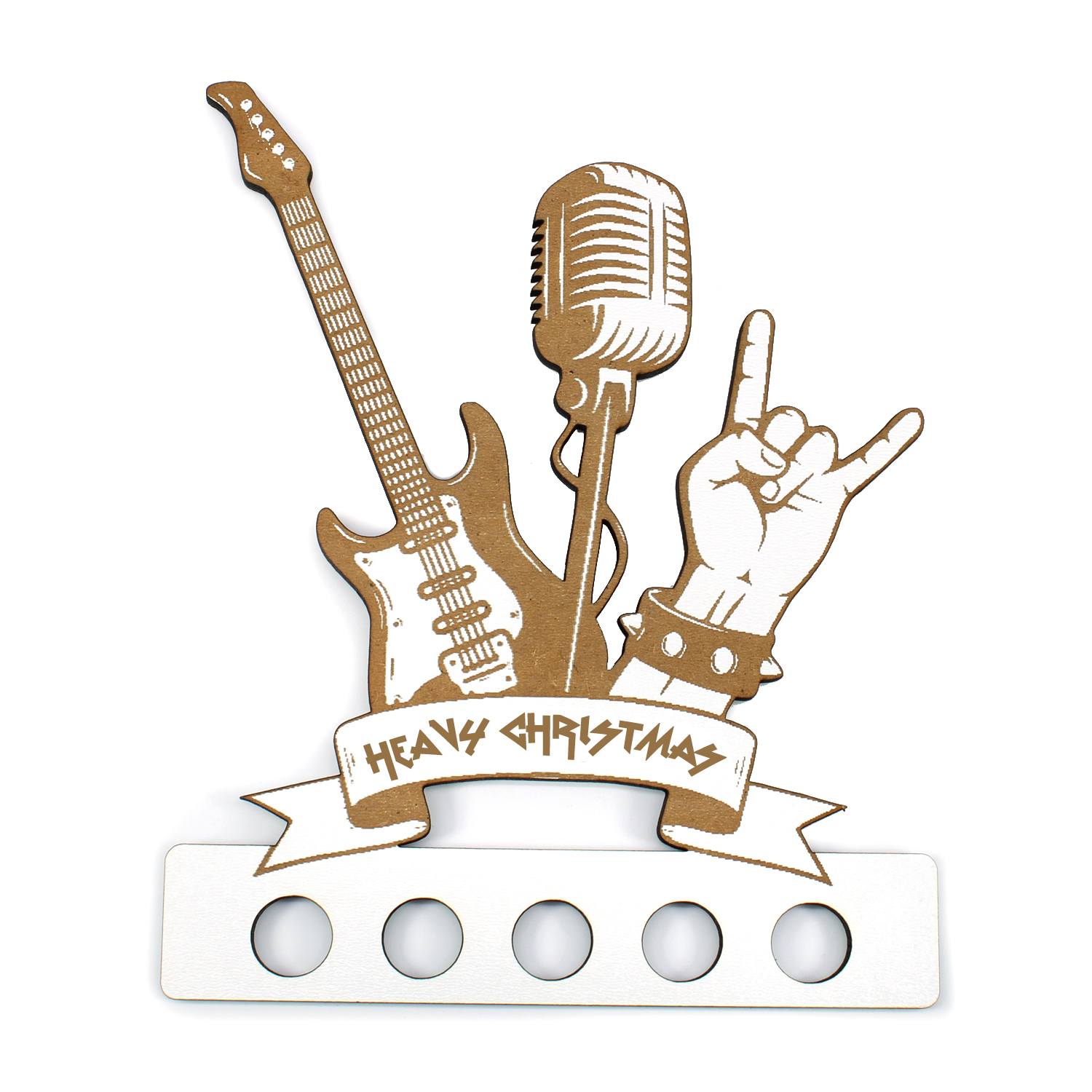 - Individuelles Design mit Gravur „Heavy Christmas“: Rockiger Look mit liebevoll gestalteten Rock’n’Roll-Elementen und stilvoller „Heavy Christmas“-Gravur. Ein echter Hingucker für alle, die Weihnachten mit Musik im Blut feiern!