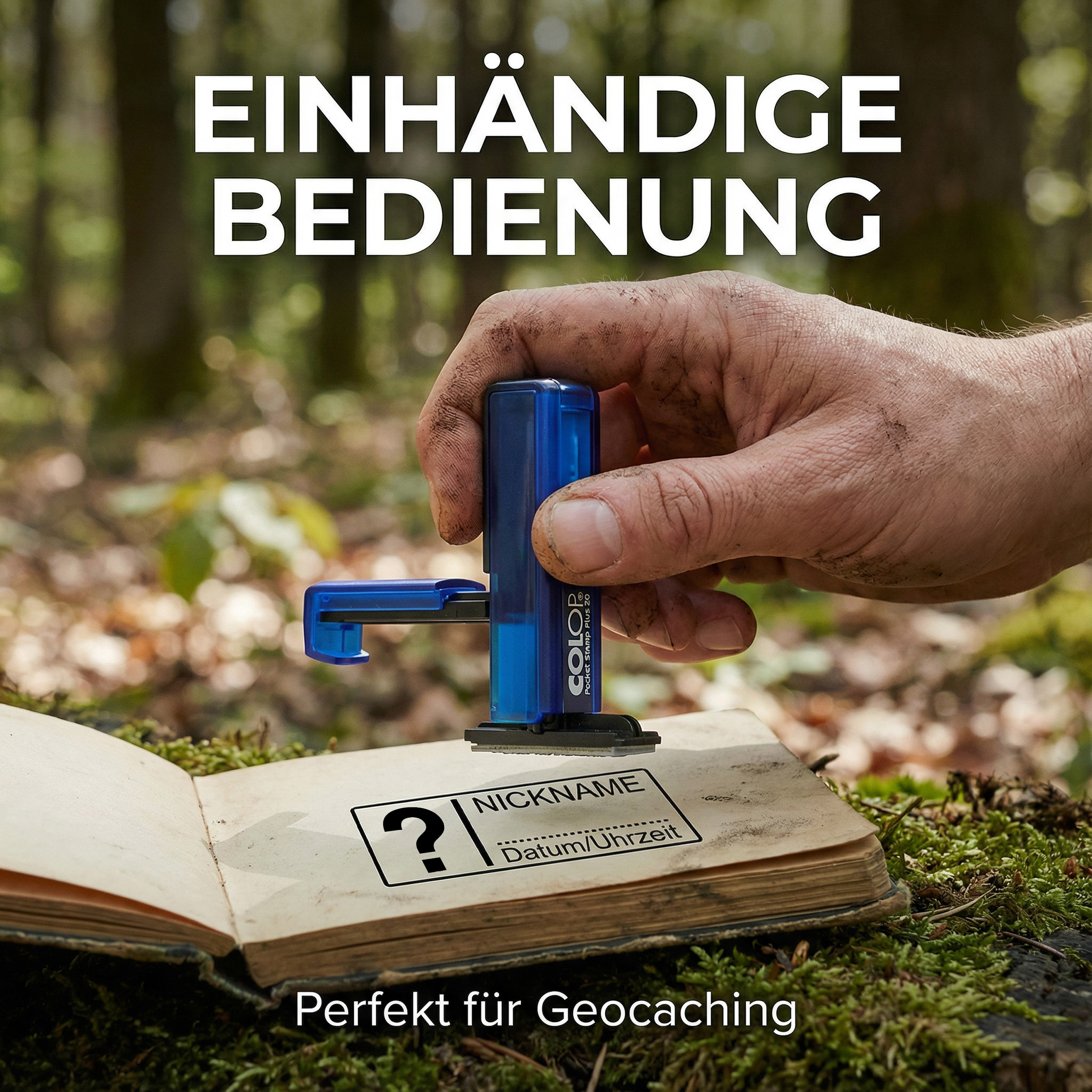Der Colop Pocket Stamp Plus 20 ist ein besonders praktischer Taschenstempel: Durch das Einhand-Mechanismus lässt er sich schnell und komfortabel öffnen und schließen. Dank Clip ist er immer griffbereit an Hose, Rucksack oder Gurt befestigt – ideal als kompakte Geocaching Ausrüstung für jedes Abenteuer.