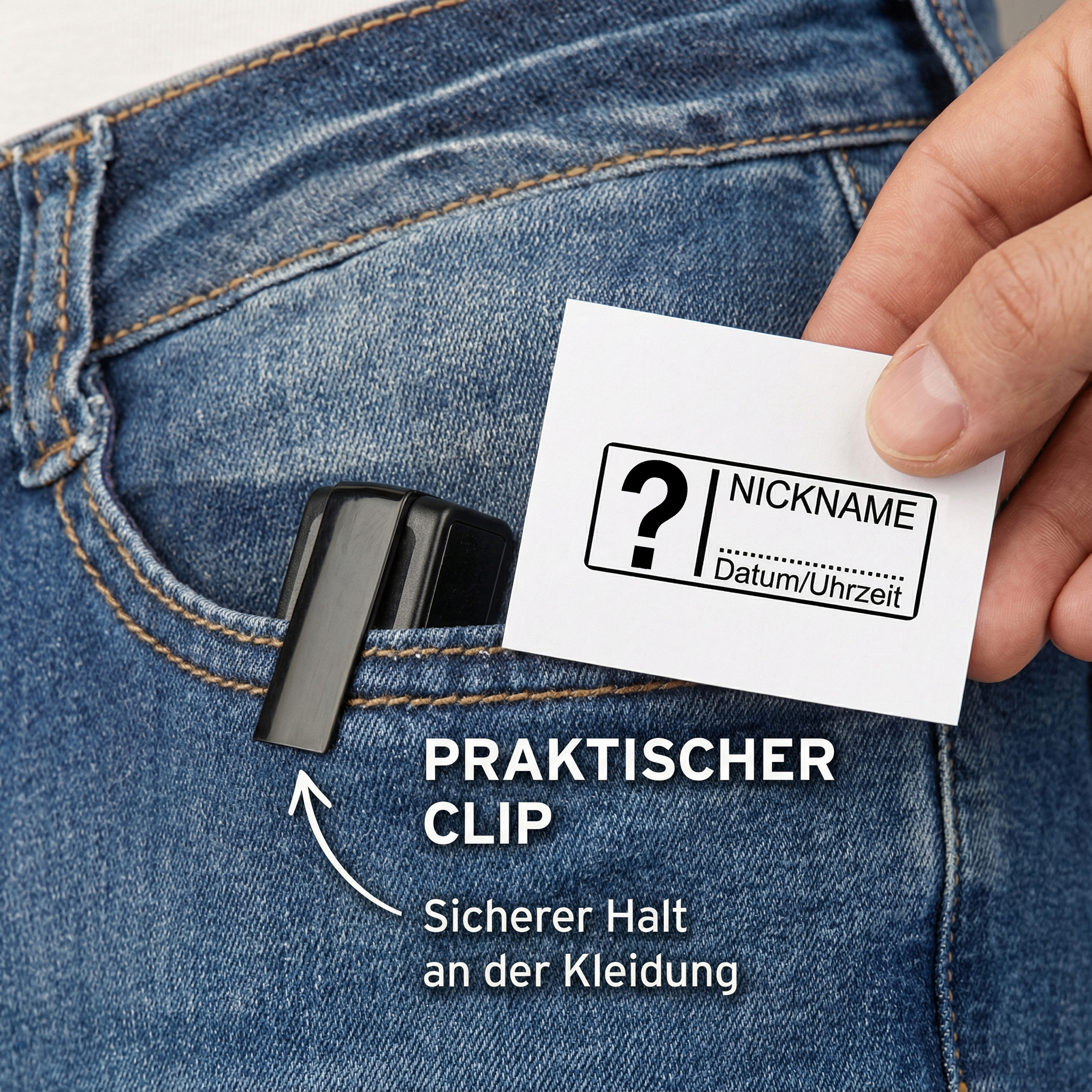 - Einhändige Bedienung und Clip – kompakter Taschenstempel, immer griffbereit am Rucksack oder Gürtel, ideal für unterwegs beim Geocaching; schnell selbst stempeln im Versteck, ohne eine Kappe zu verlieren.
