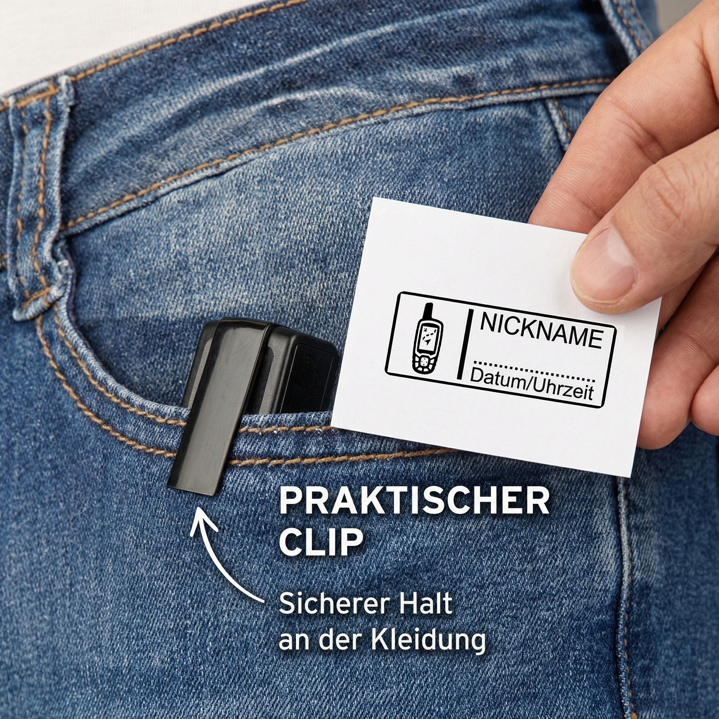 - Einhändige Bedienung und Clip – kompakter Taschenstempel, immer griffbereit am Rucksack oder Gürtel, ideal für unterwegs beim Geocaching; schnell selbst stempeln im Versteck, ohne eine Kappe zu verlieren.