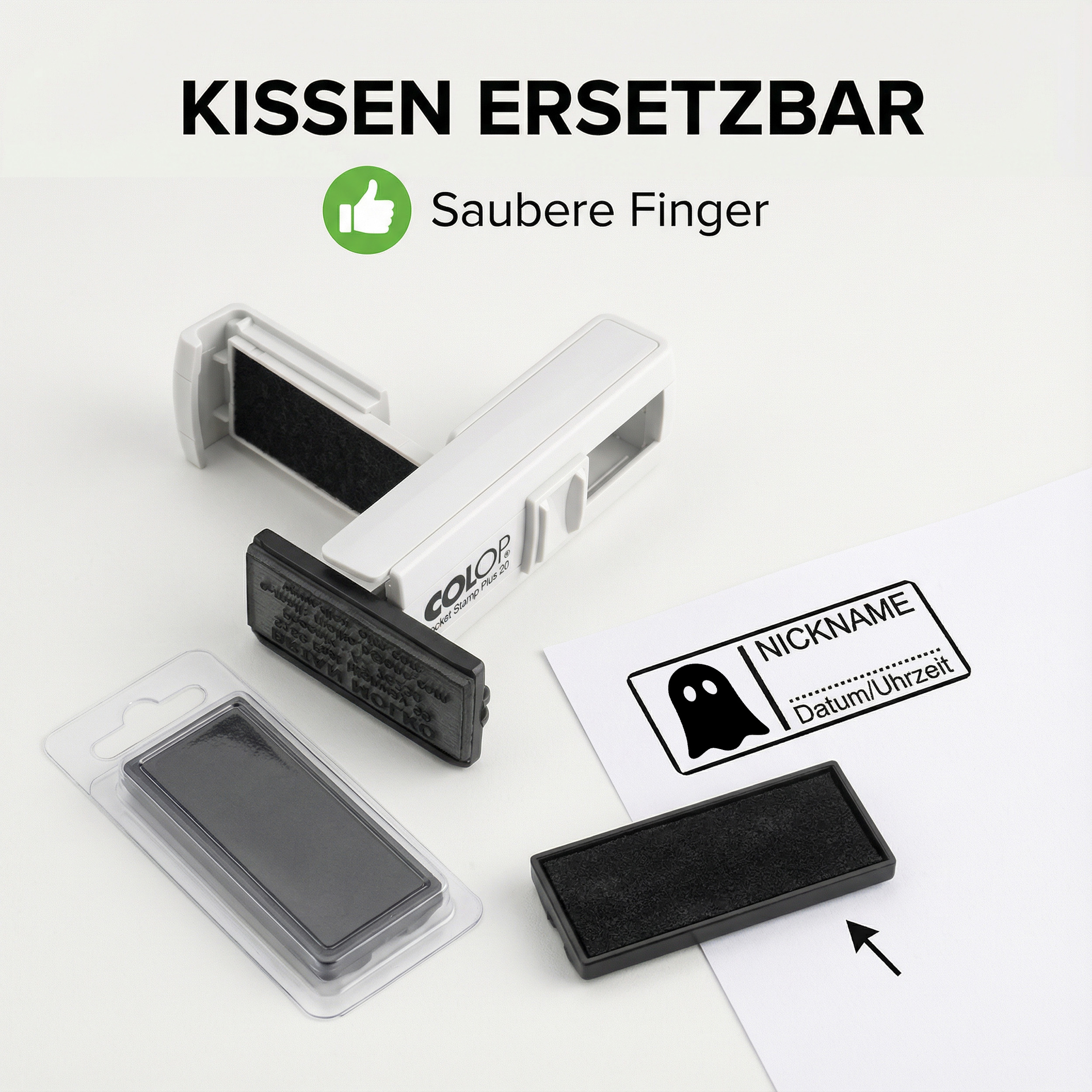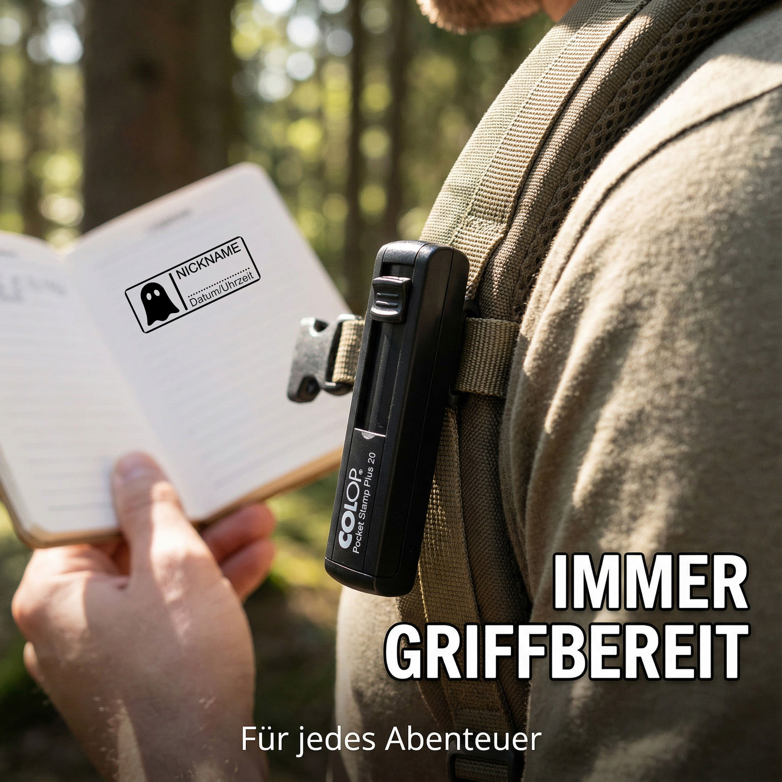 Der Geocachingstempel Geist 35x13 mm ist dein persönlicher Begleiter für jedes Geocaching-Abenteuer. Der personalisierte Taschenstempel im kompakten Colop Pocket Stamp Plus 20 Gehäuse liefert einen klaren rechteckigen Abdruck, Nickname und Platz für Datum/Uhrzeit im Logbuch. So wird jeder Fund in deinem Geocaching Logbuch eindeutig markiert und du erkennst deine Einträge auf einen Blick.