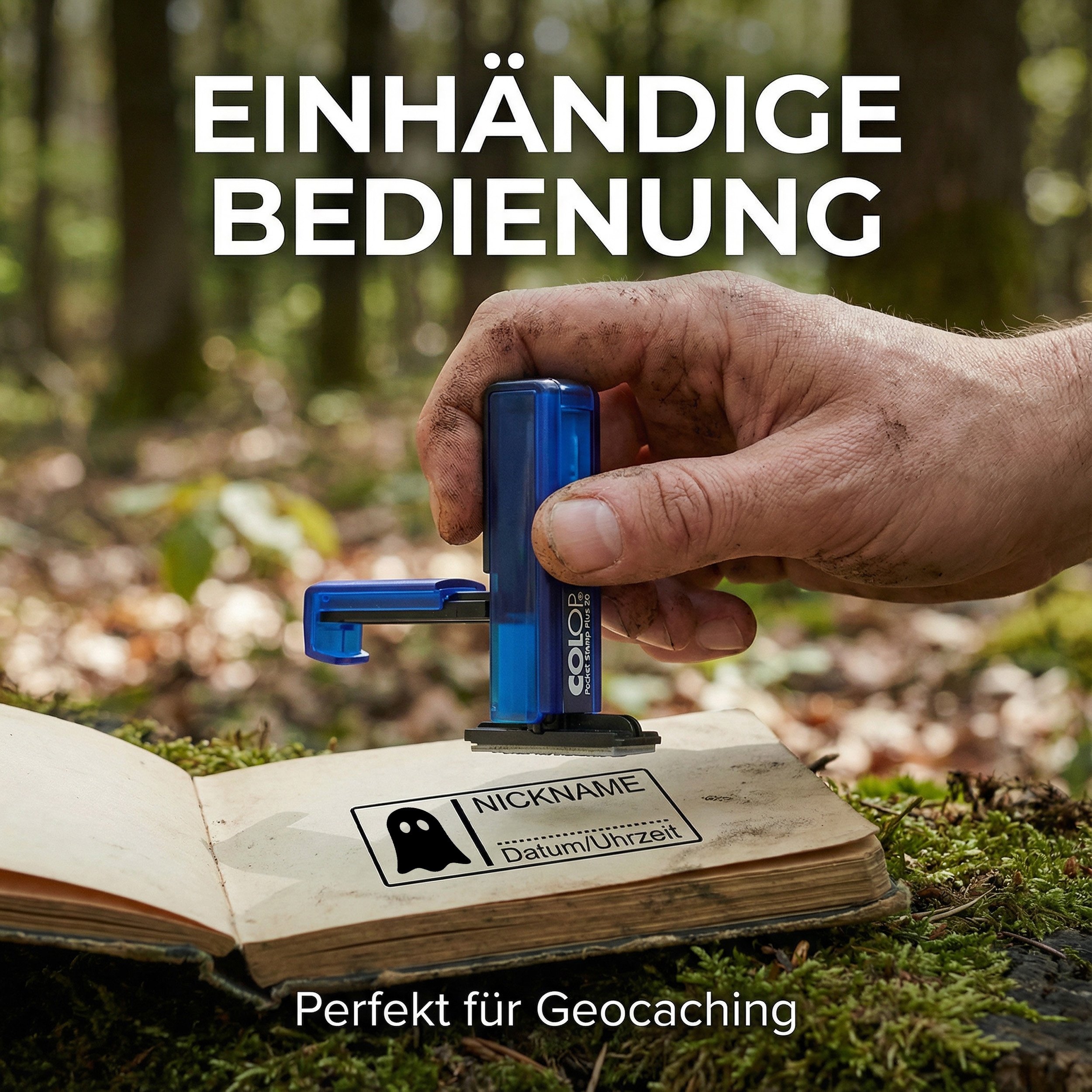 - Geocachingstempel Geist 35x13 mm – personalisierter Taschenstempel von Colop Pocket Stamp Plus 20, ideal für Geocaching Ausrüstung, Logbuch, Geocache, Versteck und als Namensstempel mit Wunschtext.
