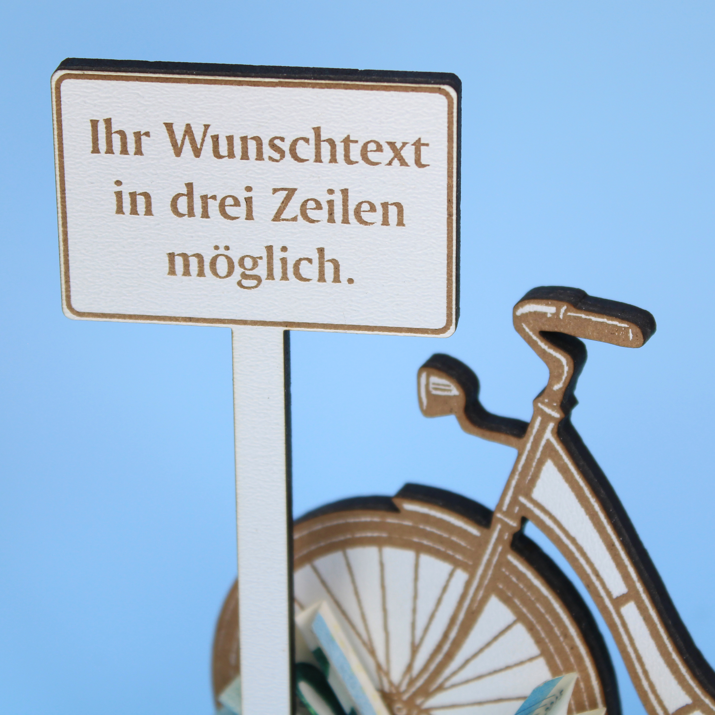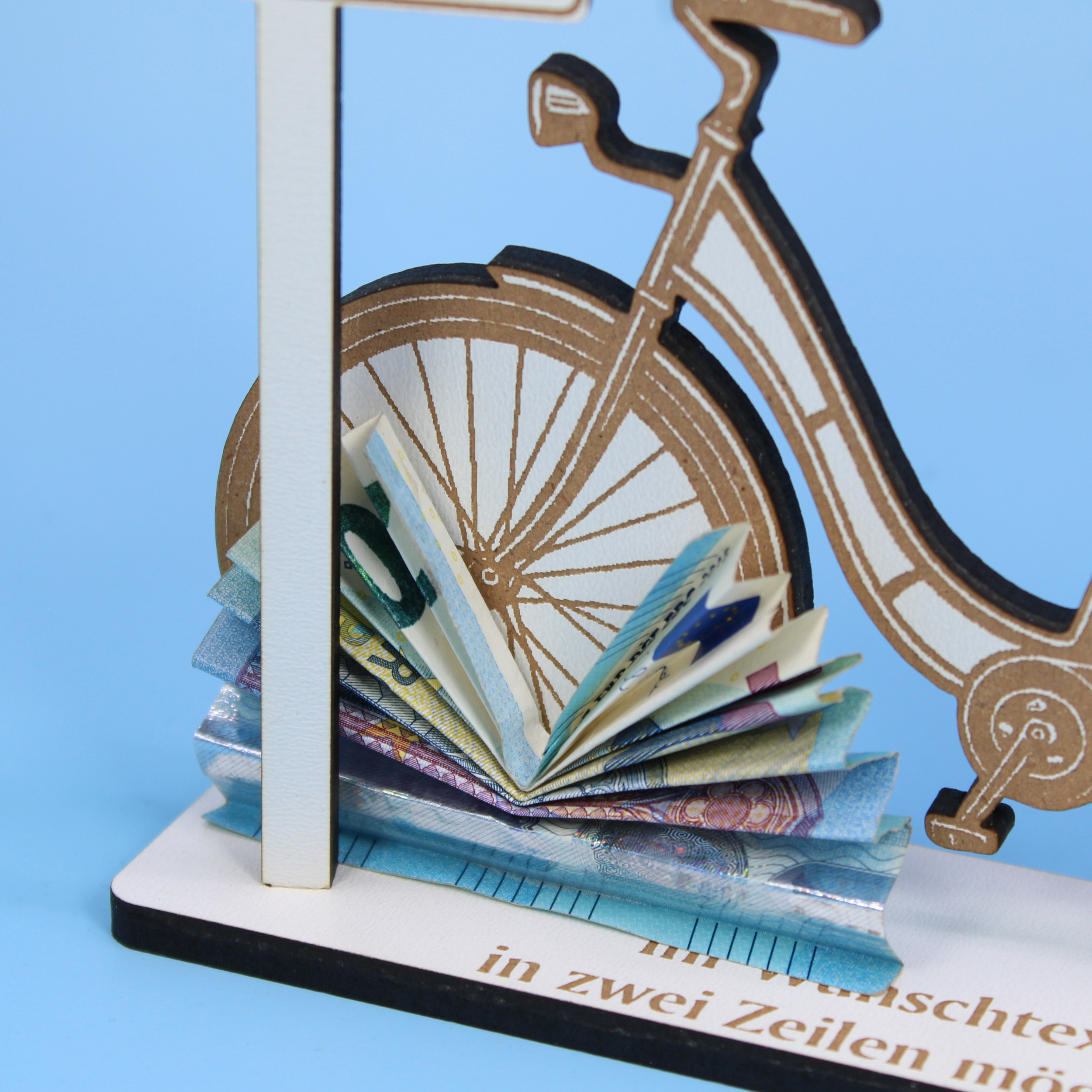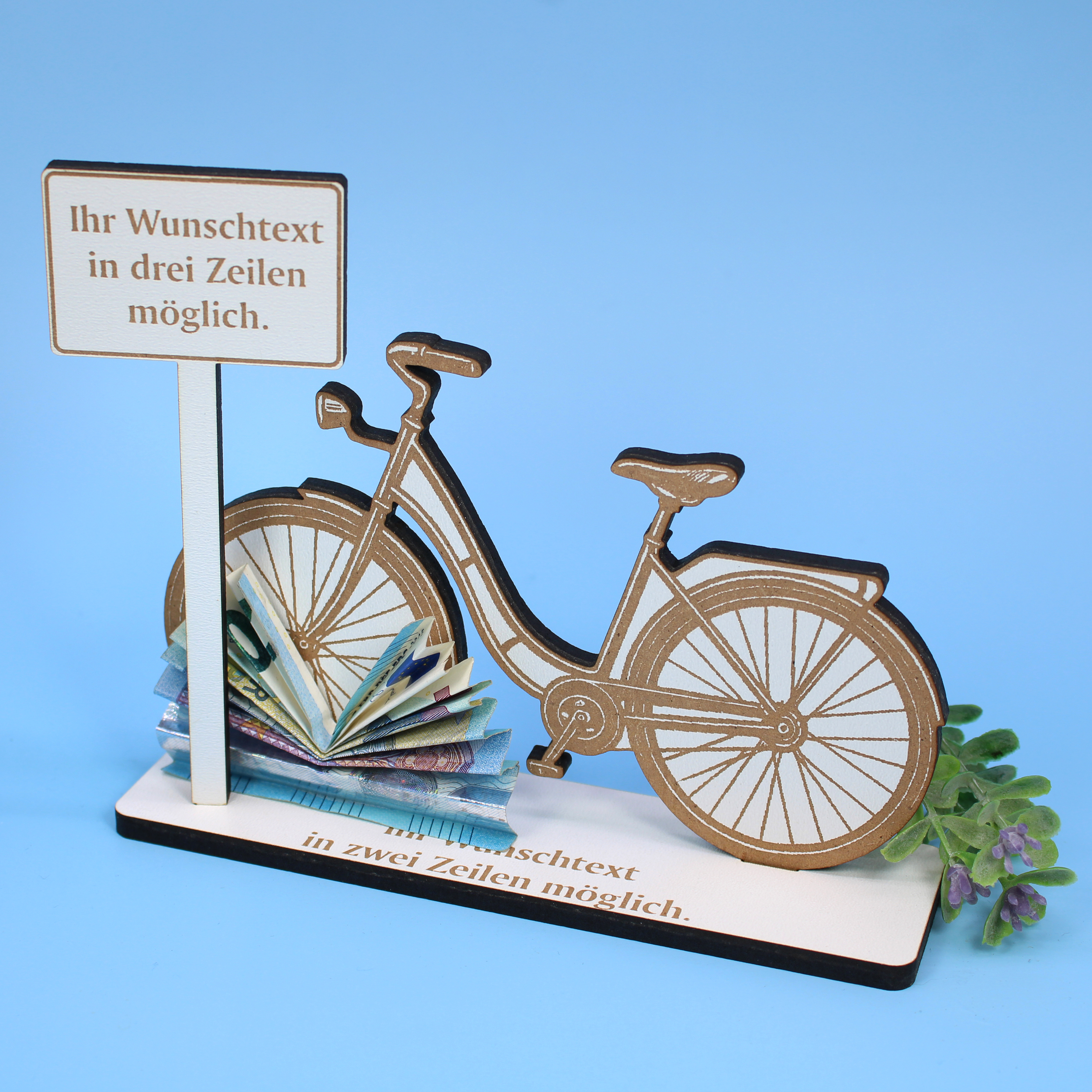 Geschenk Geldgeschenk Damenrad Stadtfahrrad Damen Fahrrad – personalisierbar – 15cm x 13cm