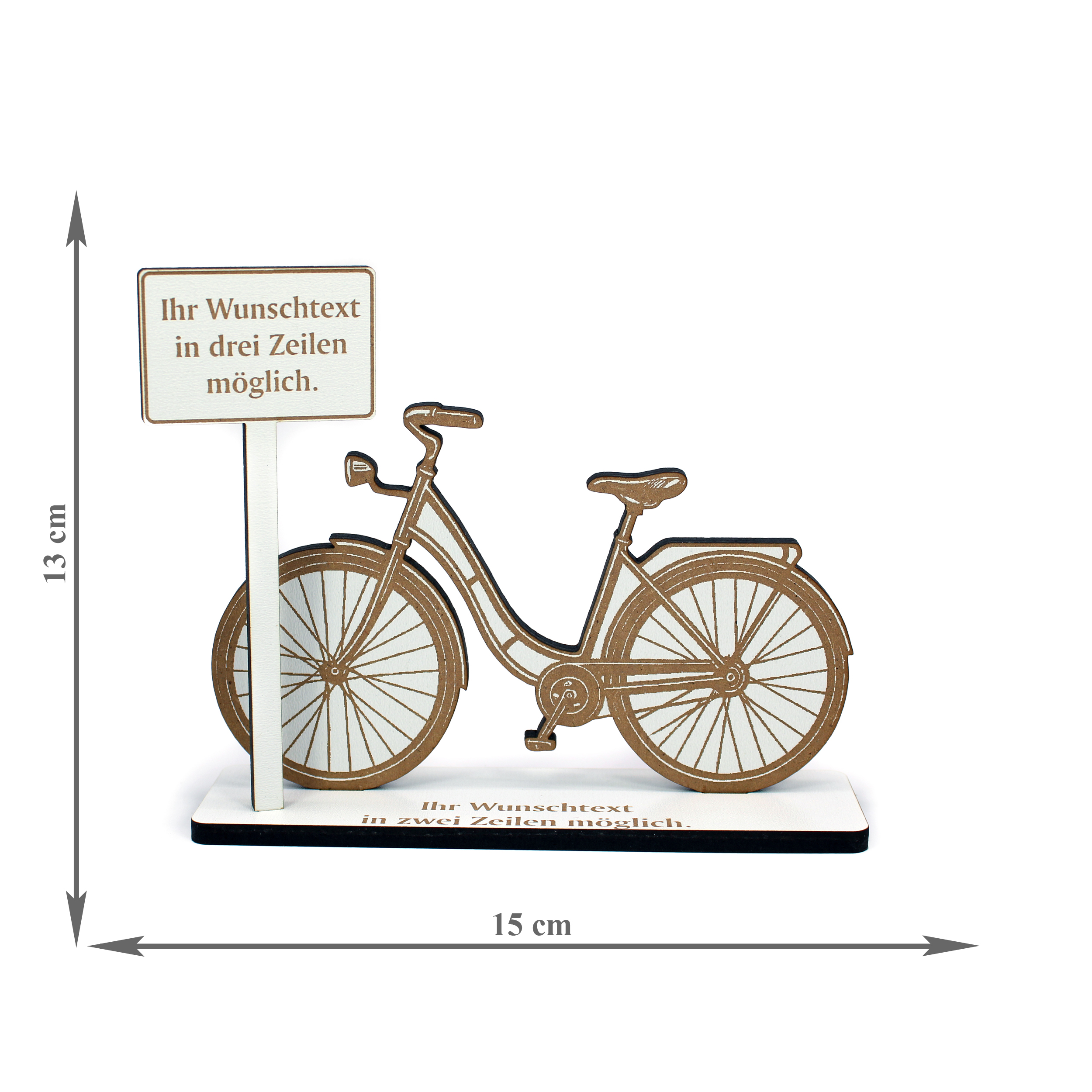 - Damenrad Stadtfahrrad Damen Fahrrad Aufsteller – Moderner Dekoaufsteller aus weißem HDF mit feiner Gravur eines Fahrrads und personalisierbarem Schild & Sockel – ideales Geschenk für Radfahrer. Mit seinen Maßen von 15 cm Länge und 13 cm Höhe ist der Fahrradaufsteller ein dekoratives Element, das in jedem Raum einen Akzent setzt.