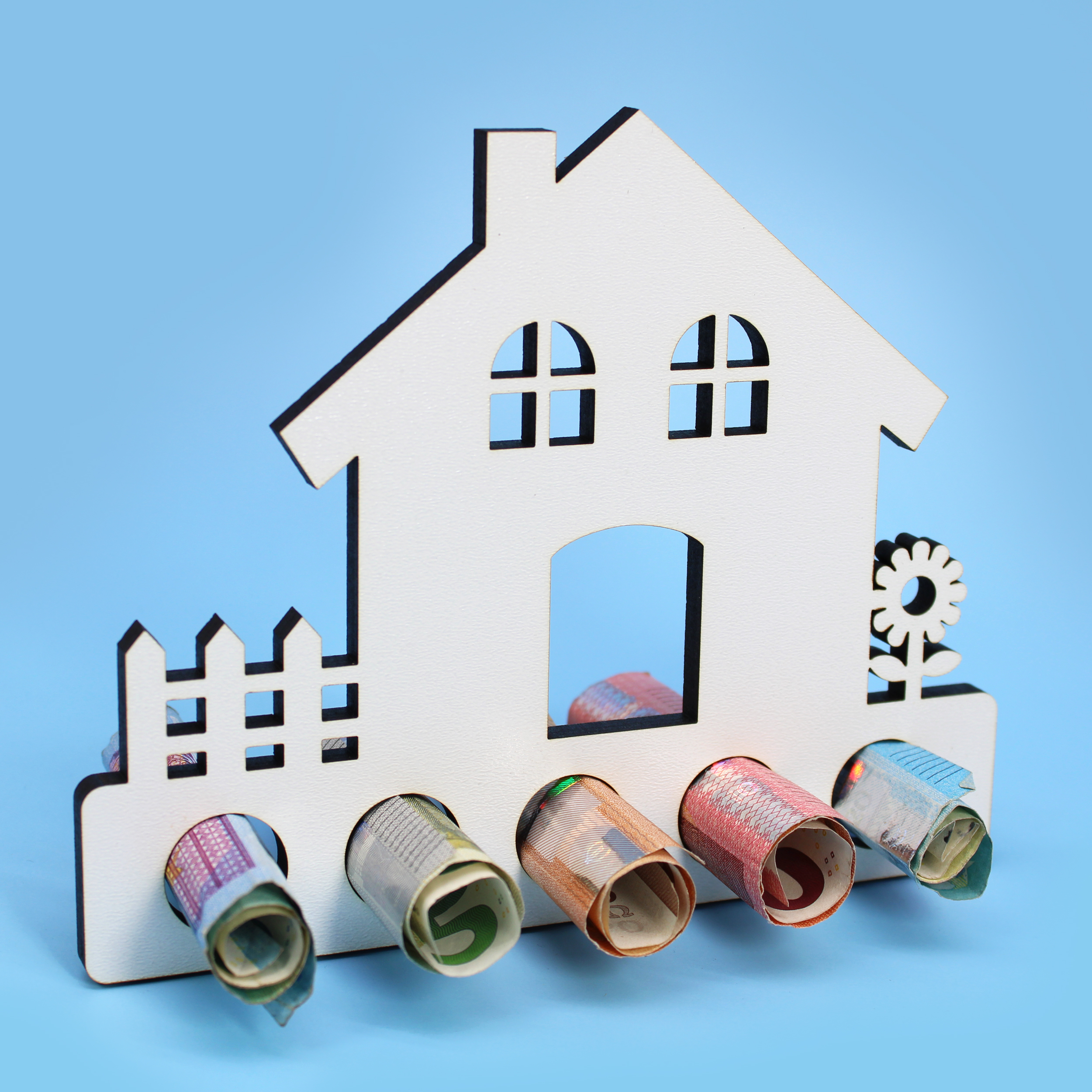 Produktinformationen "Geschenk zum Einzug – Haus mit 5 Geldschein-Haltern - Geldgeschenk Einzugsgeschenke Einzug Wohnung"
