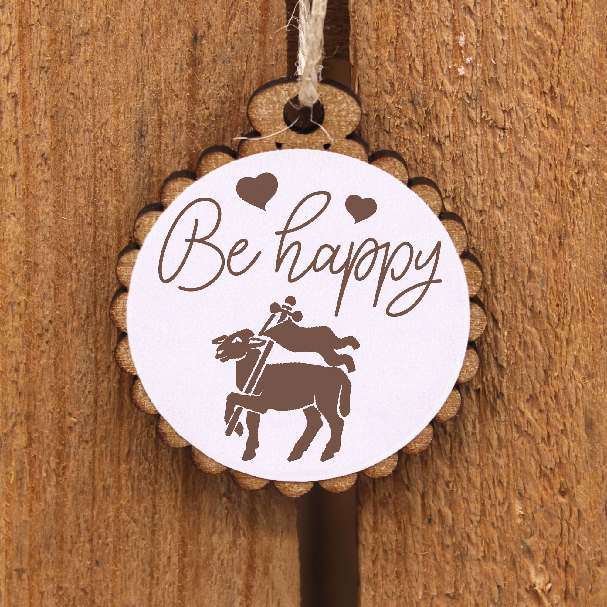 Geschenkanhänger - Be Happy Fleischer - Holz Ø-5cm - mit Juteband