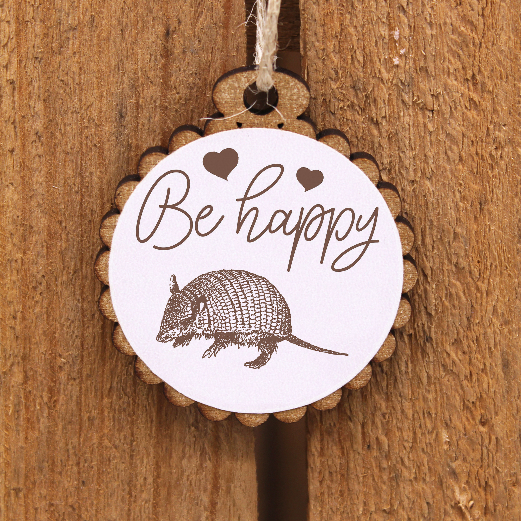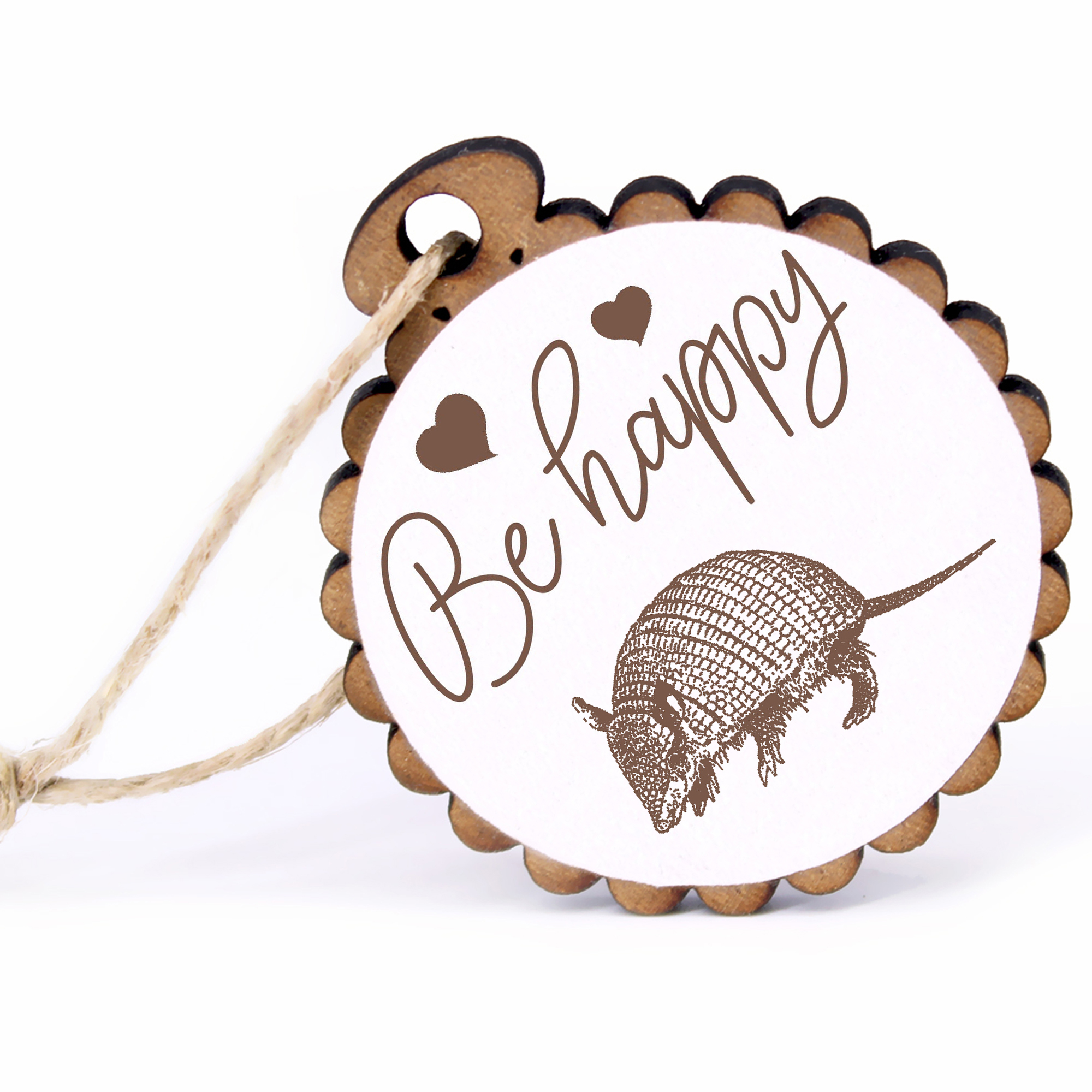 Geschenkanhänger - Be Happy Gürteltier Armadillo - Holz Ø-5cm - mit Juteband