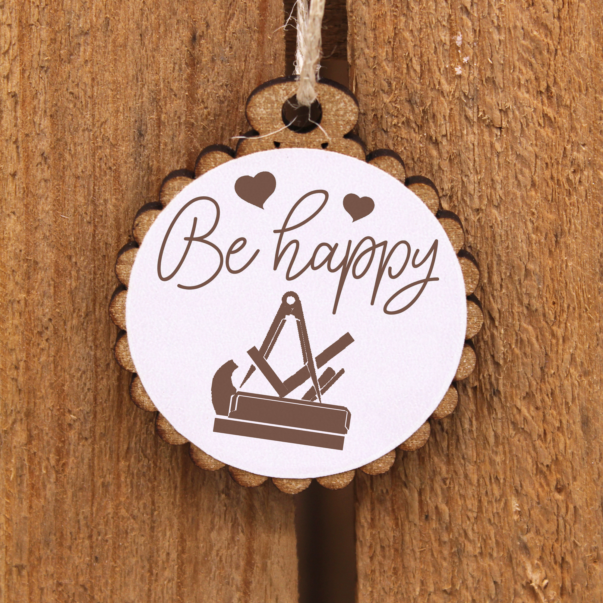 Geschenkanhänger - Be Happy Tischler - Holz Ø-5cm - mit Juteband