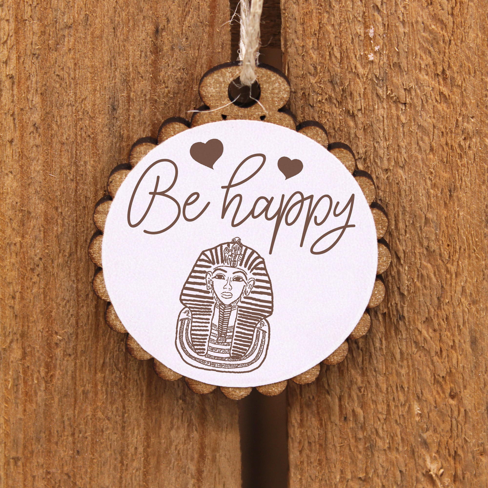 Geschenkanhänger - Be Happy Tutanchamun - Holz Ø-5cm - mit Juteband