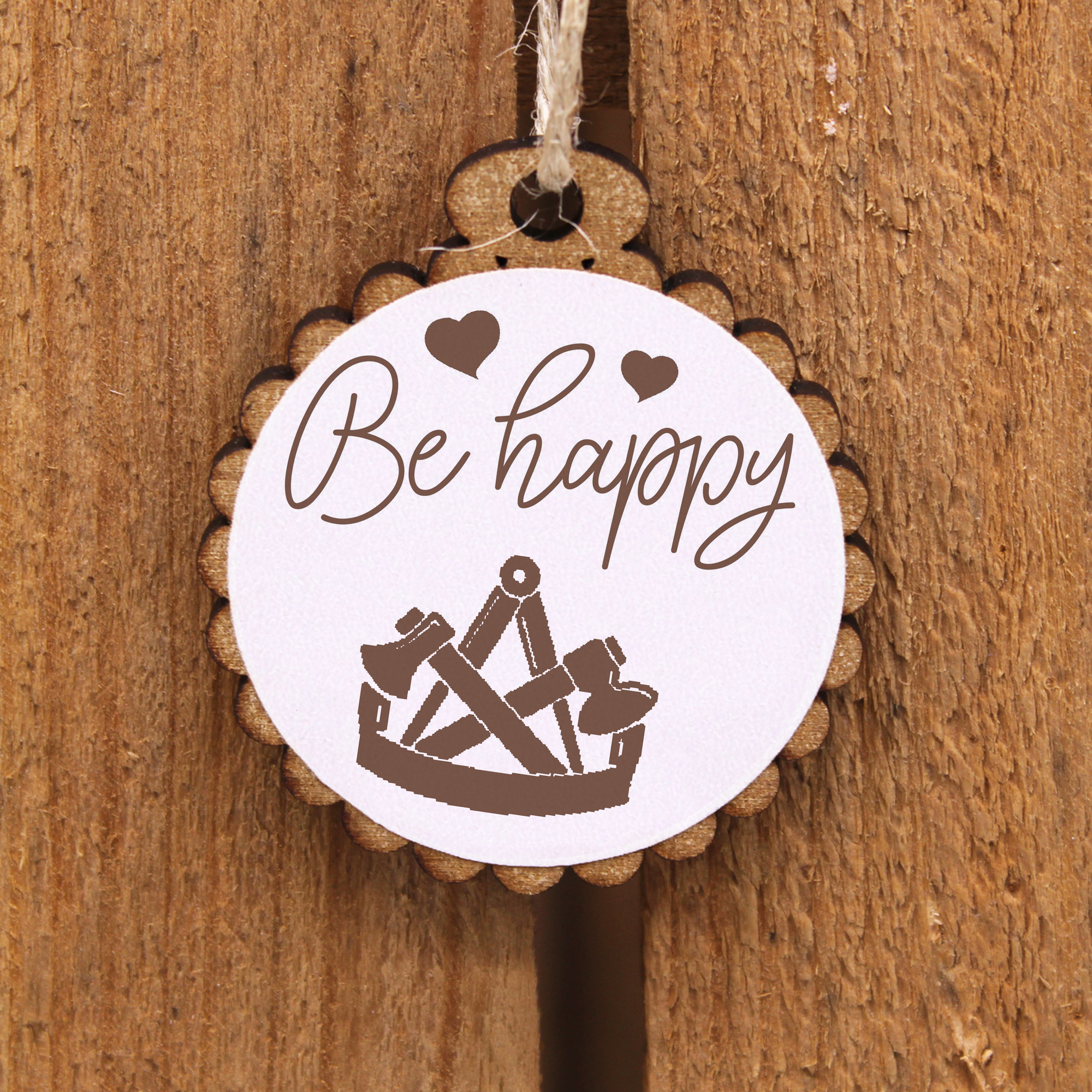 Geschenkanhänger - Be Happy Zimmerer - Holz Ø-5cm - mit Juteband
