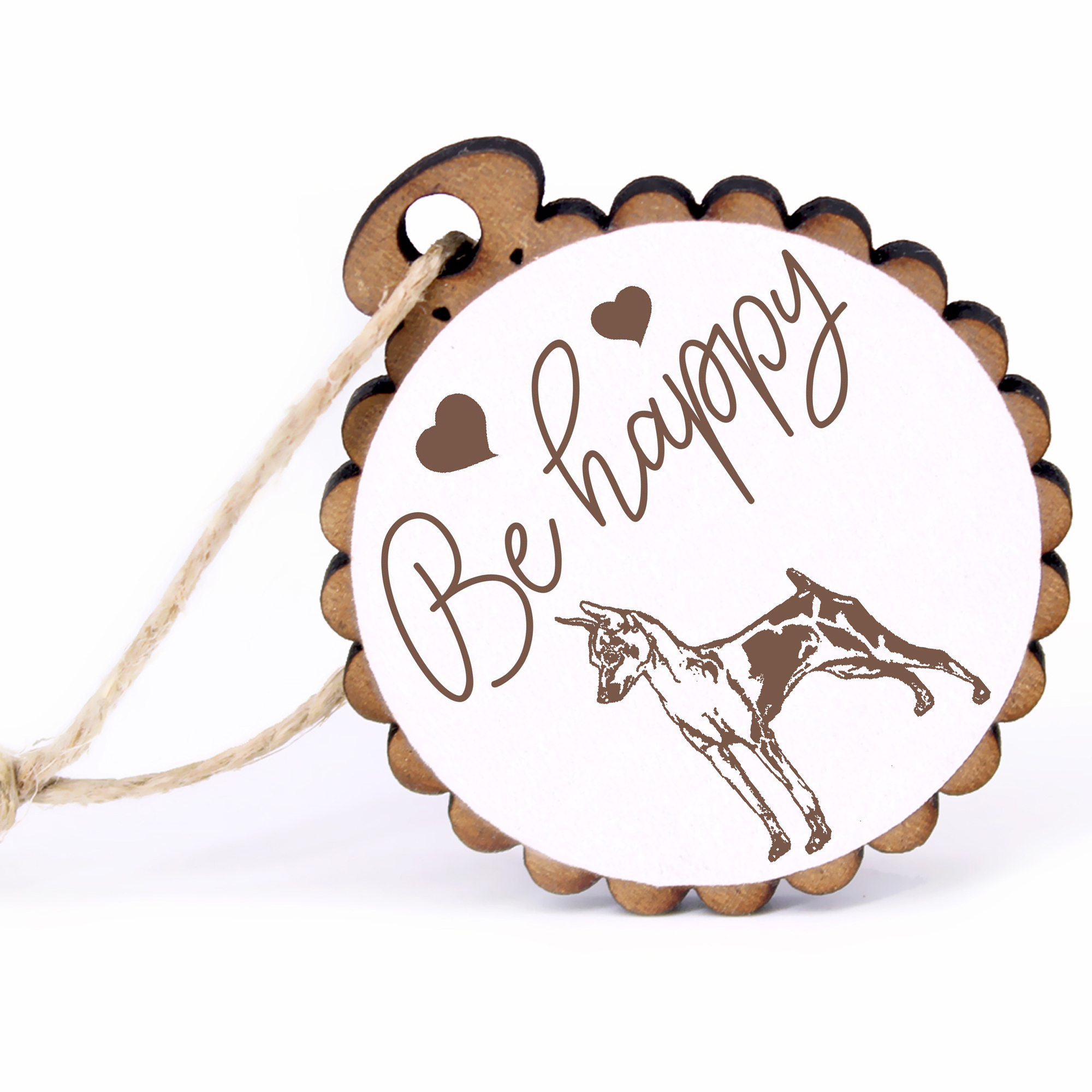 Geschenkanhänger - Be Happy Zwergpinscher Mini Pinscher - Holz Ø-5cm - mit Juteband
